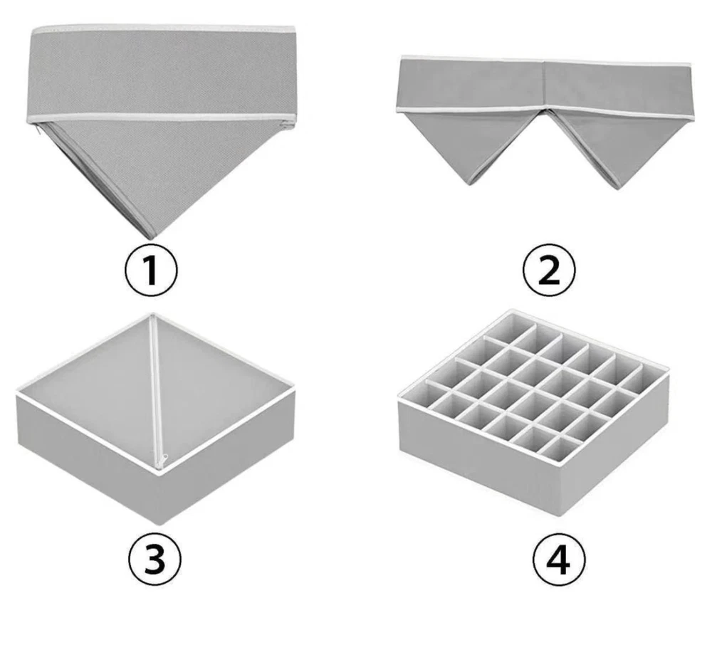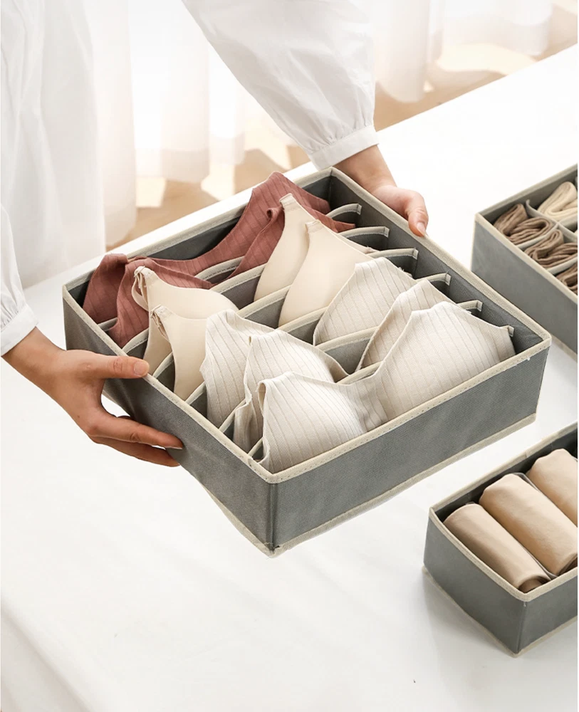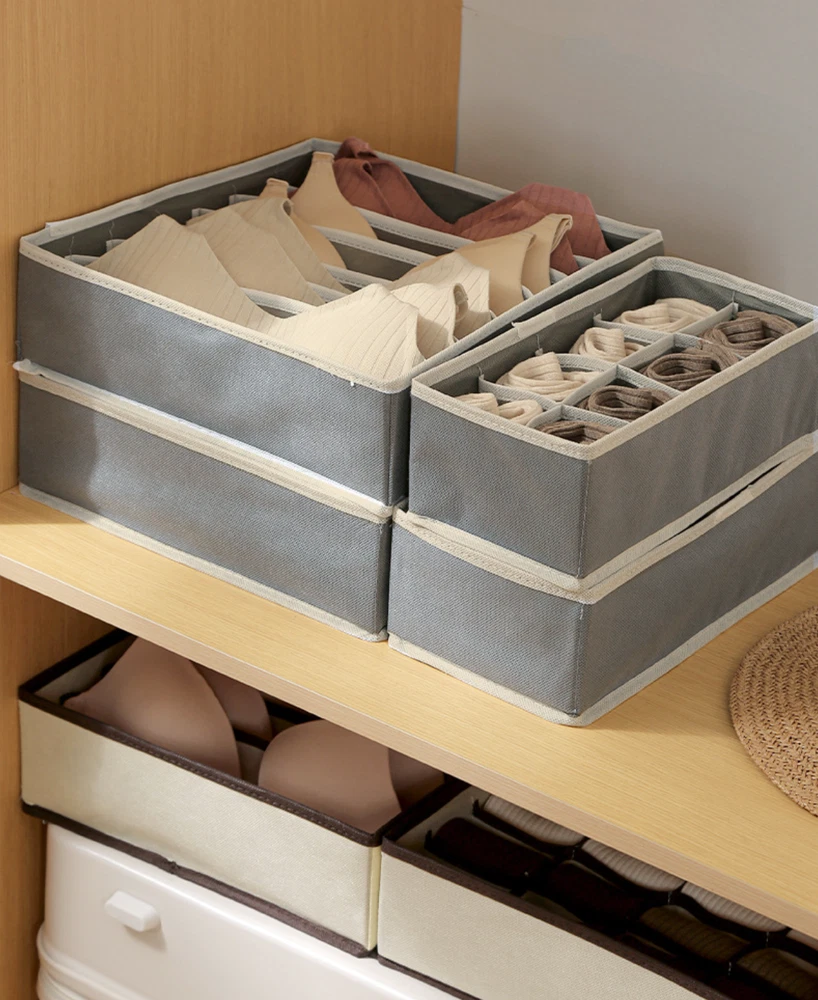 4 Packs Foldable Non-woven Drawer Organizer Dividers Fabric Storage Box Closet Dresser Organizer Cube Containers Basket Bins for Bedroom, Nursery Baby Clothes, Underwear, Bras, Socks, Panties (Grey, Set of 4) 【 4 Pack Drawer Organizer set 】 Our 4-pack drawer organizer set offers an impressive 45 compartments, perfect for various storage needs. Whether it's knee socks, men's boxer briefs, or women's leggings, this set ensures everything fits neatly. Ideal for closet organizers and storage, drawer organizer clothes, and underwear drawer organizer, it helps keep your space tidy and efficient. This is a must-have for bedroom organization, dorm room essentials, and anyone looking to streamline their storage solutions. 【 Fits All Drawers 】 Measuring 4 inches high, these dresser drawer organizers are designed to fit most dresser drawers. The set includes 4 organizer bins: One 7-cell bins for shirts or bras (12.6”x12.6”x3.94”), one 24-cell bins for socks (12.6”x12.6”x3.94”), one 8-cell bins for ties or belts (12.6”x6.3”x3.94”), and one 6-cell bins for scarves or baby clothes (12.6”x6.3”x3.94”). This versatility makes it a perfect fit for any drawer in your home, making it an excellent underwear organizer for drawer, sock drawer organizer, and clothing drawer organizer. 【 Quality Construction 】 Made of 80gsm thick non-woven fabric and reinforced stitching, our wardrobe clothes organizers are built for long-term use. The addition of 3.0mm plastic boards at the four sides ensures they are breathable, making them ideal for nursery room use. Sturdy and stackable, these bins maintain their shape and durability over time, perfect for drawer organizer for clothes, bra organizers, and fabric drawer organizers. 【 Easy to Assemble and Space-Saving 】 Lightweight and foldable, these dresser organizers can be easily assembled and stacked inside deeper drawers, doubling your storage capacity. When not in use, simply unzip and fold them flat for compact storage, freeing up space in your closet or dresser. This makes them a great choice for small drawer organizers, closet organizer drawers, and bathing suit organizers. 【 Multi-Use Storage Solution 】 These fabric bins are not only great for organizing clothing but also serve as storage drawers for hanging shelves, household supplies, makeup items, perfume, and hair accessories. Whether in the bedroom, bathroom, nursery, or office, they help keep your belongings organized and easily accessible. Perfect for underwear storage organizers, sock organizers for drawers, and nursery drawer organizers. Enhance your storage solutions with these versatile and durable organizers, ideal for any part of your home. Our 4-pack drawer organizer set offers an impressive 45 compartments, perfect for various storage needs. Whether it's knee socks, men's boxer briefs, or women's leggings, this set ensures everything fits neatly. Ideal for closet organizers and storage, drawer organizer clothes, and underwear drawer organizer, it helps keep your space tidy and efficient. This is a must-have for bedroom organization, dorm room essentials, and anyone looking to streamline their storage solutions. Measuring 4 inches high, these dresser drawer organizers are designed to fit most dresser drawers. The set includes 4 organizer bins: One 7-cell bins for shirts or bras (12.6”x12.6”x3.94”), one 24-cell bins for socks (12.6”x12.6”x3.94”), one 8-cell bins for ties or belts (12.6”x6.3”x3.94”), and one 6-cell bins for scarves or baby clothes (12.6”x6.3”x3.94”). This versatility makes it a perfect fit for any drawer in your home, making it an excellent underwear organizer for drawer, sock drawer organizer, and clothing drawer organizer. These fabric bins are not only great for organizing clothing but also serve as storage drawers for hanging shelves, household supplies, makeup items, perfume, and hair accessories. Whether in the bedroom, bathroom, nursery, or office, they help keep your belongings organized and easily accessible. Perfect for underwear storage, drawer dividers for baby clothes, and nursery drawer organizers. Features: Classified Storage, Neat and Clean: Keep different types of items separate and organized. Open and Use, Storage Does Not Take Up Space: Easy to access and doesn't clutter your space. Non-Woven Fabric Material, Good Air Permeability: Keeps items fresh and well-ventilated. Making Storage More Handy: Simplifies the process of organizing and finding items. Notes: Please allow slight size errors due to manual measurement. Color differences may occur between different screens.