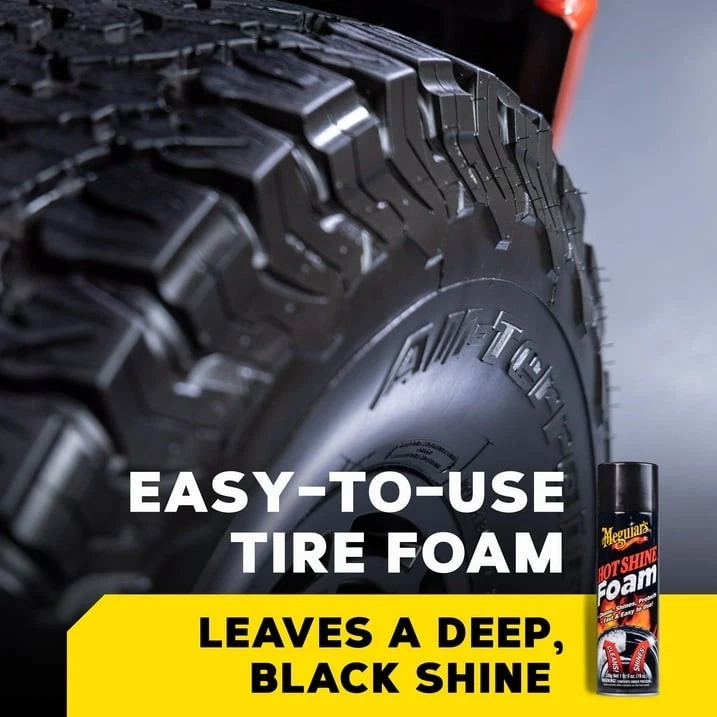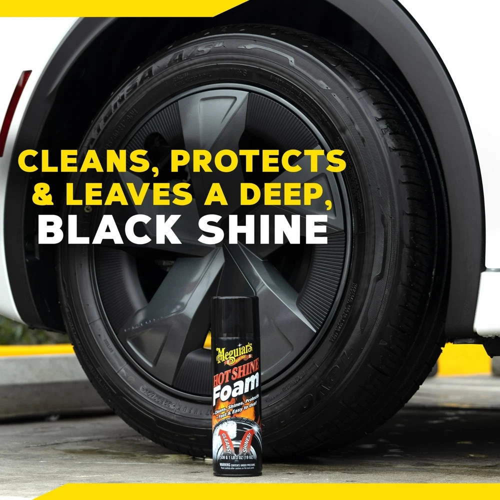 (4 Pack) Meguiar's Hot Shine Tire Foam, G13919, 19 oz, Aerosol, Easy Spray Foam SPRAY TIRE DRESSING: Cleans, shines, and protects in one easy step with hands-off application GLOSSY TIRE SHINE: Thick, active foam powers through buildup to reveal a deep, black shine EASY SPRAY FOAM: Convenient and easy-to-use foam that stays where you spray, then dissolves clear for less mess. Simply spray and walk away! UV PROTECTION: Conditioners and UV protection help keep tires looking like new LASTS FOR WEEKS: With water-resistant polymers, the shine last for weeks on end Discover more fantastic items by visiting our eBay store! Thank you for choosing to shop with us. We appreciate your support!