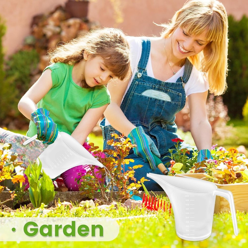 Product Features Color Clear Material Plastic Capacity 1000 Milliliters About this Item 【 Package Included 】 Our 4 cup measuring cup set includes four durable plastic measuring cups (4 cups/32 ounces/1000 ml) that are perfect for personal use or sharing with friends. 【 Size Specifications 】 The height of measuring cup is 13.5cm/5.3in,width is 19cm/7.5in,upper diameter is 11.5cm/4.5in and the diameter below is 9.2cm/3.6in., providing ample capacity for all your measuring needs. 【 Premium Material 】 Crafted from food-grade ABS plastic, our measuring cups are safe for direct contact with food. They can't microwave,ensuring convenience and safety in your kitchen. 【 Unique Design Features 】 The ergonomic handle and long spout design of each measuring cup allow for easy pouring of liquids such as milk and cream without spills or mess, enhancing your cooking, baking, and crafting experience. 【 Versatile Applications 】 Use these measuring cups for a variety of tasks, including making perfectly round pancakes, watering plants, filling automotive oils, and crafting soaps and candles—truly a must-have for any kitchen! Description Measuring cup set You will receive 4 pieces of plastic measuring cups, coming in clear color,each with an ounce label printed on one side, and a metric scale in milliliters on the back for easy to read. Product size The height of measuring cup is 13.5cm/5.3in,width is 19cm/7.5in,upper diameter is 11.5cm/4.5in and the diameter below is 9.2cm/3.6in. Detail Display These measure cups with spout are made of reliable PP material, strong and smooth, not easy to tear or break, which can be applied many times. Our advantages Each pitcher has a long, tapered funnel spout to allow careful, precise pours.The cup has a detailed display scale for quick and easy measuring. Easy to view contents. Use Scenario 4 pieces of plastic funnel pitchers with long spout,, ample quantity can meet your various needs or replacements in the kitchen, living room, garden, office or other places. Product Details Color Clear Material Plastic Capacity 1000 Milliliters Size Large Package Dimensions 9.84 x 8.23 x 4.88 inches Item Weight 12 ounces