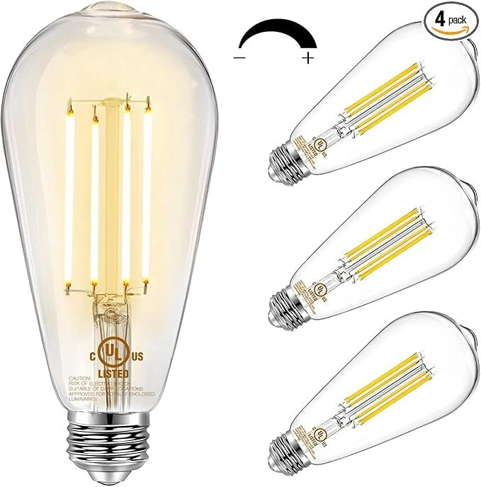 4 Pack Vintage LED Edison Bulbs, E26 Led Bulb 60W Equivalent, Dimmable Led Light Bulbs, High Brightness 800 LM Warm White 2700K, ST58 Antique LED Filament Bulbs, Clear Glass Style for Home - 4 Pack, Warm White Light Type LED Special Feature Energy Efficient, Dimmable Wattage 8 watts Bulb Shape Size ST19 【Energy & Money Saving】DAYBETTER edison bulbs provide lighting equivalent to a 60 watt incandescent bulb, you can save over 90% on your lighting bill, low power consumption, provides over 15,000 hours of life and reduces the frequency of your bulb replacement. 【Smooth Dimming】 E26 led bulbs 60 watts are designed with the latest light source technology, which makes them compatible with most dimmers in the market, providing a smooth dimming control with the highest brightness at 100% and the lowest brightness at 10% without flicker. The smooth dimming pattern allows you to adjust the brightness for your room anytime. 【Excellent Performance】Edison led light bulbs are made of advanced LED filaments and high strength clear glass with high light transmission, no radiation, no mercury and UV/IR light, and low heat generation, combining a vintage classic look with modern efficient LED technology to add elegance and history to your house. 【Wide Application】 Warm white light bulbs retain the design of traditional edison bulbs with 2700K soft warm white light and 800 lumens on full brightness to provide relaxing and comfortable lighting for your home or workspace. Fit in a standard E26 screw base, the high brightness led edison bulb can be directly screwed into all light fixtures, such as pendant lights, chandeliers, vanity light fixtures, wall lanterns, floor lamps and table lamps. 【Care for Your Eyes】Vintage light bulbs have a high color rendering index of 80+, displaying the most natural color of the object itself, making colors appear more vibrant, no flicker, no buzzing sound, effectively protecting your eyes and the eyes of your family, very safe.