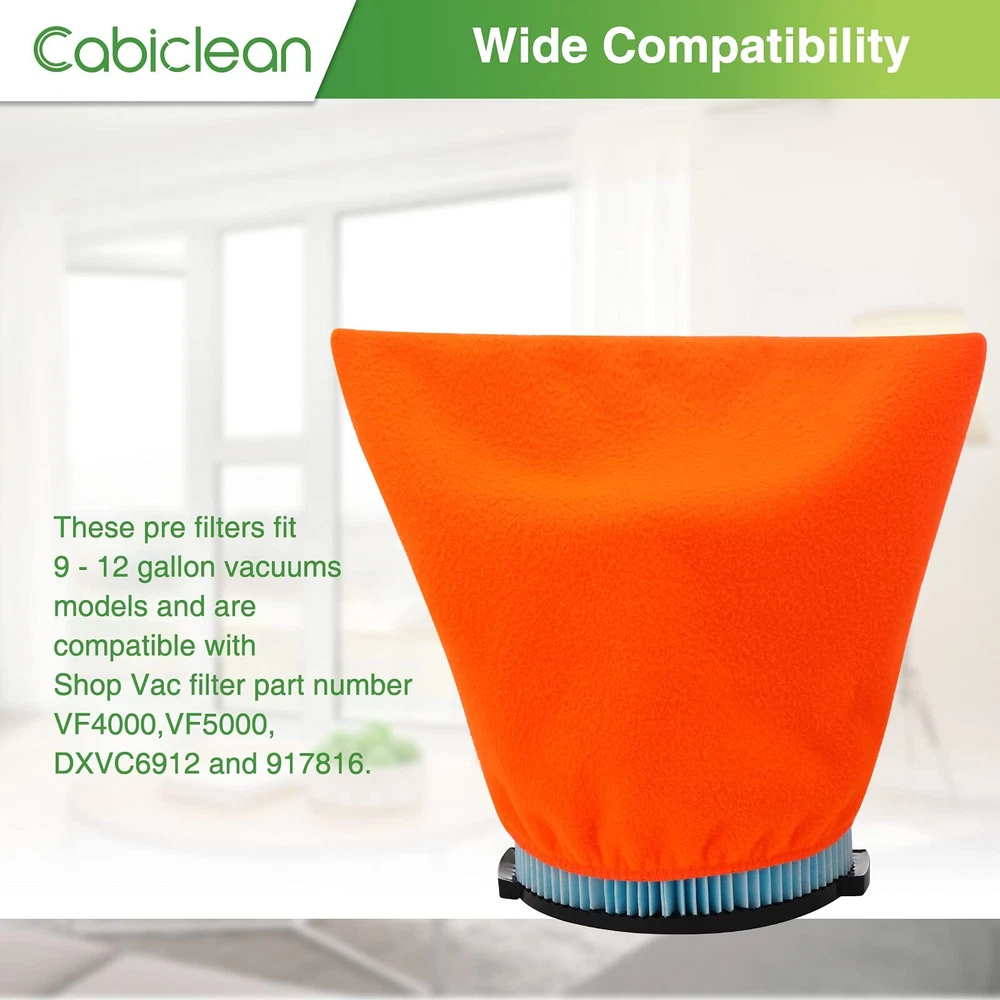 【Filter Retainer Cover】 Filter bag wrapped around your filter, effectively protect your vacuum's filter,without any loss of suction. 【Suitable for Most Filters】 The cloth filters cover sizes 8"Diameter x 11.5"L x 14"W(At Top),Fit filters that measure: 6-8" Diameter & 8-9" Tall. These pre filters fit 9 - 12 Gallon vacuums and are with VF4000,VF5000,DXVC6912 and 917816. 【Save You Money & Time】 Having to constantly toss your wet/dry filter cartridge because it's clogged with dust and debris is not only a pain but will also put a dent in your wallet. This pre-filter will help you get a lot more mileage out of every filter, saving you a lot of money. 【Package】 4 X Orange Wet Dry Vac Dust Collector Bags (NOTE: Package included 4 filter bags, Vac filter not included.) ⚠️【Note】 Any use of the Vac brand name or model designation for this product are made solely for purposes of demonstrating compatibility. 【Effectively Protect Vacuum's Filter】These Vac Filter Cover fit 9 - 12 Gallon vacuums and are with Vac filter part number VF4000, VF5000, DXVC6912 and 917816. Use the vac filter cover to perfectly protect the vacuums, And more effective filtering of dust, dirt, chips, debris and pet fur 【Filters Bag Size】8"Diameter x 11.5"L x 14"W(At Top),Fit filters that measure: 6-8" Diameter & 8-9" Tall. The dust collector filters has stretchy at the open,each comes equipped with an elastic band to keep them secured around the filter. (Before buying please make sure your vacuum's filters fit size of the filter vacuum cover) 【Washable & Reusable】These filter retainer cover are made of the quality polyester soft fabric, The pre filter bags can be machine washable, Easy to install and remove, reusable and green, durable 【Save You Time and Money】As time goes by, the performance of the vacuum cleaner will fade,so you have to frequently clean your vacuum or replace the vac filters. Using our filter vacuum cleaner bags will extend the life of your filter.it is easy to clean and saves filters,saves you time and money 【Buy with Confidence】We provide professional service. Any questions, please feel free to us, we are committed to offer the top quality products and promise high quality