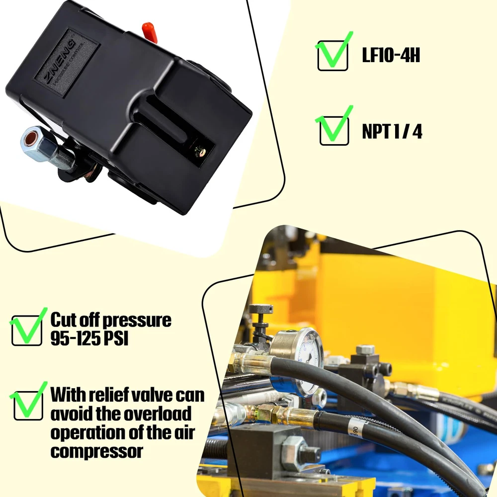 4 Pcs Air Compressor Pressure Switch Control Valve 90-125PSI Set, 1/4 Male NP...