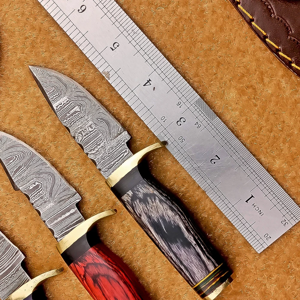 4 Pcs Damascus Blade Skinner Knives Set | 6" | Hardwood , Leather Sheath IT-832