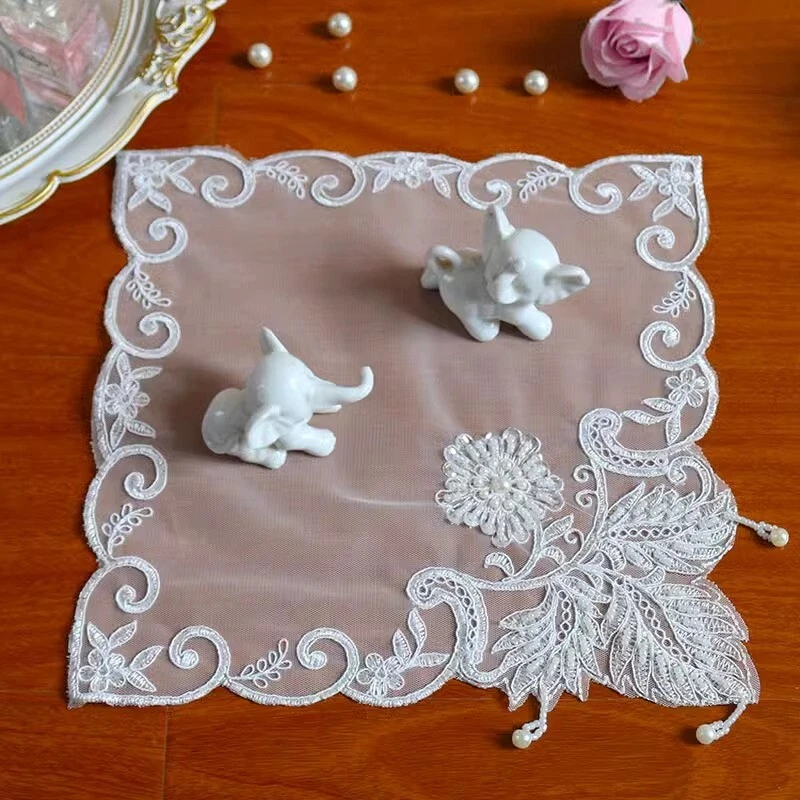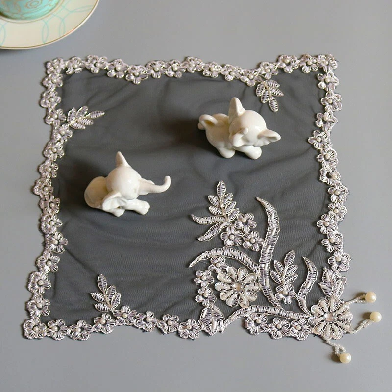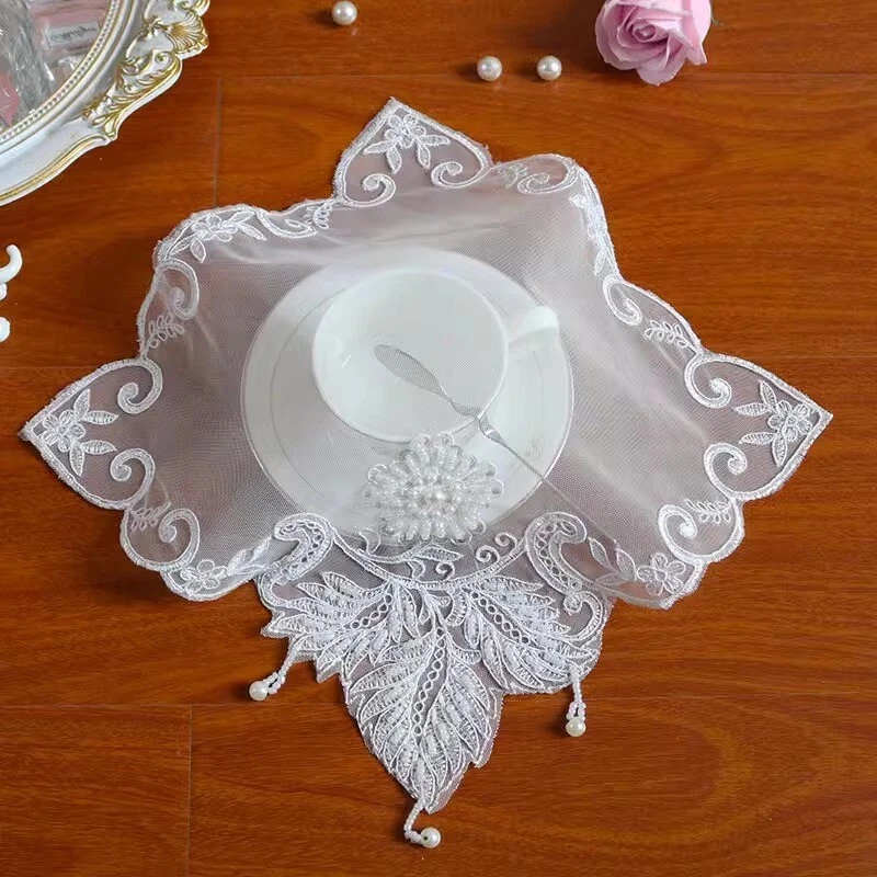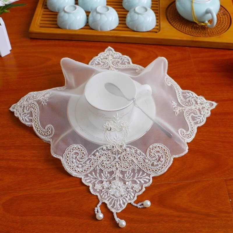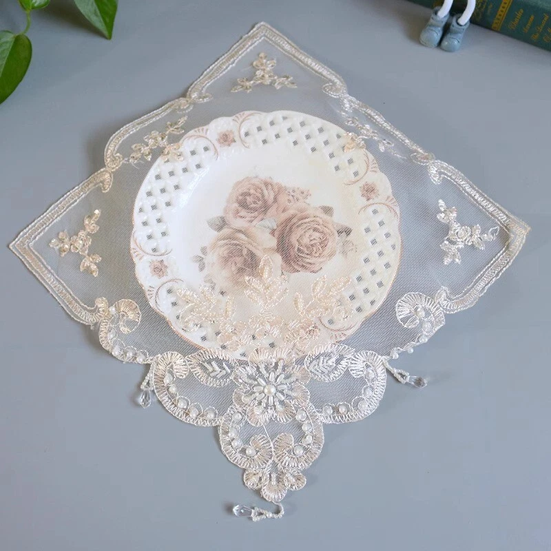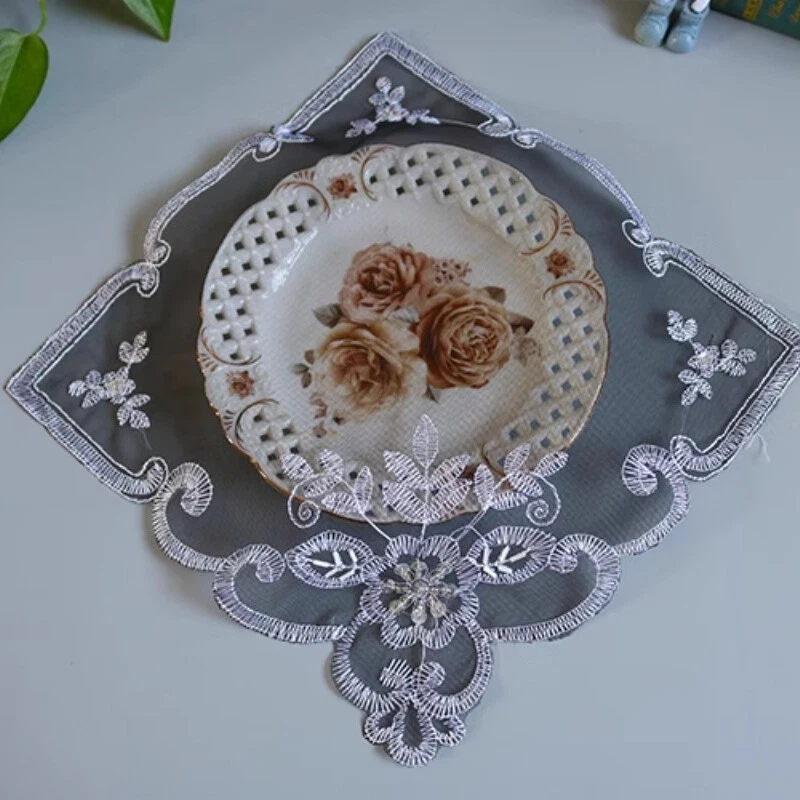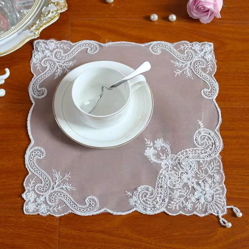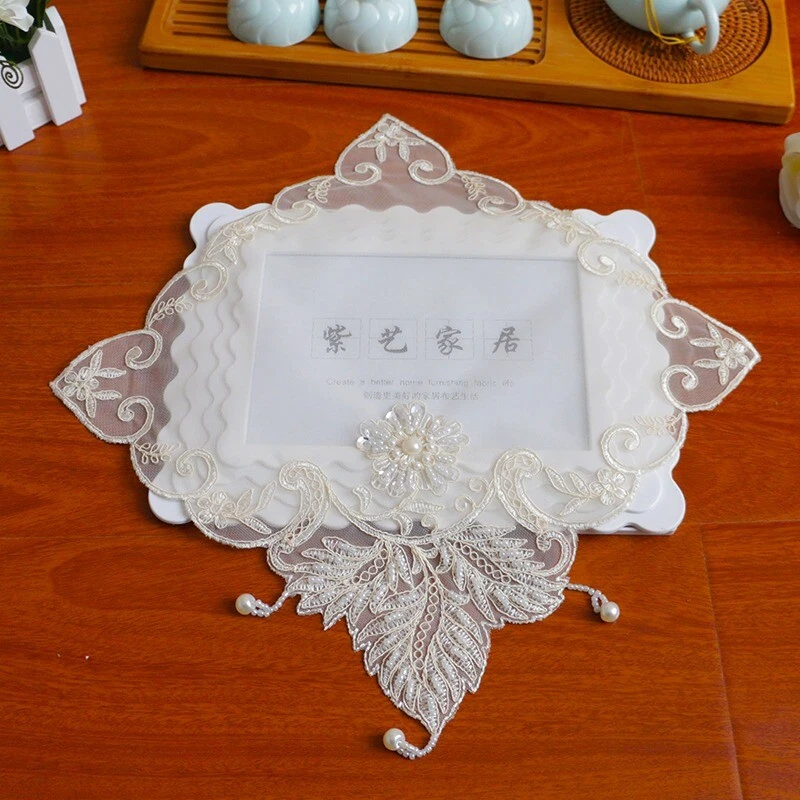 4 Pcs Lace Mesh Placemat Coaster Flower Embroidered Doily Beaded Table Cloth