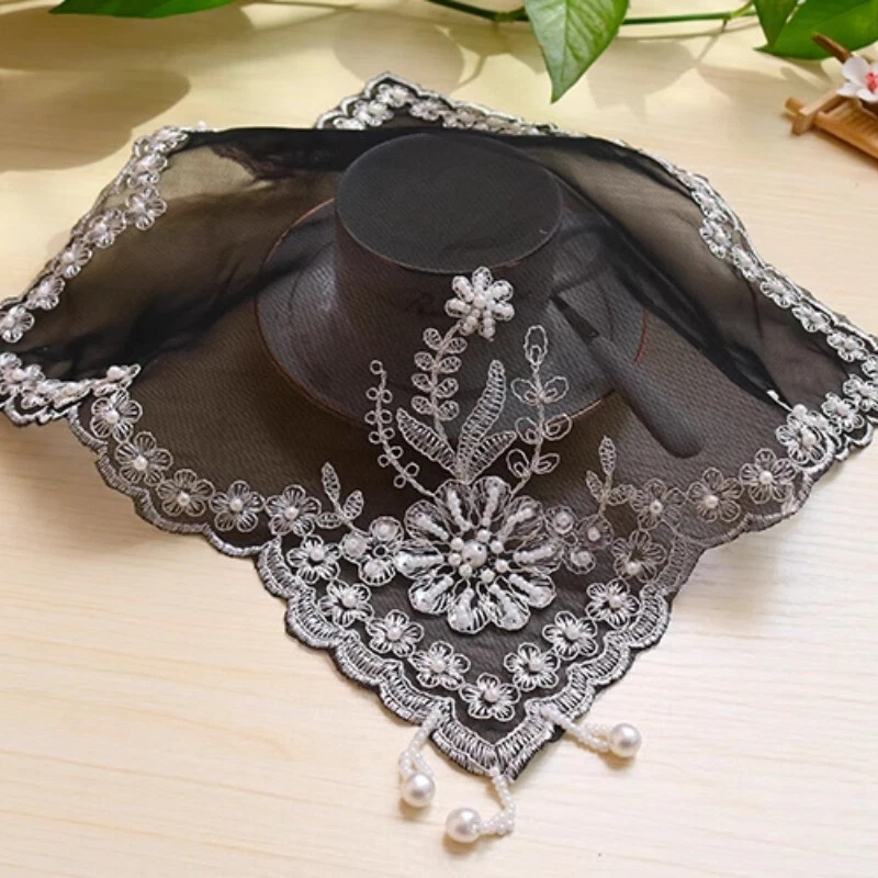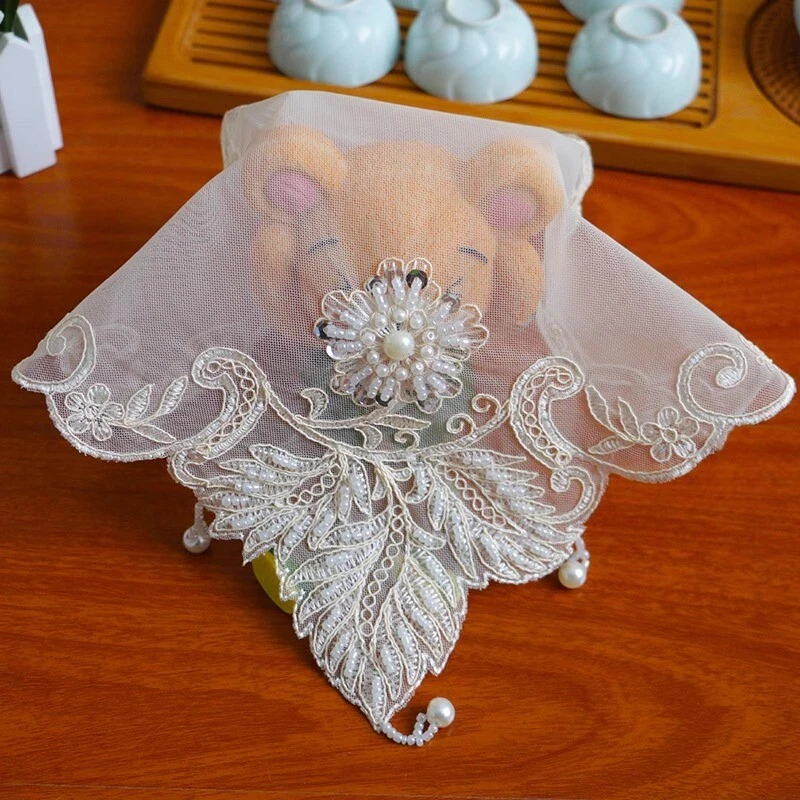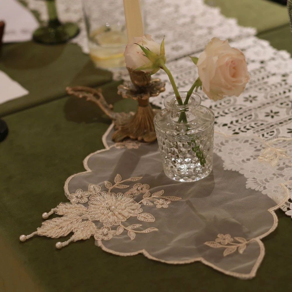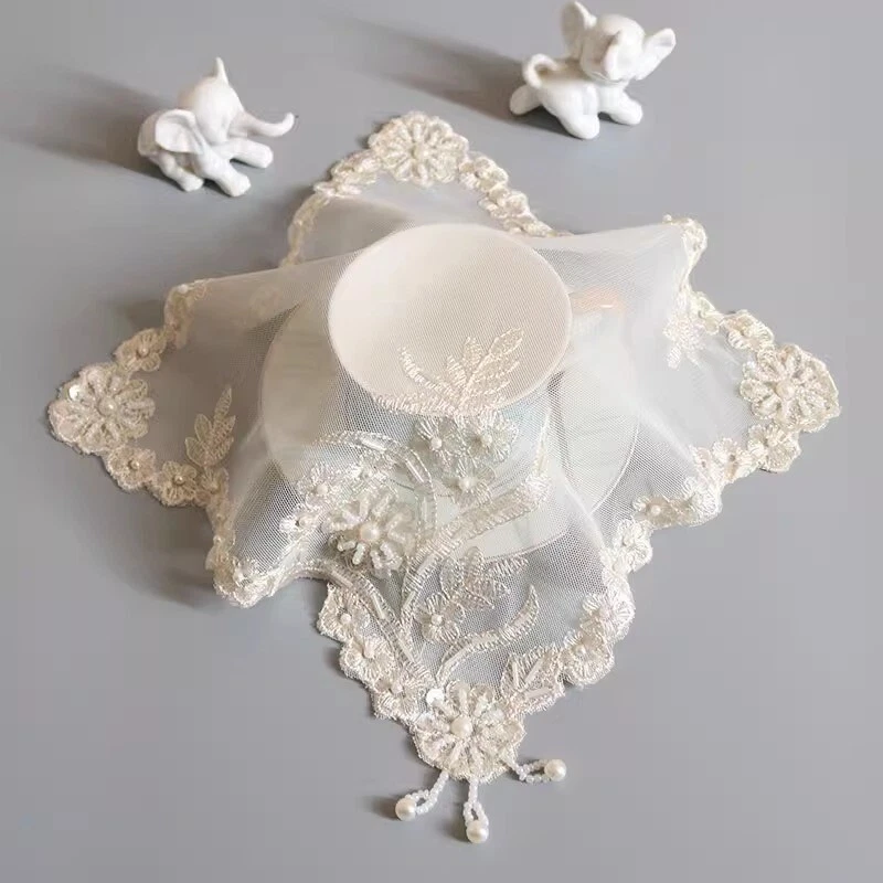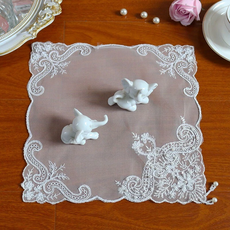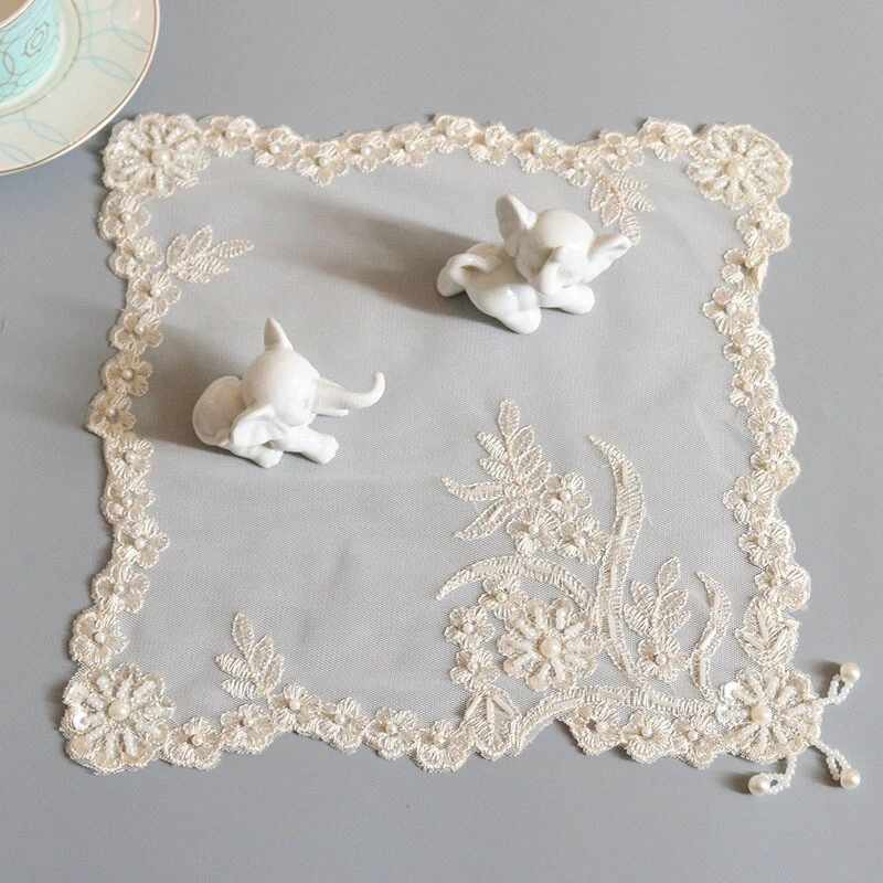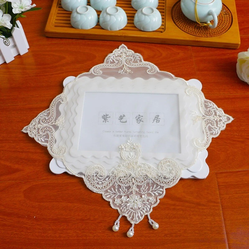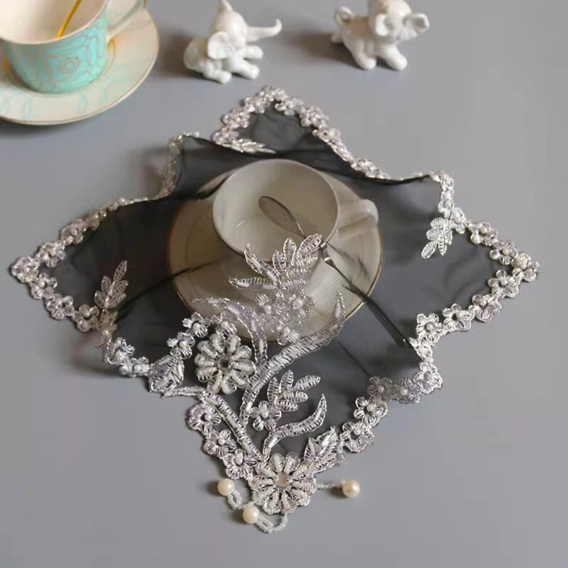4 Pcs Lace Mesh Placemat Coaster Flower Embroidered Doily Beaded Table Cloth