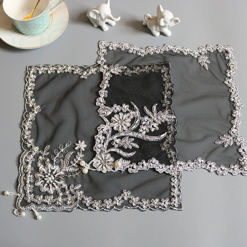 Number of Items in Set: 2/4 gtin13: Does not apply Care Instructions: Hand Wash Only Pattern: Floral Theme: American style, Home Decor, Table Cover Shape: Square Colour: BLACK Occasion: Party, New Home, Surprise, Wedding, Multipurpose Personalise: No Brand: Unbranded Material: Polyester Type: Placemat UPC: Does not apply MPN: Does not apply Item Length: 27 cm Country/Region of Manufacture: China Features: Beaded, Recycled, Embroidered