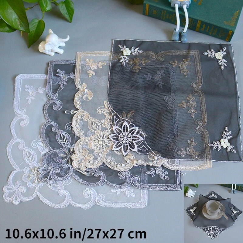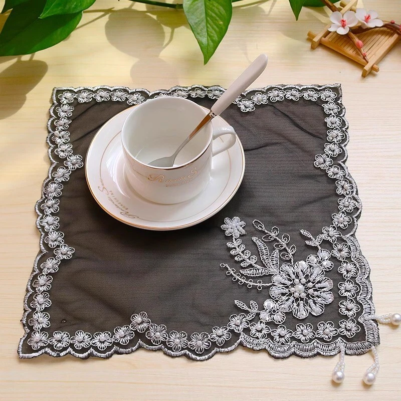 eBay 4pcs Lace Mesh Placemat Coaster Flower Embroidered Doily Beaded Table Cloth Cover Home Decor 27x27cm This item is for 2 or 4 placemat, other accessories are not included. Please account for a difference of less than 1 inch due to variations in measurement methods. Color: white, black, apricot Material: polyester Size: 10.6x10.6 in/27x27 cm SKU: 944-B796 4pcs Lace Mesh Placemat Coaster Flower Embroidered Doily Beaded Table Cloth Cover Home Decor 27x27cm This item is for 2 or 4 placemat, other accessories are not included. Please account for a difference of less than 1 inch due to variations in measurement methods. Color: white, black, apricot Material: polyester Size: 10.6x10.6 in/27x27 cm SKU: 944-B796