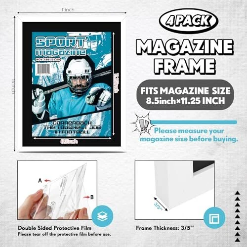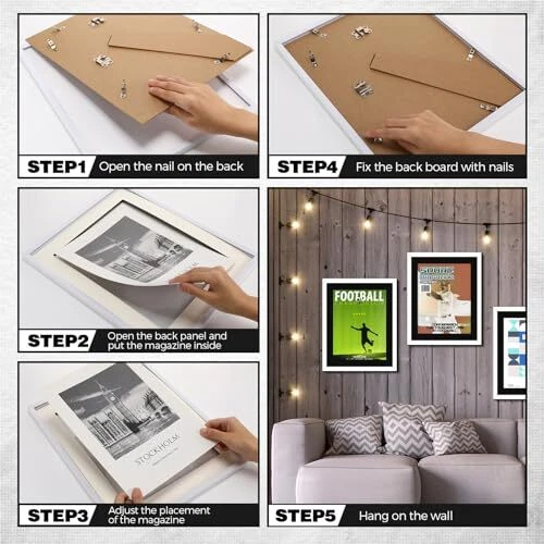 Return Policy Fast Delivery Trusted seller 4 Pcs Sports Magazine Frame Fits Magazine Measuring 8.5 x 11.25 Inch Magazine Display Frame with Installed Hangers and Core Matting Plastic Frames for Sports Magazines(White (Black Mat)) Product Description Convenient Package: in the package, you receive 4 quality magazine frames; This is ideal for anyone eager to show off a series or a collection of their favorite magazines; Use them to make a coordinated display in hallways, living rooms, bedrooms, offices, or even in cafes and restaurants Suitable Sizing: these magazine frames for wall are designed with dimensions approximately at 11 x 14 inches, acute enough to occupy any space without looking out of place; They are ideally suited for magazines measuring around 8.5 x 11.25 inches; They do not take up unnecessary space while showcg your favorite features, making them the ideal size for any wall or table display Clear and Engaging Display: thanks to the clear acrylic layer over the magazines, the picture frame represents your items vividly and life like, while also keeping them safe from dust and external breakage, which is safe to use as well; Be it photos, magazines, or certifications, this feature makes you appreciate and reminisce about the moments encapsulated in them better Easy Installation and Stylish Decoration: these picture frame holders come with handy install hangers, making them easy to mount on walls or place on the table, which can be hung vertically or horizontally; Metal picks on the back of the magazine frame that rotate for convenient magazine access; Showcase your style, creativity, and memories in these frames, enhancing your decorations Quality Material: when it comes to displaying your favorite digest, the frames for magazines do not disappoint; They are made of robust PVC material coupled with acrylic layers; These quality materials are known for their durability, ensuring you will be able to enjoy your magazine displays for the foreseeable future; With this material's protection, your magazine's integrity is ensured, preventing tearing, folding, or any other kinds of breakage Shipping Returns Payment Shipping Shipping is FREE to all addresses other than APO/PO boxes in the lower 48 states. All our stock ships from US-based warehouses. Shipped via USPS or UPS (depending on location and package weight) Unless stated otherwise, all orders will ship within 24-72 hours of your payment being processed. Check our feedback to see the great reviews of FAST shipping we offer. Returns Seller does not accept returns Payment We currently accept payment via eBay managed payments only. Once payment is cleared, we will dispatch your shipment within 1-3 business days. Please refer to the "Shipping" tab for more information regarding shipping speed to your destination.
