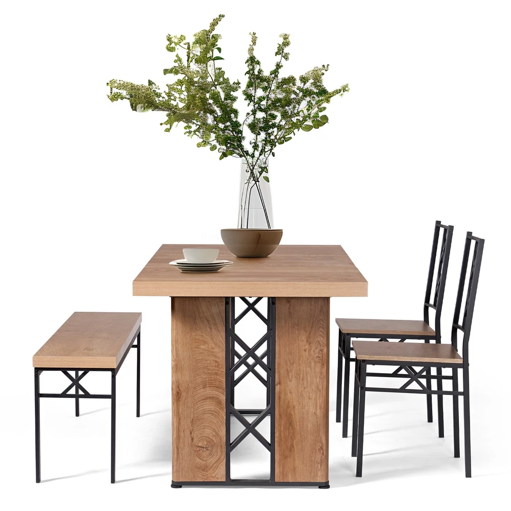Product Details: Introducing our vintage dining table set, timeless elegance meets practical design. Crafted with meticulous attention to detail, this dining table and bench set exudes charming sophistication and adds a touch of nostalgia to any dining space.Crafted from high-quality hardwood, the rectangular dining table features a sturdy structure that ensures durability. The vintage finish highlights the natural beauty of the wood, creating a cozy atmosphere for gatherings of family and friends.Complementing the long table is our matching bench and chairs, which not only provide comfortable seating, but also a coordinated look. The clean lines of the streamlined design capture the essence of classic furniture, while the ergonomic silhouette provides ample support while dining or Free Shipping Over $49.99* Details 4 - Piece Double Pedestal Dining Set Product Description: Product Details: Introducing our vintage dining table set, timeless elegance meets practical design. Crafted with meticulous attention to detail, this dining table and bench set exudes charming sophistication and adds a touch of nostalgia to any dining space.Crafted from high-quality hardwood, the rectangular dining table features a sturdy structure that ensures durability. The vintage finish highlights the natural beauty of the wood, creating a cozy atmosphere for gatherings of family and friends.Complementing the long table is our matching bench and chairs, which not only provide comfortable seating, but also a coordinated look. The clean lines of the streamlined design capture the essence of classic furniture, while the ergonomic silhouette provides ample support while dining or chatting.Whether you're hosting a cozy dinner party or enjoying a leisurely breakfast, our Vintage Rectangular Dining Table and Bench Set is sure to deliver memorable moments. Enhance your dining experience with timeless style and unrivaled quality. Features: Retro Minimalist Aesthetic:Infuse your dining space with timeless elegance and clean lines. Our dining table and chairs set features a sleek, minimalist design with subtle retro touches, adding a touch of vintage charm to any modern home. Simple Installation:Simplify your furniture setup with our dining set's straightforward installation process. Designed for convenience, each component comes with easy-to-follow assembly instructions and all the necessary hardware included. Exceptional Weight-Bearing Capacity:Experience peace of mind with our dining set's superior weight-bearing capacity. Crafted from durable materials and engineered for stability, each piece is built to withstand the demands of daily use without compromising on style or functionality.