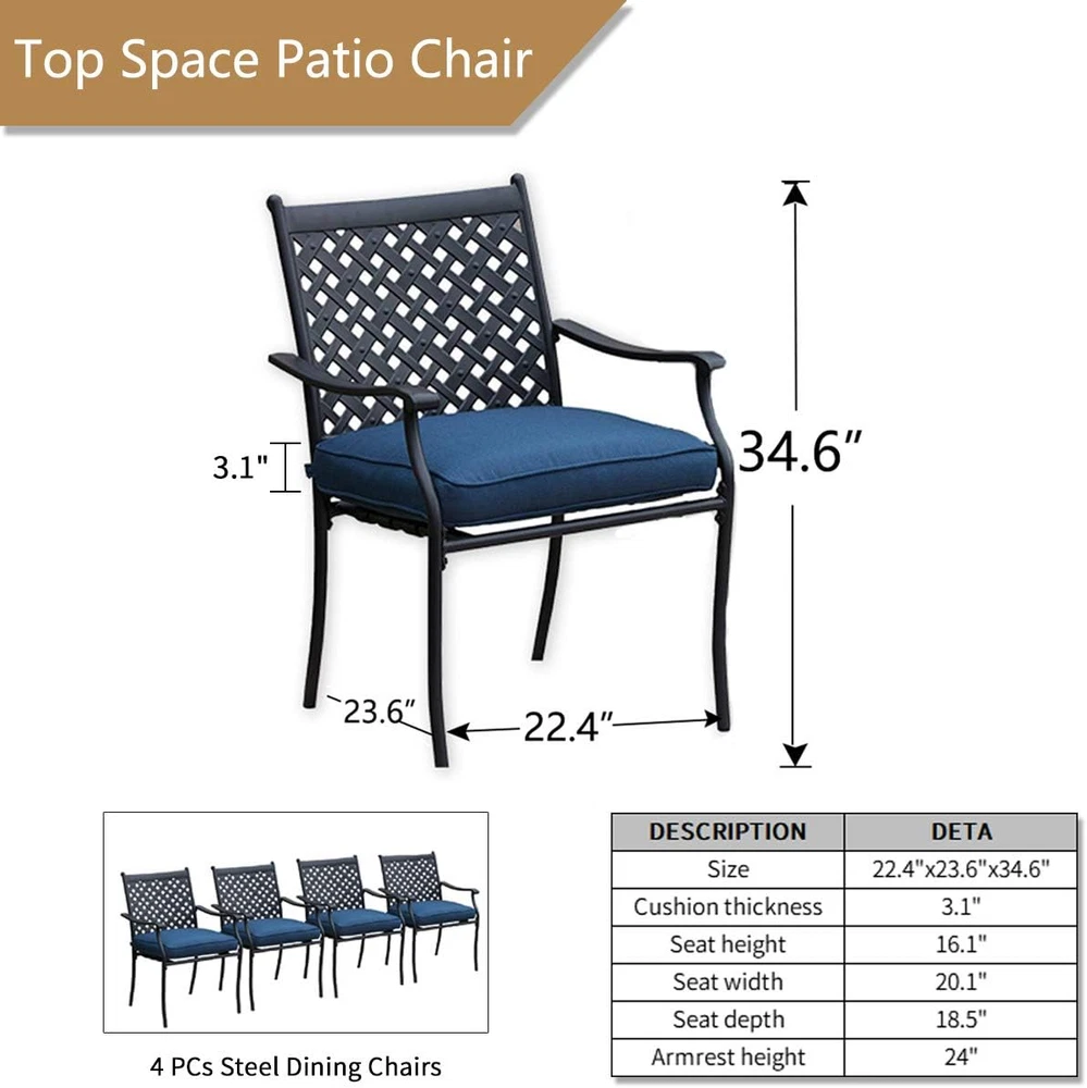 Store New Arrivals Add to Favorite View Feedback Contact 4 Piece Metal Outdoor Wrought Iron Patio Furniture,Dinning Chairs Set with Arms and Seat Cushions (4 PC, Blue) Description Age Range Description Adult Style Modern Cushion Style Boxed Edge Pattern Solid Material Type Iron, Metal Is Electric No Seat Height 16.1 Inches Frame Material Alloy Steel Seat Material Type Plastic Finish Types Polished Arm Height 24 Inches Item Shape Diamond Unit Count 4.0 Count Room Type Dining Room, Patio Garden Brand Name Top Space Brand Top Space Is Customizable? No Tilting No Material Iron, Metal Item Weight 52.2 Pounds Maximum Weight Recommendation 330 Pounds Furniture Base Movement Glide Frame Material Alloy Steel Arm Style With arms Leg Style Straight Leg Manufacturer TOP Space Back Style Ladder Back Item Weight 52.2 Pounds Surface Recommendation Hard Floor Special Features Arm Rest, Cushion Availability Seat Material Plastic Color Blue Item Dimensions D x W x H 23.6"D x 22.4"W x 34.6"H Furniture Finish Plastic Indoor Outdoor Usage Outdoor Is Foldable No Recommended Uses For Product Dining Included Components User Manual, Installation Hardware Product Dimensions 23.6"D x 22.4"W x 34.6"H Seat Depth 18.5 inches Size Large STACKABLE FOR OUTDOOR: With stackable design, these patio dining chairs a nice addition to dining room since they're easy to store or set aside when they're not in use. Plus, plastic floor glides down below help prevent them from scratching your floors or deck. The standard height can perfectly fit other table and dining set, chair can push in table. This modern patio dining chair will bring style to your backyard, porch, or patio; a furniture piece perfect for your dining ensemble. WIDE AND DEEP SEAT: The slightly slanted seat back will fit your body line perfectly and ensure a relaxing seat for hours. Firm and wide seat, 3.1" thick soft seat and curved arm make the patio dining chair are more comfortable than the normal metal patio chairs. Seat cushion is connected to the chair with two hook-and-loop fasteners. Removable is easy for cleaning. All of them are of super quality for no slide,no sunken after a long time use. You can sit, stretch your legs. STURDY AND DURABLE:The 4 Piece stackable patio dining chair is not only a beautiful addition, but also is a durable option that to withstand the weather. This patio dining chair is built with an galvanized steel frame, covered with smooth black polished paint. Designed to hold up to everyday use without chipping, scratching, or peeling. All pieces of this stacking patio chairs set are lightweight, allowing for effortless maneuvering when a layout change is in the works. EASY TO ASSEMBLE: The holes line up and you can use the hand tools or your cordless drill to set them up. Pls do not overtighten the patio dining chair when last step is finished. With our clearly manual, it's easy to assemble it, just need some times. 4 Pieces patio dining chair : 22. 4"(L)*23.6"(W)*34.6"(H). Max capacity: 330LBs OUTDOOR DINING CHAIRS: This outdoor chairs set included 4 outdoor dining chairs, all necessary hardware and instructions included for efficient and eazy assembly. Decorations are not included.Pls check description for more details. The four (4)-piece Stacking Patio Dining Chair Set, featuring a sturdy, black powder-coated steel frame, makes a perfect addition to seating groups both inside and out. It can be adapted to any interior and imbue your home with vintage flair and urban sophistication. With stackable design, these patio dining chairs are an ideal option for entertaining outside since they're easy to store or set aside when they're not in use. Plus, plastic floor glides down below help prevent them from scratching your floors or deck. ABOUT US We offer the best prices around on high quality products. Our E-store includes media such as books, movies, music and games while offering electronics, toys, sporting apparel, clothing, tools, general home, garden items and more. SHIPPING We are always working hard to ensure your package arrives as soon as possible. Please understand that some factors like weather, high postal traffic, and the performance of shipping companies are outside of our control. For shipping outside of the continental USA, we only use eBay's Global Shipping Program.The item is shipped to KY and then sent to the rest of the world. International customers are responsible for all duties and taxes. Continue to check out in order to calculate costs for shipping the item to your country. Messages regarding eBay's Global Shipping Program MUST be directed at eBay EXCLUSIVELY. RETURNS We offer a 30-Day Return Policy on items which you are not completely satisfied with. You have the option for a full-refund or an exchange of the item. No returns are available on items shipped outside of the USA. PAYMENT We accept PayPal. CONTACT US This page content is yet to come Please ad us to your favorite seller and visit again later Thank You CUSTOMER SATISFACTION We try our very best to make sure every customer is completely satisfied. If there's a problem, message us! We're happy to help. WE ACCEPT Copyright © 2021 AutoDS. | All Rights Reserved