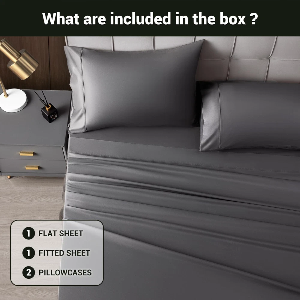 Store New Arrivals Add to Favorite View Feedback Contact Fast deliveries to the customer's home Quality customer service John Make the customers happy! 4 Piece Queen Sheet Sets, Cooling Sheets, Blend Rayon Derived from Bamboo, Deep Pocket up to 16", Breathable & Soft Bed Sheets, Hotel Silky Bedding Set, Dark Grey Description 60% Rayon Derived from Bamboo and 40% Polyester SHOCKINGLY SOFT, SUPPLE AND SILKY:The sheets is made from a blend of 60% rayon derived from bambo and 40% polyester fiber with a unique twill weave, making it stronger than cotton, smooth like silk, cool to the touch. Sleep like you're on a cloud with these comfy bed sheets. This is an ideal option for hot sleepers ADJUST TEMPERATRUE & ABSORB WATER:This sheets has the function of adjusting temperature and can absorb most of the heat in summer, so that you can still feel as cool as ice in hot summer. At the same time, can also absorb moisture, keep you cool and dry all night, and eliminate bad sleep experience, which is the gospel of the people with night sweats AFFORDABLE LUXURY: With our Queen size 4 pc sheet sets, we include 1 flat sheet 92" x 102", 1 fitted sheet 60"x80"x16",2 pillow cases 20" x 30". This is the pinnacle of modern luxury bedding finally available at a price that won’t bust your budget.Deep pockets that fit mattresses up to 16" deep .These sheets grip and fit better than any other sheet set! It will never slide no matter how you twist and turn in your bed.Giving you the perfect restful night’s sleep EASY TO WASH CARE:Unlike classic silk sheets, this materials sheets are durable and machine washable. Wash your sheets in cold water on a gentle cycle. Dry at low temperature. To avoid wrinkling, take the sheets out of the dryer and put them on the bed as soon as possible.In addition, please avoid using fabric softeners and bleaches AFFORDABLE LUXURY & DURABILITY: DECOLURE Bed Sheets are made from high-grade Blend Rayon Derived from Bamboo, offering a smooth, wrinkle-free surface with exceptional softness; enjoy lasting quality and luxury without compromising on durability. This sheet set is Standard 100 by OEKO-TEX certified and has been found harmless for humans Product Description Item model number 1DBM4PC-QN-DG Style Modern Weave Type Twill Pattern Solid Country of Origin China Theme modern Number of Pieces 4 Unit Count 1 Count Fitted Sheet Pocket Depth 16 Inches Batteries required No Pillowcase Quantity 2 Material 60% Rayon Derived from Bamboo and 40% Polyester Age Range (Description) Adult Seasons All Package Dimensions 10.63 x 9.45 x 5 inches Included Components 1 flat sheet , 1 fitted sheet ,2 pillow cases Closure Type Envelope Item Weight 3.24 pounds Sham Quantity 2 Special Feature Cooling, Breathable Color 01 - Dark Grey Thread Count 1800 Fabric Type 60% Rayon Derived from Bamboo and 40% Polyester Product Care Instructions Machine Wash Size Queen (4 Piece Set) ABOUT US We offer the best prices around on high quality products. Our E-store includes media such as books, movies, music and games while offering electronics, toys, sporting apparel, clothing, tools, general home, garden items and more. SHIPPING We are always working hard to ensure your package arrives as soon as possible. Please understand that some factors like weather, high postal traffic, and the performance of shipping companies are outside of our control. We offer free shipping to the lower 48 states and ship within 2 business days of payment, usually sooner. We do not accept P.O. Boxes. Please provide a physical address. For shipping outside of the continental USA, we only use eBay's Global Shipping Program. The item is shipped to KY and then sent to the rest of the world. International customers are responsible for all duties and taxes. Continue to 'check out' to calculate costs for shipping the item to your country. Messages regarding eBay's Global Shipping Program MUST be directed at eBay EXCLUSIVELY. RETURNS We offer a 30-Day Return Policy on items in which you are not completely satisfied with. You have the option of a full-refund or an exchange of the item. No returns are available on items shipped outside of the USA PAYMENT We accept PayPal. CONTACT US This page content is yet to come Please ad us to your favorite seller and visit again later Thank You CUSTOMER SATISFACTION We try our very best to make sure every customer is completely satisfied. If there's a problem, message us! We're happy to help. WE ACCEPT