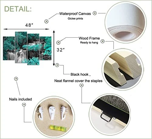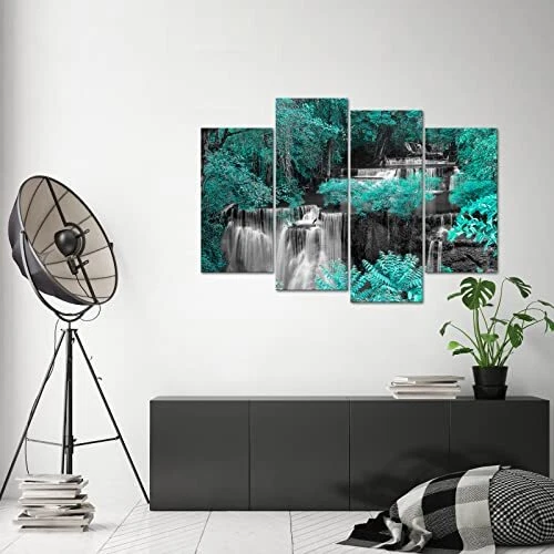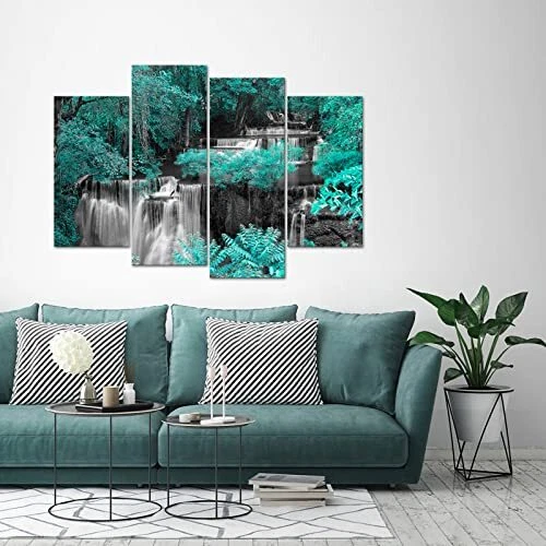 Return Policy Fast Delivery Trusted seller 4 Piece Waterfall Canvas Wall Art Teal Green Trees Forest Landscape Painting Picture Prints Black and White Turquoise Living Room Kitchen Decoration Framed Ready to Hang Product Description Size:12"x24"x2pcs+12"x32"x2pcs Giclee artwork,printed on waterproof archival quality canvas.A perfect wall decorations art for living room,bedroom, kitchen,office,hotel,restaurant,dining room,office,bathroom,bar etc. Each panel canvas art has a black hook already mounted on the wooden bar ready to hang out of box Neat flannel on the back covered the staples or tacks.We only provide high grade wall art for you Shipping Returns Payment Shipping Shipping is FREE to all addresses other than APO/PO boxes in the lower 48 states. All our stock ships from US-based warehouses. Shipped via USPS or UPS (depending on location and package weight) Unless stated otherwise, all orders will ship within 24-72 hours of your payment being processed. Check our feedback to see the great reviews of FAST shipping we offer. Returns Seller does not accept returns Payment We currently accept payment via eBay managed payments only. Once payment is cleared, we will dispatch your shipment within 1-3 business days. Please refer to the "Shipping" tab for more information regarding shipping speed to your destination.