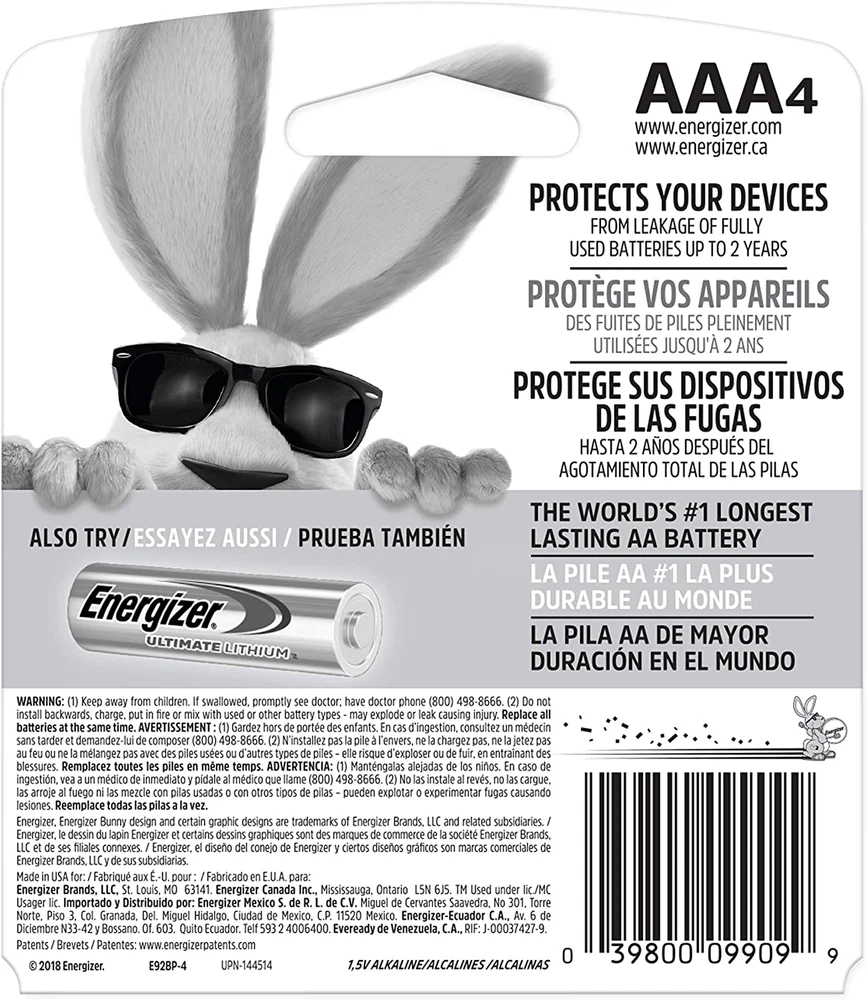 4 Pieces AAA Batteries Max Triple A Alkaline Leak-Resistant Long-Lasting Power ✅ Energizer AAA Batteries, Max Triple A Alkaline, 4 Count Product Description: Energizer AAA Batteries provide reliable and long-lasting power for a variety of household devices. These Max alkaline batteries are designed to keep your gadgets running smoothly, offering consistent performance for items like remotes, clocks, and toys. With a trusted brand reputation, you can count on these batteries to deliver dependable energy when you need it most. Features: Long-Lasting Power: Energizer AAA Max batteries are designed to provide reliable and extended power for everyday devices. Leak-Resistant Design: These batteries feature a leak-resistant design to protect your devices from potential damage. Ideal for Household Use: Perfect for remotes, clocks, toys, flashlights, and other common household electronics. Economical Pack: Comes with a convenient 4-count pack to ensure you always have batteries available when needed. Alkaline Technology: Utilizes high-performance alkaline technology for a dependable and efficient energy source. Trusted Brand: Energizer is a well-known and trusted brand, offering superior quality and durability in every battery. Environmentally Conscious: Designed with a focus on long-lasting performance, reducing the frequency of battery replacements. Easy to Use: These batteries are simple to install in devices, ensuring a hassle-free experience. Unit Count 4 Count Battery Cell Composition Alkaline Product Dimensions 0.44 x 3.7 x 4.3 inches; 1.6 ounces Country of Origin USA Batteries 4 AAA batteries required. (included) Recommended Uses For Product Remotes Department Electronics Number of Batteries 4 AAA batteries required. (included) Size 4 Count (Pack of 1) Shipping Fast shipping is very important for us. Our standard USA shipping service is FREE. Your order will be shipped within 1-2 business days upon full payment received. Your order will be delivered within 1-3 business days after the handling time. We only ship to the confirmed address. We reserve the right to cancel any order for any reason at any time. We are not responsible for undeliverable addresses. Returns and payment We offer a 30 days return policy from checkout winning date. FeedBack Your feedback very important to us, after you get your package and you are satisfied with our service please leave us positive feedback If you have any problem with your order / any questions please before leave any type of feedback For any questions, using eBay contact system Please visit our eBay store to check out other items for sale! Thank you for shopping at our store.