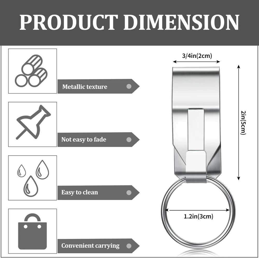 Product Description Durable Metallic Material Adopts sturdy and solid metal as material, hard to break or deform, anti rust and easy to clean. Unbending & Hard-scratch The loop of the keychain strap is detachable and can be opened with a gentle press without taking up much effort. Metal Clip Design The metal clip is convenient for you to clip the belt and remove, which is hard to fall off, no chance to loss your keys.