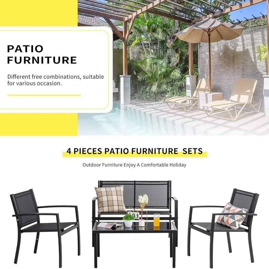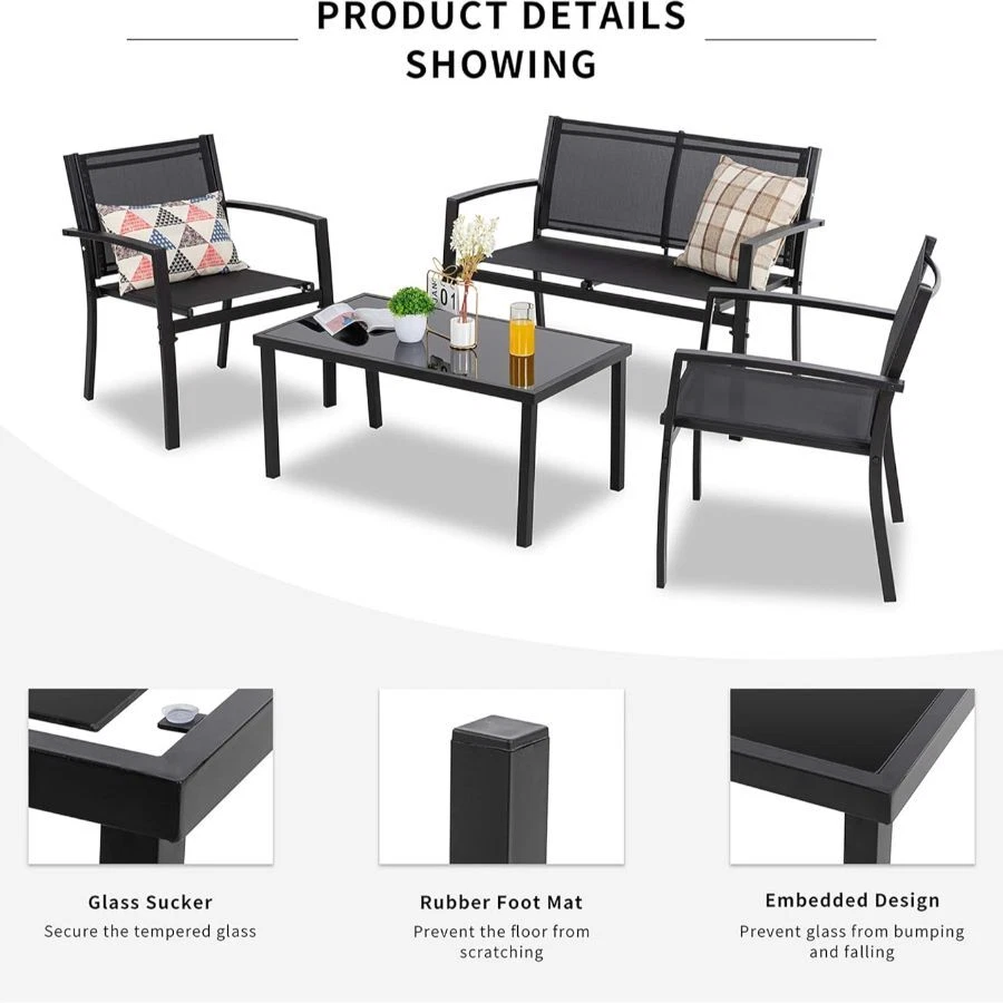 Home4 Pieces Patio Furniture Set All Weather Textile Fabric Outdoor Conversation Set