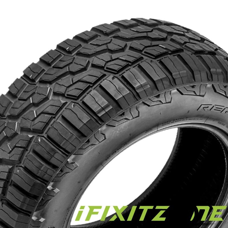 The RBP Repulsor R/T is a Rugged-Terrain tire built for light trucks, SUVs, and crossovers. The Repulsor R/T provides excellent traction in rain, sleet, mud, snow, and everything else in between. It has exceptional off-road performance, this tire provides minimal road noise, comfortable ride quality, safety, longevity and unmatched value that off-road enthusiasts can appreciate. The Repulsor R/T features a durable and technologically advanced All-Terrain and Mud-Terrain hybrid design and a beefy 3-ply sidewall construction that provides on-road comfort while maintaining exceptional off-road capabilities. With its open notched shoulder tread blocks, the Repulsor R/T ejects mud, rocks, and debris and offers excellent off-road traction. Mud & Snow Rated (M+S) ifixitzone