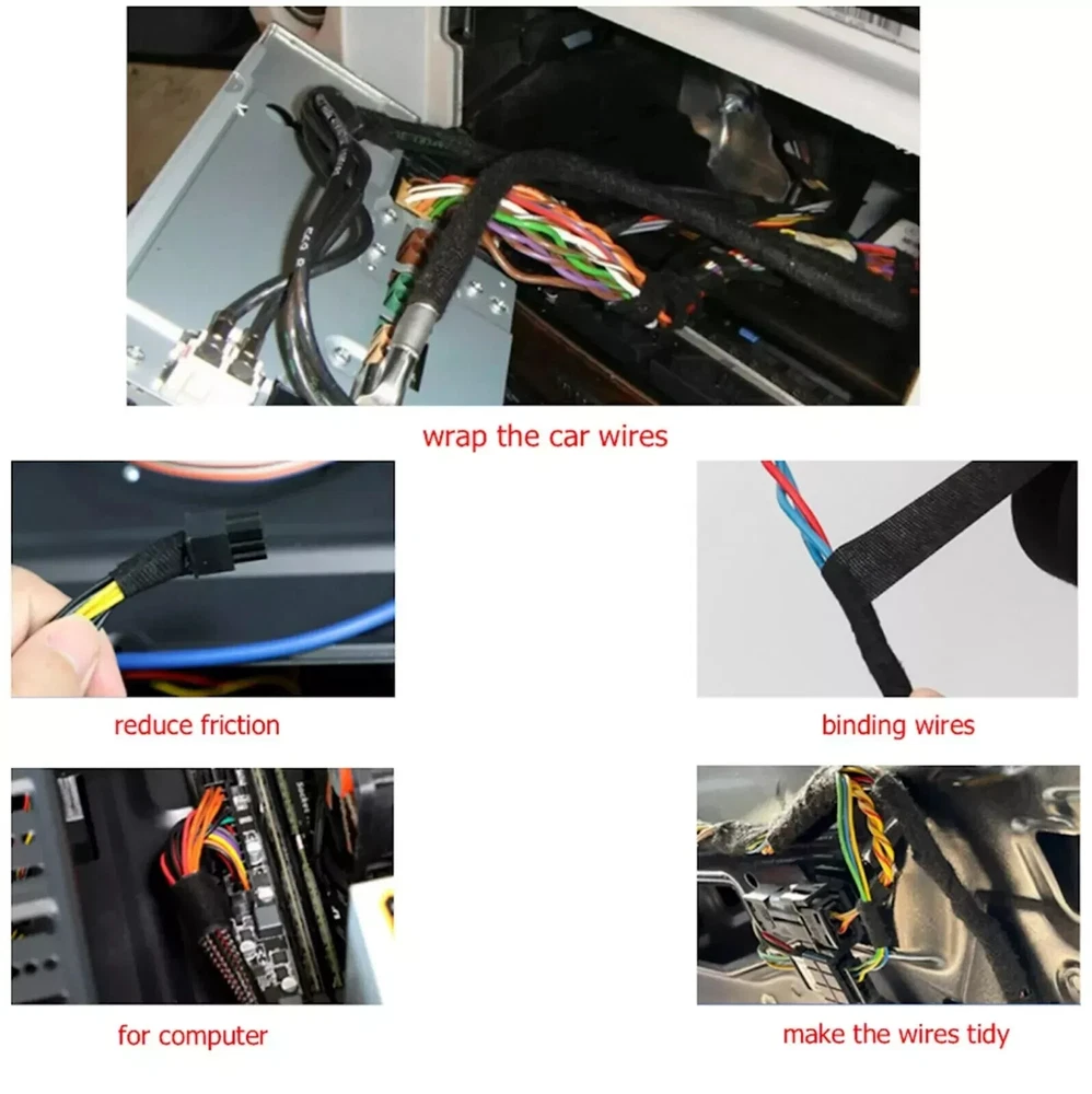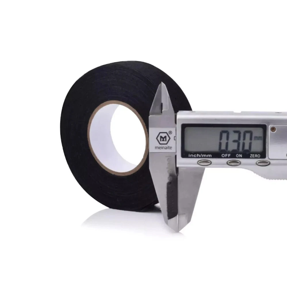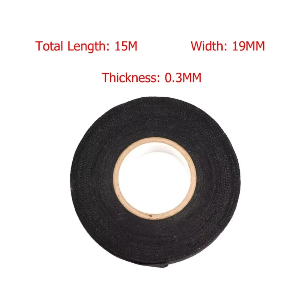 Electrical Wiring Harness Cloth Tape Width: 19mm(3/4 in.), Length: 15m(49.2 ft.), Thickness: 0.42mm( 16.5mils). Material: Cloth Color: Black Width: 19MM Total Length: 15M Width: 0.3MM Package Include: 4X Cloth Tape Product Features: 1. Hand-tearable tape can be easily use bundling wire and prevents rattles. 2. Very high noise reduction effect and high abrasion resistance. 3. Flexible and smooth. 4. Soft backing surface. 5. Strong stickiness but not easy to leave glue marks.