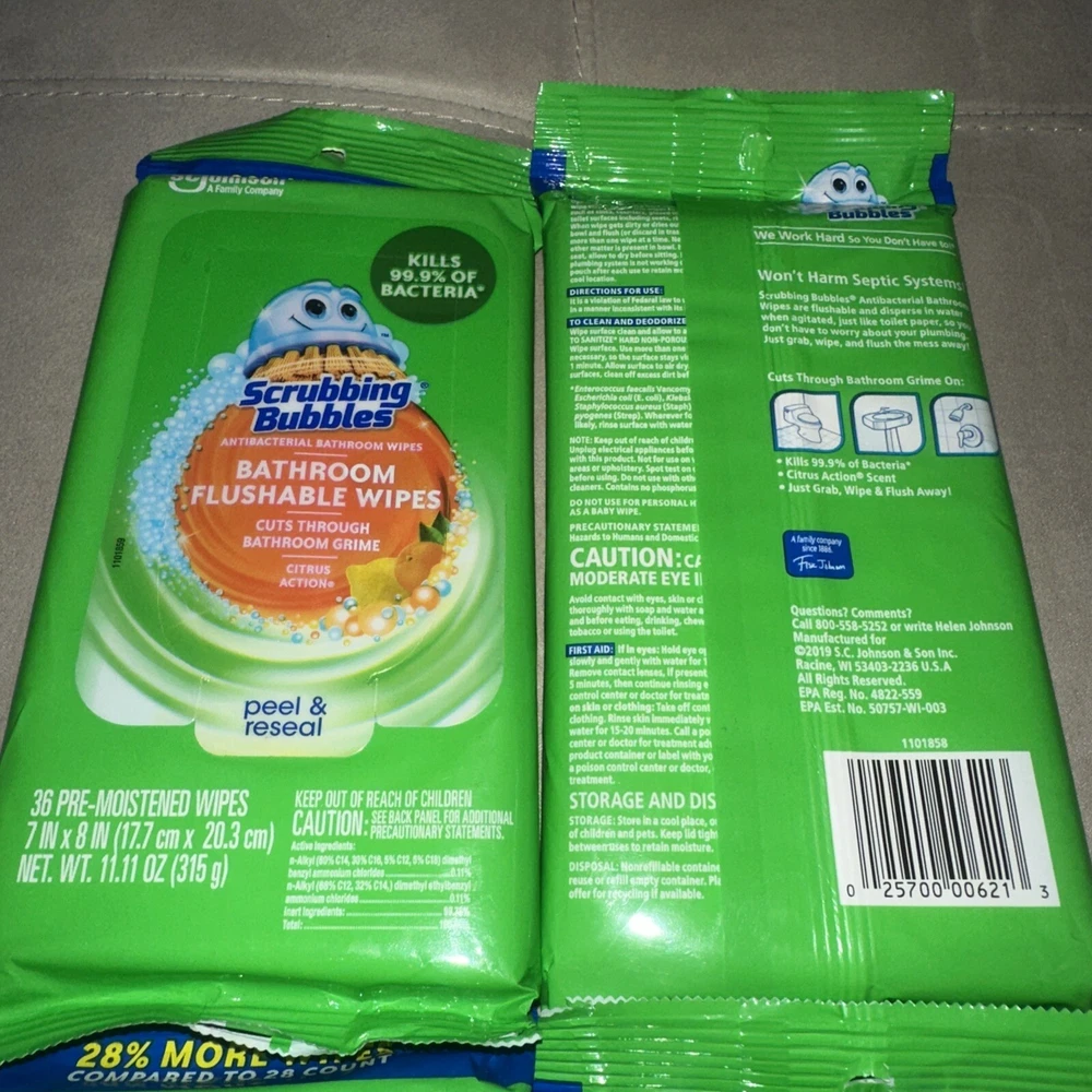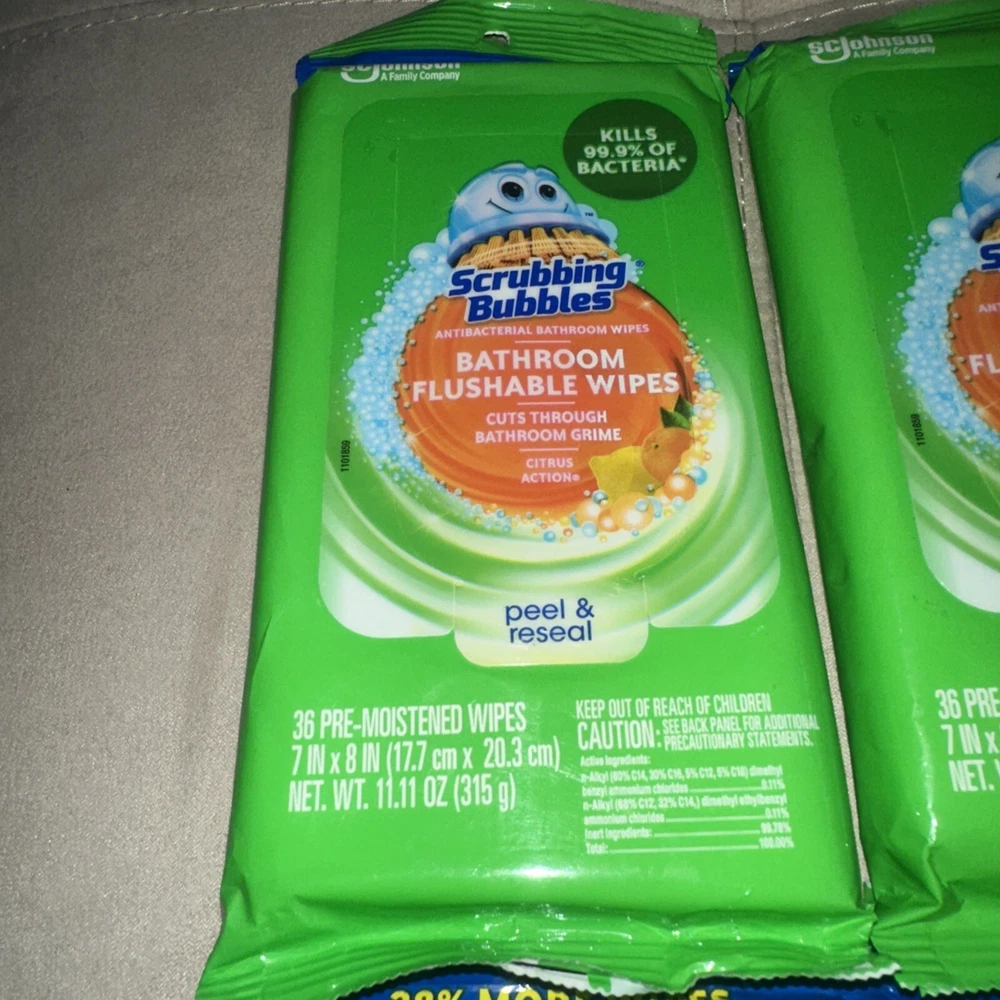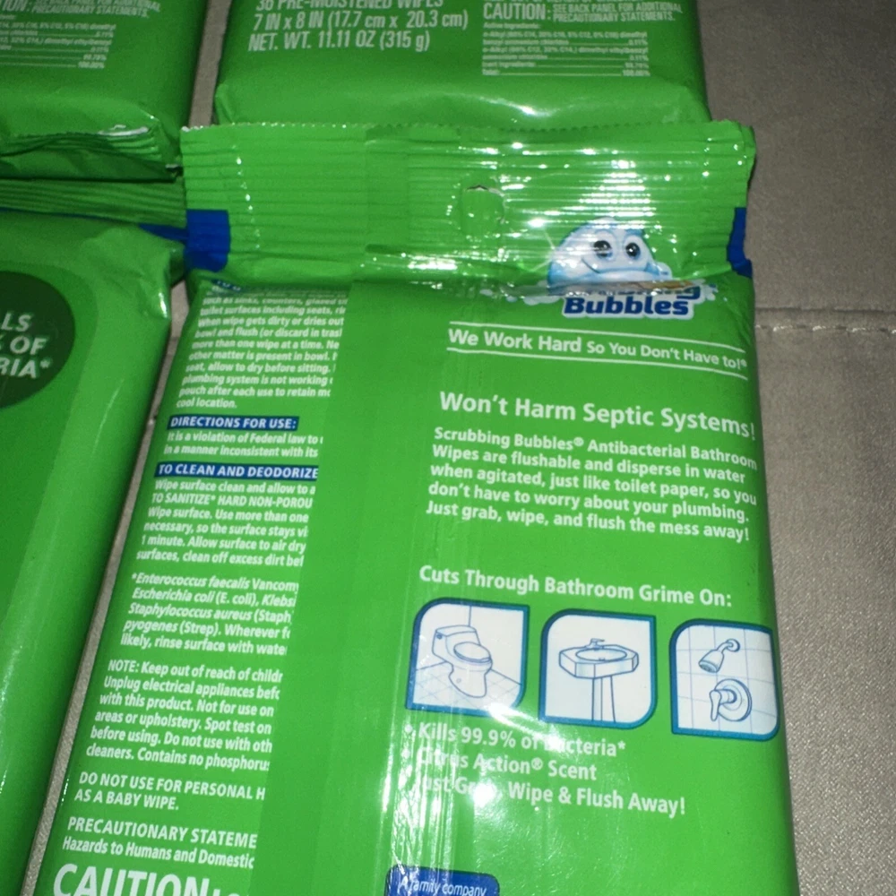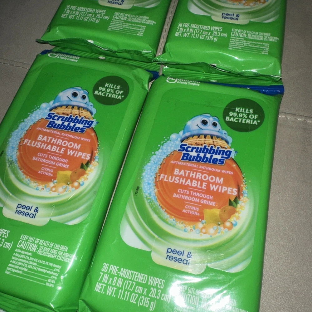 4 Scrubbing Bubbles Bathroom Flushable Wipes 36 ct Citrus New Sealed