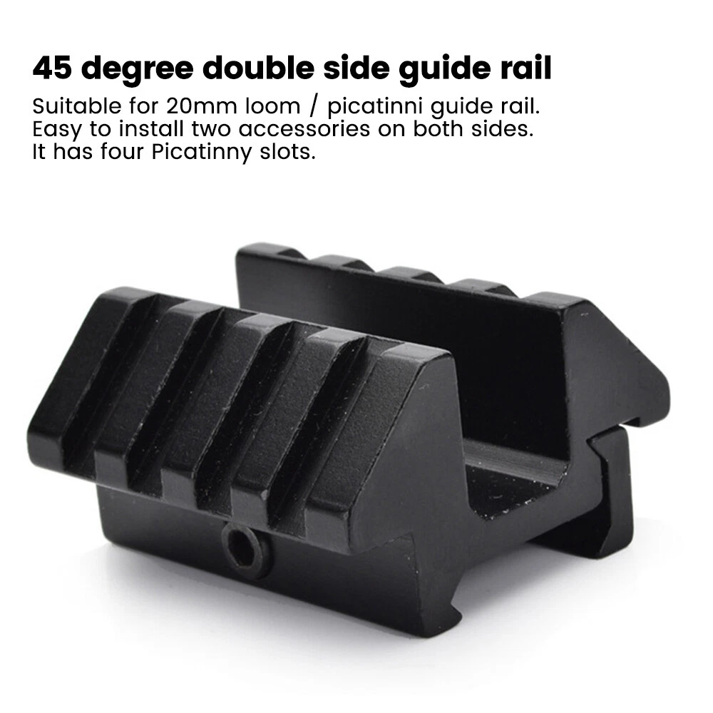 You may also like 1/2 PACK Headlamp COB LED Rechargeable Headlight Torch Work Light Bar Head Band 6.78 USD Free shipping 30mm 25.4mm 1" Scope Ring Mount Rifle Dovetail 11mm 20mm Picatinny Rail 3.99 USD Free shipping UV Ultra Violet LED Flashlight Blacklight Light 365nm Inspection Lamp single USB 3.99 USD Free shipping MLock Aluminum Rail Section Picatinny Weaver Rail Section 3/5/7/9/11/13 Slots 4.99 USD Free shipping SolarStorm 8000LM Bike Headlight Headlamp Road Bicycle Front Light 2X U2 LED 21.99 USD Free shipping 10-50A AMP 12V Automatic reset Circuit Breaker & Cover Dual Battery Fuse IP66 US 2.99 USD Free shipping NEW 177 .22 to .50 Caliber Rifle Gauge Boresight Green/Red Dot Beam Bore Sighter 12.99 USD Free shipping 6 Way 12V 32V Auto Marine Car Power Distribution Blade Fuse Holder Box Block 13.88 USD Free shipping UV Ultra Violet LED Flashlight Blacklight 395/365nM Inspection Lamp Torch Mini 3.99 USD Free shipping US Plug Power Charger Adapter 8.4V/1A For LED Bike Light Battery Pack 3.99 USD Free shipping 365nm-395nm UV Underwater 3x Light LED Scuba Diving Flashlight Torch Battery 23.99 USD Free shipping Rechargeable USB LED Light Flashlight Lamp Mini Torch Pocket Keychain Waterproof 1.99 USD Free shipping 2pcs Scope Bubble Level for 34mm Tube Riflescope Anti-cant Hunting 8.89 USD Free shipping L-ASER Bore Sighter Boresighter Kit For .22 to .50 Caliber Scope w/ Battery Tool 14.89 USD Free shipping Scope Barrel Mount 1" - 25mm & 30mm Ring Adapter with 20mm Weaver Picatinny Rail 7.89 USD Free shipping Alloy Rifle Scope Laser Bubble Spirit Level for 25.4/30mm/34mm Ring Mount Holder 8.89 USD Free shipping Mini Laser Pointer Pen White+Red Light Visible Beam Lazer For Office Pet Cat Toy 3.99 USD Free shipping Mini LED Flashlight Portable USB Pocket Light Torch Outdoor Camping Emergency 3.99 USD Free shipping Product Description 4 Slots 45 Degree Offset Double Side Mount Weaver Picatinny Rail USA 4 Slot Scope Mount Offset Double Sided Picatinny Rail 45 Degree Angle Adapter with 20mm Weaver Rail Hunting Accessories Product Description: Material: aluminum alloy Colour: Black Gap between railways: approx. 15mm Weight: Approx. 71 grams Overall Length: Approx. 47mm feature: - It can be attached to the flashlight at 45 degrees. - Ideal for 20mm Loom/Picatinny rails. - Easy installation and quick release. - It has 4 Picatinny slots. -Easy to install two accessories on both sides. Package Included: 1 x Dual 45 Degree Braid/Picatinny Rails 1 x Allen Key Payment Shipping Terms Returns Contact Us About Taxes 1. We accept payment via PAYPAL ONLY . 2. Payment must be made within 4 days of auction closing. (Non-payment may result in a UPI (Unpaid Item) being put on your account. eBay will automatically close your account if you accumulate 4 UPI's total.) 3. TOTAL AMOUNT DUE includes the final auction price plus S&H(Shipping and Handling). 4.S&H will be determined based upon the SHIP TO address, Tax and customs. PLEASE NOTE: S&H DOES NOT INCLUDE DUTIES, LOCATL TAXES OR ANY OTHER IMPORTATION FEES. We are not responsible for any custom duty or import tax. 5. Please list your special requests (color, packages, etc.) in the PAYPAL NOTES SECTION when you make payment. Our working hours Beijing time from 9:00 a.m. to 18:00 p.m . Monday to Friday Item will be shipped from US/DE/UK warehouse;within 1 days after payment received, usually delivery time 24-72 hours. Warranty: 1. One Year Manufacturer's Warranty for defective items (excluding items damaged and/or misused after receipt). Accessories come with a 3-month warranty. 2.If buyer requests a return when there is no quality problem of the item he received,return postage has to be paid by buyer,and postage for the item won't be returned. 3.If item is damaged or defective on arrival,buyer can either requests a refund or replacement,and postage will be paid by us,meanwhile,the item must be returned. Note: A. Customs duties is neither included in the item value nor the postage,which should be in the responsibility of buyers. B. Please check with your country's customs office to determine what these additional costs will be prior to bidding/buying. 1. You have 7 days to contact us and 10 days to return it from the date it was received. WE WILL ISSUE YOU A REFUND OR REPLACEMENT ! 2. All returned items MUST BE in the original packaging and you MUST PROVIDE us with the shipping tracking number , specific reason for the return, and your eBay ID . 3. We will refund YOUR FULL WINNING BID AMOUNT, upon receipt of the item in its original condition and packaging with all components and accessories included, AFTER BOTH Buyer and Seller cancel the transaction from eBay. OR, you may choose to have a replacement. 4. Return shipping is to be paid by the Buyer . Our office hours are: 9:00 a.m to 6:00 p.m (GMT +8) of Monday to Saturday. And our office is closed on Sunday and public holidays (China). We apologize for the late reply during the holidays. Anything,please contact us by ebay message,we'll service you asap!!! 1. We maintain high standards of excellence and strive for 100% customer satisfaction! Feedback is very important to us. We request that you contact us immediately BEFORE you give us neutral or negative feedback, so that we can satisfactorily address your concerns . 2. We will reply you in 24 hours on business days ( excludes weekends and holidays ) , please note the time difference, so,kindly don't take any action on eBay before getting a reply from us. 3. If you are satisfied with our products and service, please do not forget to leave a good review to us, thanks! For all orders, please note that: 1. Taxes and charges are not included in the item price or shipping charges. 2. Please check with your country's customs office to determine what these additional costs will be prior to bidding/buying. 3. If there is the cutsom fee casused by the cutsom detention, the buyer need to check with your country's customs and deal with it himself. Payment 1. We accept payment