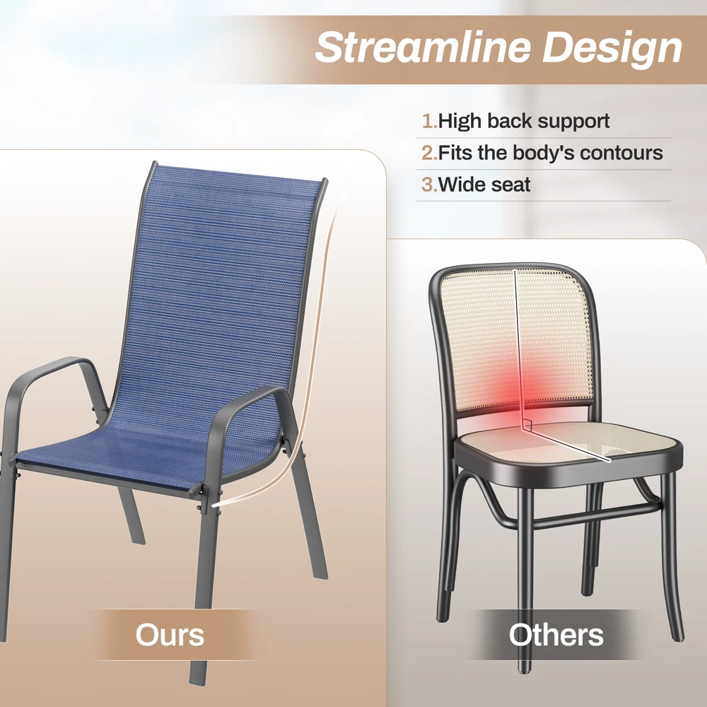 Description: Elevate your outdoor dining experience with our exceptional Patio Chairs, designed for durability and comfort.Transform your outdoor space into a welcoming oasis with our Patio Chairs set. Durable, stylish, and designed for everyday use, they're the perfect addition to your outdoor furniture collection. Don't miss out on the opportunity to enhance your outdoor lifestyle! Features: Yiwsz-0 Your Best Online Business Partner Patio Chairs Set of 4, Outdoor Textilene Stackable Dining Sitting for All Weather, Breathable Lawn Garden Furniture with Armrests, Heavy Duty Metal Frame for Porch, Backyard, Pool side, and Deck Description: Elevate your outdoor dining experience with our exceptional Patio Chairs, designed for durability and comfort.Transform your outdoor space into a welcoming oasis with our Patio Chairs set. Durable, stylish, and designed for everyday use, they're the perfect addition to your outdoor furniture collection. Don't miss out on the opportunity to enhance your outdoor lifestyle! Features: Textilene Fabric: Fade-resistant Textilene fabric is very breathable, so that the patio furniture set will not feel hot and sticky even in hot weather. Wear resistance and quick drying also make the outdoors chairs more suitable for backyards, poolsides, and gardens Heavy Duty Metal Frame: Frame of the stackable chairs is made of 0.8mm iron pipe, with an overall load-bearing capacity of 330lbs. Outdoor dining chairs are sturdy and durable and can adapt to all weather conditions Armrests: Patio dining chairs has armrests, which increase the comfort of the garden chair. Deck chair with armrests can support and prevent you from falling sideways, allowing you to stay seated and making it easier to stand up Ergonomic: Seat width of the outdoor chair set is 20 inches, the seat height is 17 inches, and the high backrest design conforms to the ergonomic structure and is comfortable to sit on Easy To Assemble&Store: Metal chairs set of 4/8 is CKD and requires 2 people to assemble. When installing, tighten each screw to 70%, and then tighten them one by one after all the screws are tightened.Patio set can be stacked, which makes the storage of the stackable dining chairs convenient and simple, and does not take up space Specification: Size: 28.3*21.26*36.6inch Color: Sapphire Blue Frame: Steel metal Fabric:Textilene Armrests:Armrests Place Of Use: Outdoor, Garden, Poolside, Backyard, Porch, Deck Style: Modern" 【Installation Instructions】Note: At least two people are required to install together!!! Since the chair is partially disassembled when it is delivered, you need to install it manually after receiving it. The package contains detailed assembly instructions and parts, or you can follow the video on the page to install it, so that you can complete the assembly in a short time. If you have any questions, you can always contact customer service. 【Maintenance Instructions】To extend the service life of the garden chair, do not use corrosive cleaners; when not in use, cover the chair with a protective cover to protect the furniture. To remove stubborn dirt, you can use a high-pressure cleaner, and be sure to dry it after cleaning to avoid rust, or use a wet towel for care. Storage conditions: Store in a clean, dry place to avoid hair and rust. Item Specifics Type Armchair Brand Unbranded Item Height 37.3 in Item Length 26.4 in Item Width 21.3 in Set Includes Chair Indoor/Outdoor Indoor & Outdoor Features With Armrest Maximum Weight Capacity 330 lb Color Sapphire Blue Payment We only accept Payoneer payment. Shipping We will ship out your item within 24-48 business hours after payment received; We don't process orders on weekends and holidays. Returns 30 day returns. Full / Partial Money Back, or Replacement. Contact Us If you have ANY problems, please feel free to let us know, we'll get back to you ASAP and do our bets to resolve it. Yiwsz-0 Your Best Online Business Partner DESCRIPTION PAYMENT SHIPPING RETURN POLICY CONTACT US Store Category Store Home Kids Slide Garbage Can Indoor Furniture Fitness Home & Garden Hot Item Oversized Padded Zero Gravity Chair, 2pcs Folding Outdoor Patio Recliner, 350lbs USD 139.99 Patio Chairs Set of 4 Breathable Stackable Dining Chairs Outdoor Yard Furniture USD 125.99 3pcs Chaise Lounge Chair Outdoor Adjustable Patio Reclining Chair W/ Side Table USD 169.99 Set of 4 Patio Dining Chairs Outdoor Stackable Armrest Space Saving Garden USD 107.99 Outdoor Stackable Dining Chairs Set of 4, All-Weather Patio Chairs with Armrests USD 113.99 New List Item Dog Crate Furniture Wooden Indoor Dog Kennel End Table Pet cage Furniture USD 189.99 Kids Table and 2 Chairs 4-in-1 Toddler Activity Table w/ Lego and Duplo Bricks USD 99.99 Kids Toy Storage Organizer Toddler 3-Tier Rocket Bookshelf with Side shelves USD 104.99 Dog Crate Furniture Wooden Indoor Dog Kennel End Table Pet cage Furniture USD 189.99 Kids Toy Storage Organizer Toddler Bookshelf w/ 2 Tier Wooden Bookshelf Bookcase USD 104.99 Help & Info Payment Policy Shipping Policy Return Policy FAQ About Us Patio Chairs Set of 4, Outdoor Textilene Stackable Dining Sitting for All Weather, Breathable Lawn Garden Furniture with Armrests, Heavy Duty Metal Frame for Porch, Backyard, Pool side, and Deck Description: Elevate your outdoor dining experience with our exceptional Patio Chairs, designed for durability and comfort.Transform your outdoor space into a welcoming oasis with our Patio Chairs set. Durable, stylish, and designed for everyday use, they're the perfect addition to your outdoor furniture collection. Don't miss out on the opportunity to enhance your outdoor lifestyle! Features: Textilene Fabric: Fade-resistant Textilene fabric is very breathable, so that the patio furniture set will not feel hot and sticky even in hot weather. Wear resistance and quick drying also make the outdoors chairs more suitable for backyards, poolsides, and gardens Heavy Duty Metal Frame: Frame of the stackable chairs is ma
