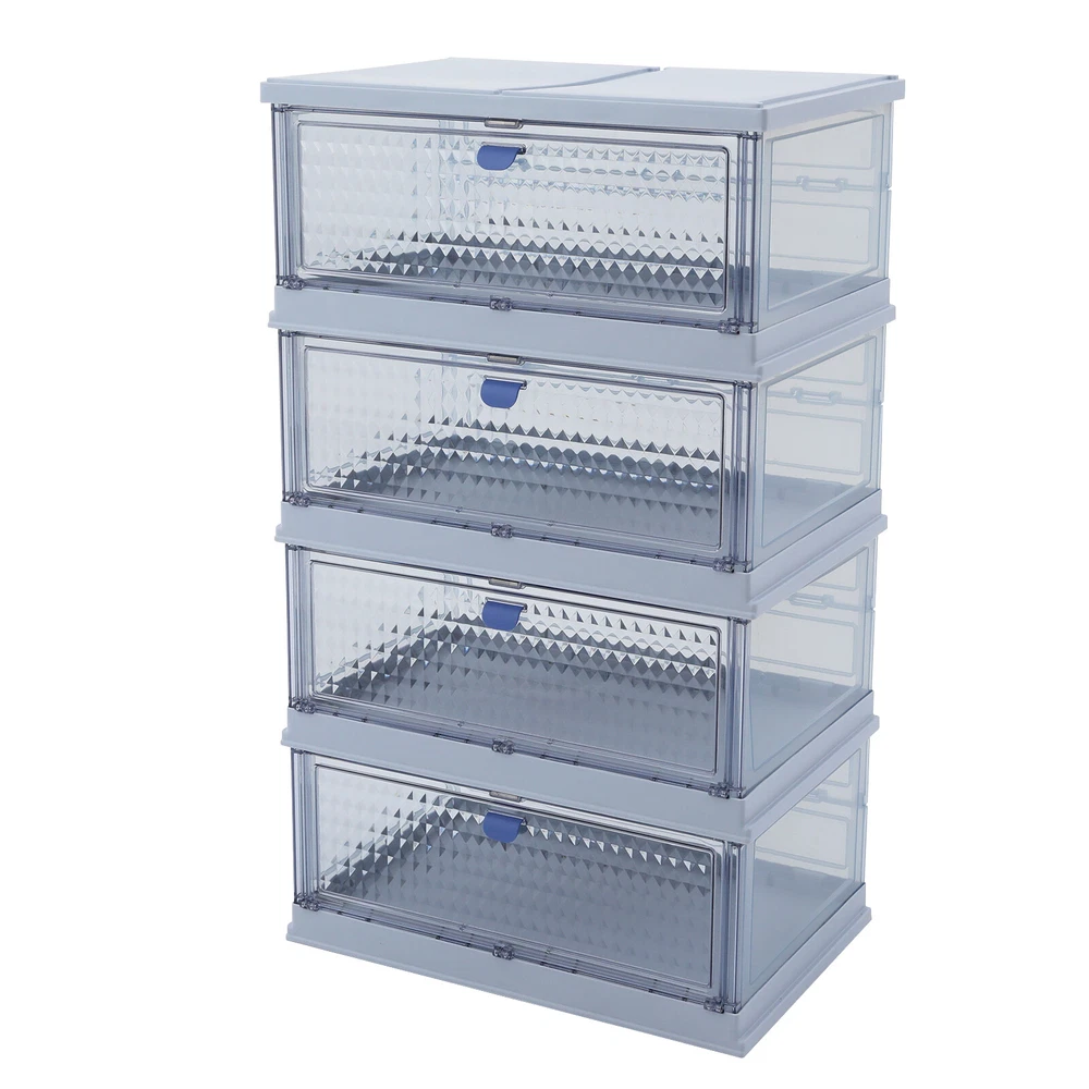 Have a nice day~ Description Do you still struggle with clutter and lack of storage space in your home? This storage cabinet will keep your room organized with its small footprint and large storage space. The strong weight-bearing capacity allows you to use it with confidence, and the foldable design makes it easy to carry and store. If you want to have a neat space, this product is an indispensable helper for you. Key Features Solid and Durable : This product is made of high-class PP and PS, which is anti-corrosion, anti-rust, environmentally friendly, strong, and durable, ensuring you can use it for a long time. Spacious Storage Space : The 4-tier structure provides you with the convenience of storing different categories of items in separate sections, including shoes, snacks, pet supplies, and toys. In addition, the large top platform is convenient for placing your flower pots, bags, keys, umbrellas, and more. Thoughtful Design: The visual design allows you to see items inside at a glance, making it easier to select, access, and place items. The magnetic cabinet door will not open automatically when moving or stationary and is effective in preventing dust and insects in daily use. The diamond panel allows you to see what is inside in a way that doesn't look messy. Strong Bearing Capacity : High-class material, one-piece frame, and rectangular structure make this product withstand 14.33 lbs in each tier, so you can use it with confidence without worrying about collapsing. Foldable and Portable: You can fold this product into a smaller size for convenient storage when not in use, which will not take up much space. Simple to Use : This product adopts an integrated foldable design with a simple structure without additional assembly. You simply unfold it to start using it, thus saving time and effort. Effortless Clean : The smooth surface and simple structure make the cabinet easy to clean with water and a damp cloth (not included). Ideal Gift : Beautiful appearance and practical function make it an ideal housewarming gift for family and friends so that they can enjoy a more exquisite life. Stylish Appearance : The pleasing blue color, diamond patterns on the doors, and smooth lines make the whole product lovely and modern. Wherever it is placed, it will be beautiful scenery. Application It is suitable for storing shoes, cosmetics, books, towels, snacks, sundries, and more in entrances, kitchens, closets, study rooms, living rooms, cloakrooms, or bedrooms. Details Practical Handles : The handles on each door make it easy to open and close the doors. Smooth Edges : They not only enhance the aesthetics of the product but also improve safety during cleaning and use. Specification Color: Blue Style: Modern Shape: Rectangle Material: PP, PS Process: Injection Molding Mount Type: Floor Standing Each Tier Load-bearing Capacity: 6.5kg/14.33 lbs Number of Tiers: 4 Product Size(Unfolded): 52.7*34.8*89.24cm/20.7*13.7*35.1in Package Size: 59*24*42cm/23.23*9.45*16.54in Gross Weight: 6.55kg/14.44lbs Net Weight: 5.72kg/12.61lbs Package Included 1* Storage Cabinet Notes Please confirm the product dimensions before purchasing. Please avoid heavy impact, sharp objects, or direct high-temperature exposure during use to avoid product damage or aging. Please note that this product does not include other items shown in the picture. Please allow the slight color difference caused by the shooting light and 1-3cm error due to manual measurement and make sure you do not mind before ordering. Payment Delivery details Terms of sales About us Contact us Payment We accept ebay payment 。 Fees such as import duties, taxes are not included in the item price or shipping costs. These charges are the buyer's responsibility. Delivery details Shipping: 2-9 working days to: USA Terms of sales We maintain high standards of excellence and strive for hundred percent customer satisfaction. Feedback is very important to us. We hope that you contact us immediately before you give neutral or negative feedback, so that we can address your concerns. It is impossible to address issues if we do not know about them! About us Your satis faction is our ultimate goal. We work hard to earn your trust and future business. Our certified technicians have tested each item before shipping. The unit comes with 1 year limited warranty on all manufacturing defects. a) If you receive a defective item, you may return it or ask for a discount. Please contact us within 14 days after you receive the package. b) What you returned must be intact and in its original packaging as re? u. Customer is responsible for shipping costs of the returned item. c) We will cover the cost of shipping back t with the shipping rate indicated in the registration page. We will send you a new unit or refund the full payment you paid. Thank you. Contact us Business Hour Business Hour: Monday To Friday: 8:30 AM to 5:00 PM (Beijing China time) Due to time zones, our reply to your questions may not be immediately. But within above working time, we will reply your email within 24 hours. If it's non-workdays, please kindly be patient and wait till Monday. Please contact us with ebay message. Please feel free to contact us if you have any questions. Monday To Friday: 8:30 AM to 5:00 PM (Beijing China time) Due to time zones, our reply to your questions may not be immediately. But within above working time, we will reply your email within 24 hours. If it's non-workdays, please kindly be patient and wait till Monday. Please contact us with ebay message. Please feel free to contact us if you have any questions.