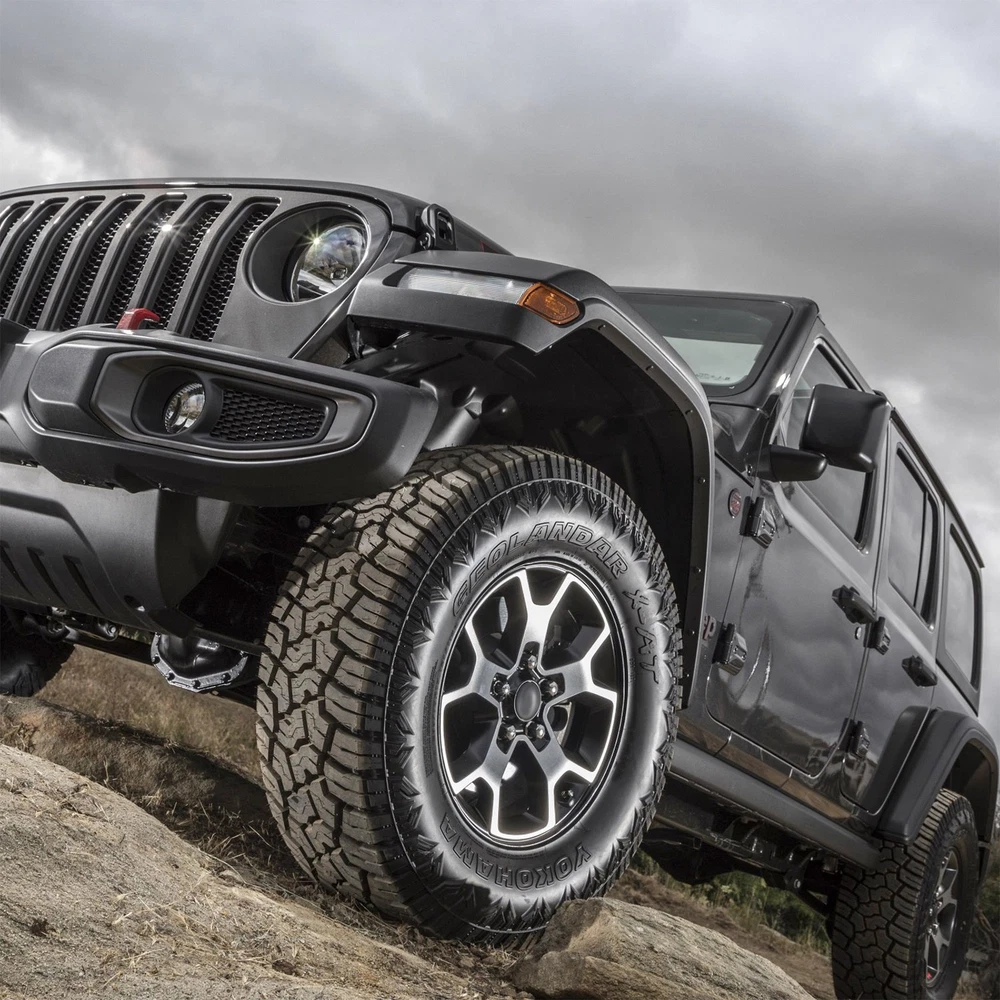 Yokohama Geolandar X-AT FEATURES AND BENEFITS All terrain traction Enhanced controllability Damage resistant performance Longer lasting tread life OVERVIEW The Yokohama Geolandar X-AT is an all terrain, all season tire manufactured for light trucks and SUVs. Yokohama offers a 45,000 mile treadwear warranty. Not all tire sizes are suitable for all vehicle types. Please refer to the item specifications for accurate information about vehicle type fitment for this particular size. Shop Deals Feedback Contact Us Yokohama Geolandar X-AT *Tread pattern & sidewall design may vary from pictures Specifications Brand Yokohama Model Geolandar X-AT Size 305/70R17 Section Width 305 Aspect Ratio 70 Tire Height N/A Rim Diameter 17 Run Flat No Season All Season Performance All Terrain Car Type Light Truck Sidewall BSW: Black Side Wall Load Index 121/118 Speed Rating Q Load Range E (10 Ply) Overall Diameter 33.8 Tread Depth 18/32 UTQG N/A Rebate Available No Seller Notes New SKU N1576418-99-4 Product Description Attention! Due to the size of the tires, Packages might be SEPARATED in the courier facility and not be DELIVERED on the SAME DAY, even though we do ship them together. Tracking information can be checked by logging on to the courier website with the master tracking number you will receive via email. For example, you can receive 3 tires in one day and the 4th one the next day or the day after, or one tire in one day and the second one day after. We understand that this is a big inconvenience for our buyers, however, this is ABSOLUTELY out of our control. Yokohama Geolandar X-AT FEATURES AND BENEFITS All terrain traction Enhanced controllability Damage resistant performance Longer lasting tread life OVERVIEW The Yokohama Geolandar X-AT is an all terrain, all season tire manufactured for light trucks and SUVs. Yokohama offers a 45,000 mile treadwear warranty. The tread design improves the all terrain traction. The aggressive tread and upper sidewall design improve the model's off-terrain grip. The staggered tread blocks and high void ratio manage to ensure the tire's soft, loose and uneven terrain grip, while the upper sidewalls detail provides additional sideway biting edges to grip onto the road surface during the drive. The high void ratio and staggered blocks also keep the footprint clean of mud and snow. They prevent mud and snow from blocking the tire's surface contact, which ensures its deep mud and loose terrain traction. This combination enhances the driving safety levels during the tire's off-road performance. The model is able to perform on all terrain surface conditions without getting damaged. This is the result of the model's ideal self-cleaning ability and the reinforced internal structure. The tread's self-cleaning nature prevents stone retention. It ejects rocks stuck between the tread elements, before they can drill into the tread area and harm the casing. On the other hand, the Geo-Shield technology prevents punctures and cuts from shortening the tire's service life. The special dual sidewall protectors optimize the road contact to prevent impact damage while the tires are in motion. As a result, the model performs in a secure manner on all terrain surface conditions. The tread design and the stronger construction improve the model's controllability. The reinforced Geo-Shield structure and the ideal tread design's constant surface contact improve the steering responsiveness and the driving stability. The better surface contact boosts the steering response time and accuracy to the driver's commands, while the structure is stabilized against the driving pressure affecting the model. The structure features a high turn-up carcass and a full nylon cap reinforcement which boosts the load and driving durability. They enhance the load carrying and withstanding capability without allowing the tire's ideal shape to deform under the pressure. In this manner, the tire increases the performing capability. The Geolandar X-AT promotes a longer tread life. The tire utilizes its tread design and tire compound to ensure a longer usability. The elliptical surface contact area improves the pressure distribution along the tread area. The equally spread out force of acceleration, cornering and braking avoids irregular wear formations across the tread area. The durable HD-2 compound manages to decrease the tread wear rate while the tires are in motion. This allows the model to prevent premature wear with the compound's wear-resistant rubber materials. The result is a lengthened even wear, which elongates the model's service life. Not all tire sizes are suitable for all vehicle types. Please refer to the item specifications for accurate information about vehicle type fitment for this particular size. Manufacturers recommend changing tires every 10 years. As long as tires are properly stored before they are sold, the year of their manufacture will not shorten their service life. RIM NOT INCLUDED Shipping FAST AND FREE SHIPPING FREE SHIPPING within the lower 48 contiguous States. All orders are shipped with FedEx Ground/Home Delivery. FedEx requires a physical address. We cannot ship to PO BOX, APO, FPO, HI, AK, PR, GU or VI addresses. All Orders placed before 12PM EST (Eastern Standard Time) will be shipped out the SAME DAY. FedEx does not pick up orders on weekends and national holidays. The average delivery time ranges between 1-6 business days. Signature Required delivery will not be processed automatically. Please contact us directly to request Signature Required delivery. Special delivery instructions cannot be provided as FedEx is not able to process them. For Buyers from Missouri or if the order is shipped to Missouri a 4.225% MO sales tax will apply. Sales tax for products that are being shipped to other states is collected and remitted by eBay. For more information see article "Taxes and import charges" Tracking information is made available to the Buyer after an Order is shipped. As the supply c