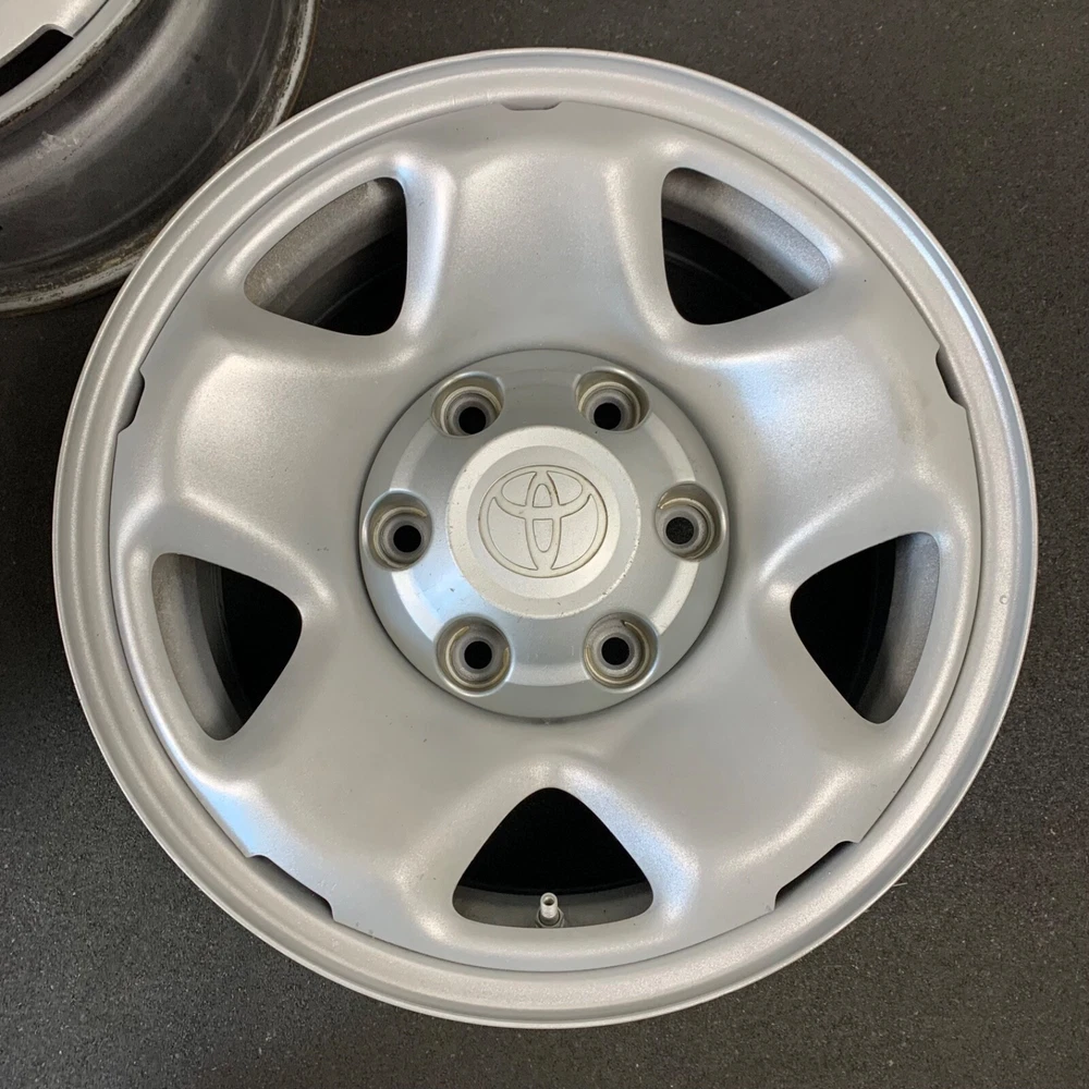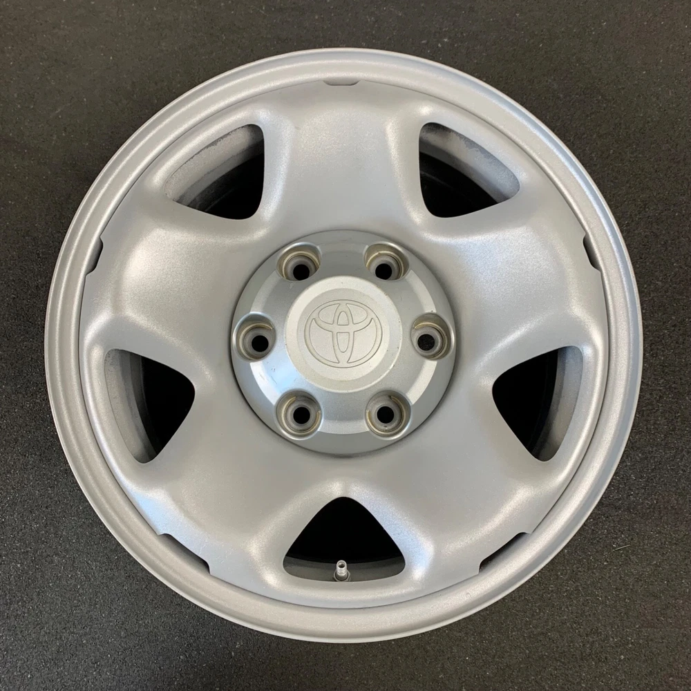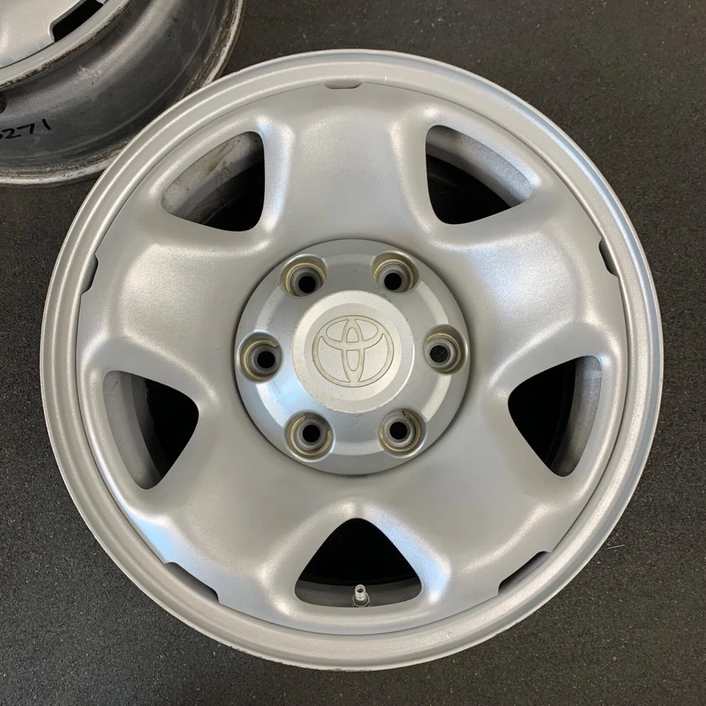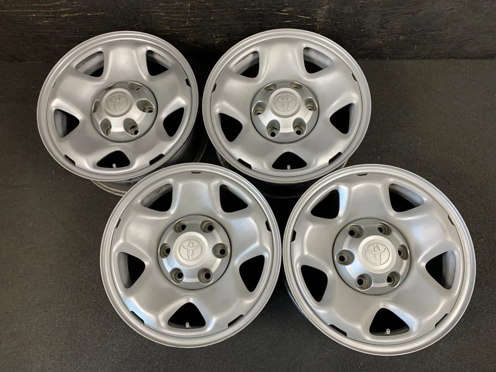 Set of 4 - Factory OEM 16" x 7" Silver Steel Wheels Rims. Includes Center Caps. As a potential bonus, wheels ship with original mounted Tire Pressure Monitor Sensors. Seller does not guarantee fitment or function. Wheels fit various makes and model years - however fitment is buyer's responsibility. Original fitment: Toyota Tacoma (2005-2023) Fits some other Toyota vehicles with 106mm hub bore, 6x139.7mm (6 x 5.5 in) bolt pattern, 15-25mm offset range and OEM 16" wheel. This would include some 4Runner, FJ Cruiser, Sequoia, Tacoma Pre Runner and Tacoma models. We guarantee our wheels to be true and round - they are dynamic balancer tested. Wheels are as pictured.