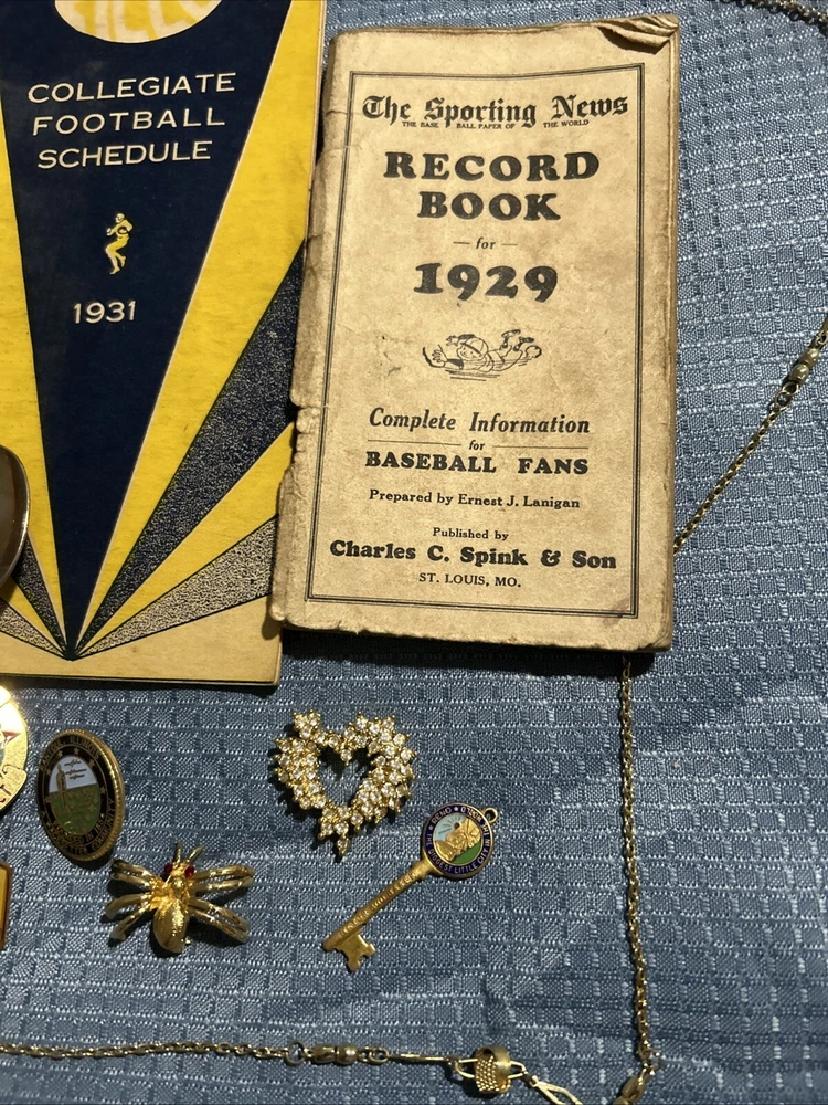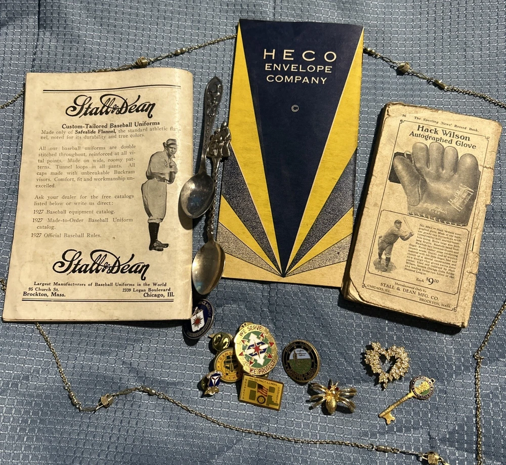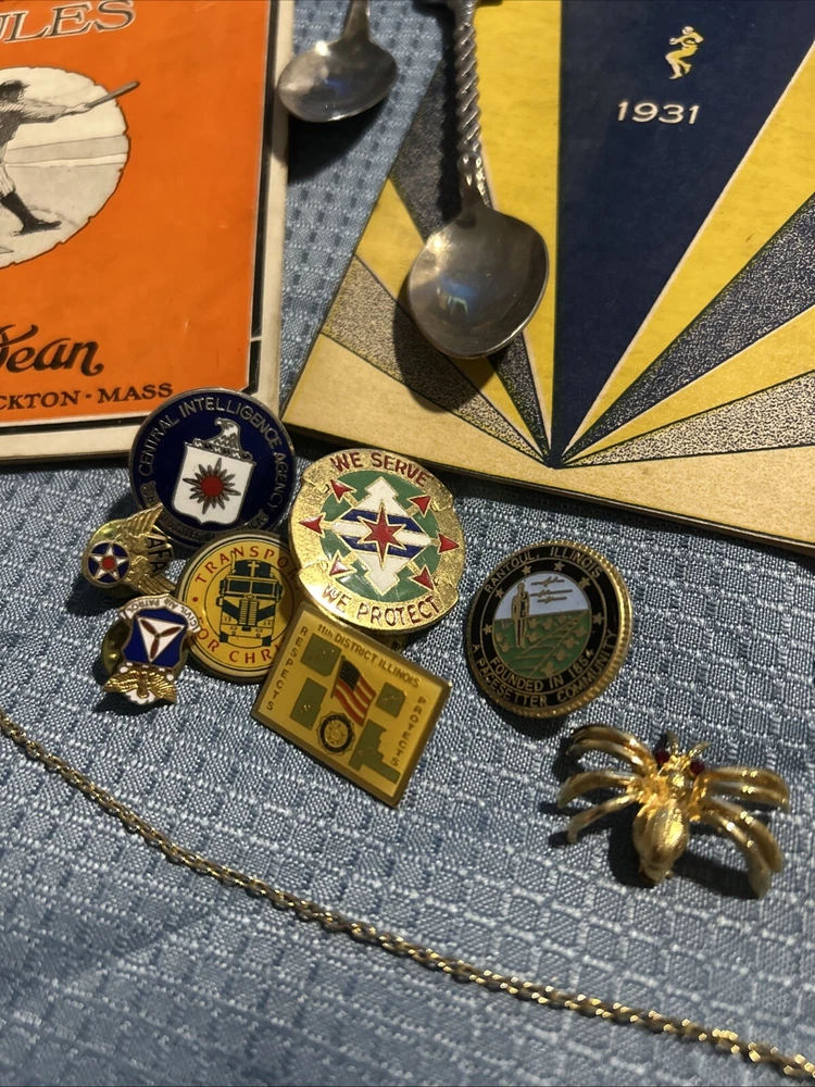 This is a great opportunity to own a piece of history. This vintage junk drawer lot includes a variety of collectibles such as baseball memorabilia, pins, and jewelry. Perfect for collectors or those looking to add some unique items to their collection. The lot is in great shape and ready for display or use. Don't miss out on this chance to own a piece of history.