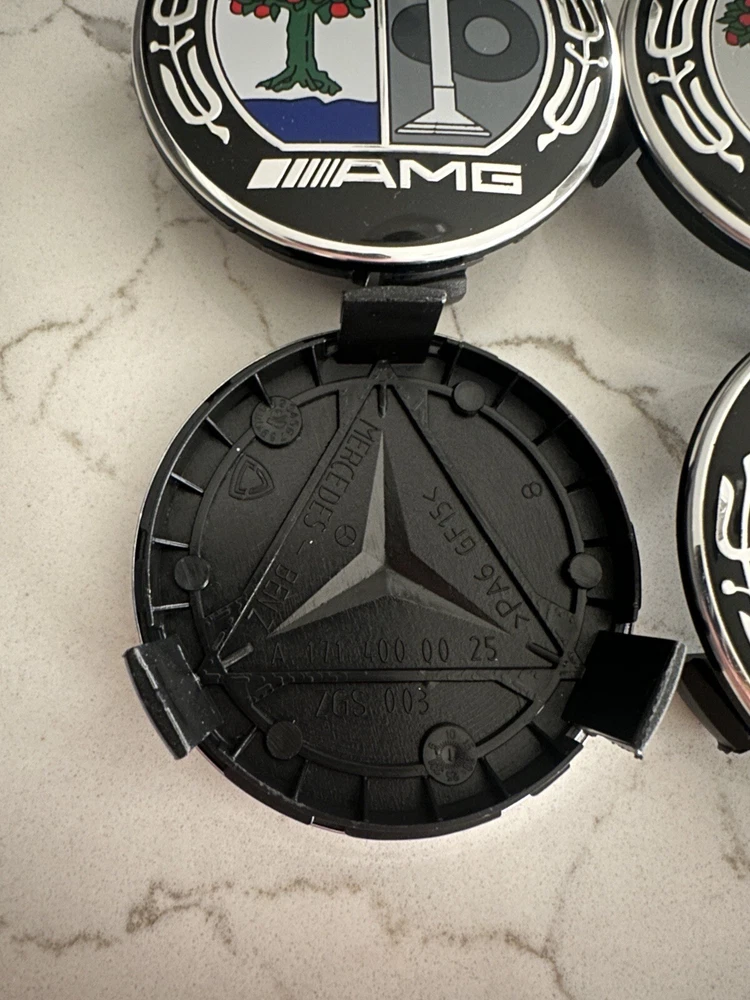 Brand new set of 4 Amg 75mm hubcaps Will ship within the next business day after purchase