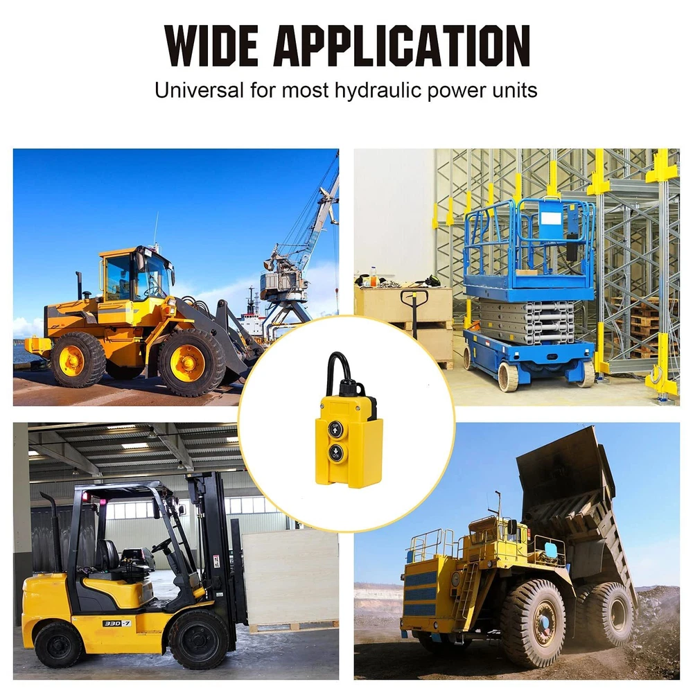 4 Wire Dump Trailer Remote Control Switch 12V DC fits Hydraulic Pump Power Supply Unit Pack Double Acting Dump Trailer Fit for Lift Unloading Our hydraulic power unit remote controller are responsibly made with high quality Eco-materials, first choice for your hydraulic dump trailer, lift gate, lifter, stackers truck! Technical Parameters: *Model:4 Wire *Material: High Quality ABS *Color: Yellow + Black *Style: Switch of Dump Trailer *Wire : 15' Cord for Long Reach *Buttons: Two Button, Up and Down *Package Weight: 2.23 Pounds *Application: Universal for most double acting hydraulic power unit, dump trailer, dump truck, lift gates, elevator lifter, stackers truck, hoist crane. Product Features: *This great little 2-button pendant control is most commonly used as a dump trailer remote. *It's built of a high-impact, highly visible plastic with a standard 15' cord. Powered by 12V DC *Made of high impact resistant plastic and magnetic material, for convenient and long-term use. Wiring Method : -Red - Power (to Battery) -Blue - Raise (to Lift Valve) -Yellow - Down (to Lowering Valve) -Black - Start Master(to Starter) Package Include: Mounting Holster + Convenient Magnetic Back + 4 Wires(You Can Contact Us When You Have Problems On Use) Affordable / Good Value: 1/4 of the price from the dealer. Just as good and easy to install according to the wiring diagram. You will save about 80 dollars. Sensitive Reaction / Up and Down: Powered by 12V DC, the high-quality internal components of the remote control have good conductivity, making it more sensitive in use. With the perfect cooperation of the remote control, the dump trailer will start quickly and reliably, tackle massive works with high efficiency. Waterproof: The wire is two layers of the high-quality protective cover around (polyethylene and PVC), effectively waterproof. Please connect the detachable cable well and protect the remote switch in wet conditions. Long Cord: With a standard 15' cord, You can stand at the back of your dump trailer while dumping the load, which is more secure and handy enough. The thickness of this dump trailer remote control wire is 0.31inch, it is durable. Wide Application: The remote control switch works perfectly with double acting hydraulic pumps. Fit for dump Trailer, liftgate, straight box truck, dump bed, lift platform, and auto-gate, etc.