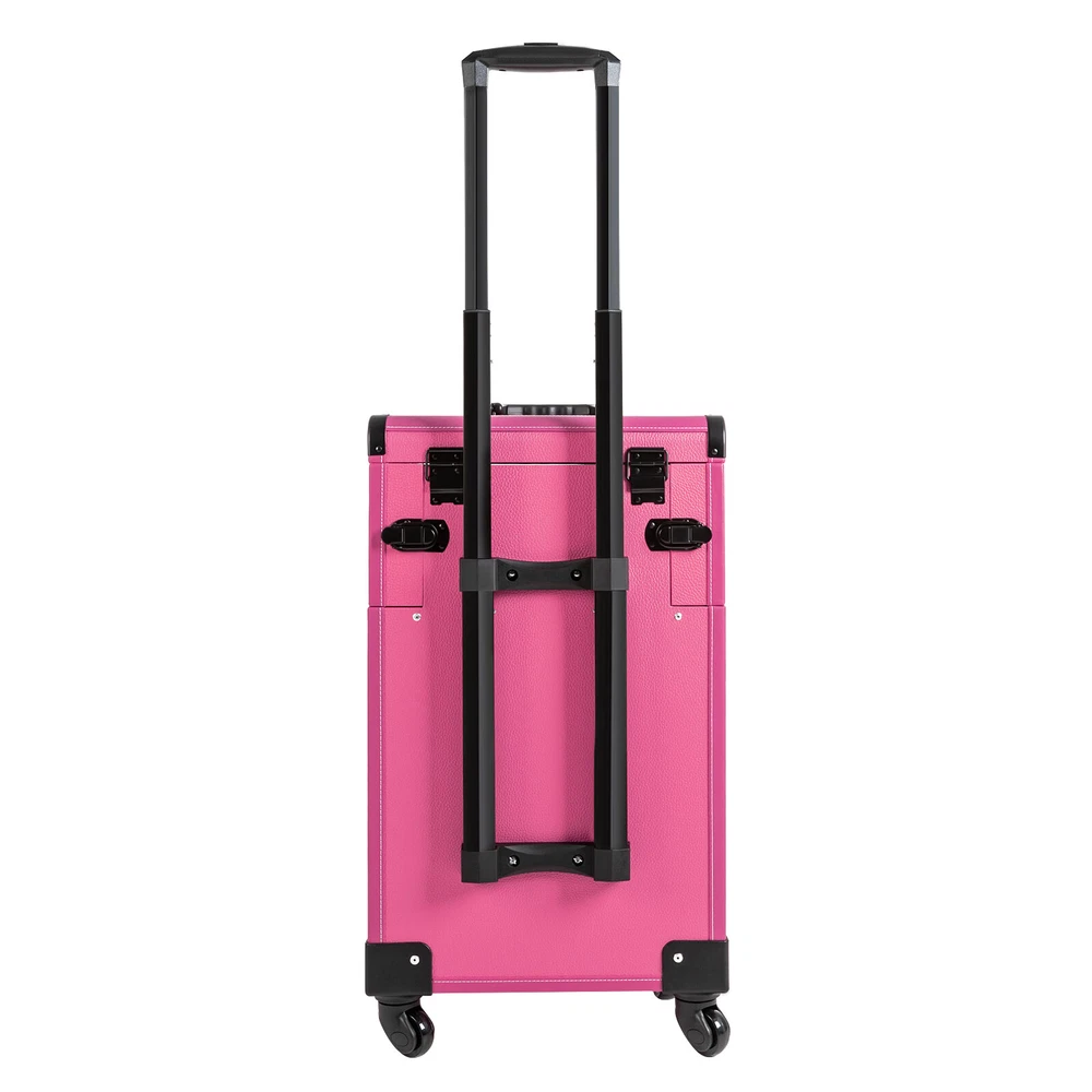 4 in 1 Rolling Zinc Alloy Makeup Train Case Salon Cosmetic Trolley Organizer Box Description If you are a make-up artist or embroiderer who often needs to go out to work, you will need our makeup train case. It is made of premium material, sturdy and durable. 4 universal wheels and a large capacity make it an excellent makeup assistant when outgoing. With its beautiful appearance, it is an ideal gift for your mother, sister, or wife. In addition, locks and latches can ensure high safety, so you can use this item confidently. Key Features Long Service Life: High-quality wood board and PVC make this product anti-corrosion, waterproof, and rustproof and not easily deform, thus ensuring a long service life. Easy to Move & Carry: The 4 universal wheels(2 with brakes) ensure silent and smooth rolling and you can fix it stably. With the practical pull rod and comfortable handle, you can carry this product with less effort. Large Capacity: 4 retractable trays on the top, a large space in the middle, and 2 large drawers at the bottom can provide enough storage space for various cosmetics and makeup tools, such as foundation, eye shadow, blush powder, skin care products, sprays, hair tools. Neat Storage: With different partitions, you can arrange cosmetics in an orderly manner, saving the countertop space and saving time searching for cosmetics, giving your dressing table a new look. Excellent Load-bearing Capacity: The premium materials and rectangular structure provide the make-up case with a maximum weight-bearing capacity of about 110.23 lbs. You can place all kinds of hairdressing and beauty tools on it with confidence. Ready to Use: You can use this product without tedious assembly after receiving it, which saves you time and energy. Stylish Appearance: The rectangular frame, beautiful rose color, and anti-scratch diamond patterns give this product a stylish look, which is a brilliant view when you are carrying it outside. Thoughtful Design: The clear and bright makeup mirror in the case is convenient for you to create the ideal makeup look. The EVA partition can protect your cosmetics from being damaged and allow for neat storage. Ideal Gift: Its exquisite design and large capacity make this product a great gift to your mother, girlfriend, sisters, wife and loved ones so that they can enjoy more convenient makeup time. Protective Shipping: To prevent the product from being damaged and bumped during transportation, we fill the package with an anti-collision sponge to protect your products to the maximum extent possible. Customer Service: We aim to provide quality products and services. If you have any problems, please feel free to contact us. We will reply and solve the problem for you as soon as possible. Details Zinc Alloy Corner Wrap: The zinc alloy corner wrap with a round design can not only protect your case from impact but also better care for your skin. Locks and Latch: They are solid and durable to effectively protect the inside items from loss. Application Professional makeup artists, hairdressers, beauticians, manicurists, beauty lovers, etc. can use this product to store cosmetics and makeup tools. It is ideal for makeup contests, wedding makeup scenarios, travel makeup, outdoor shooting, cinemas, dressing rooms, crew, tourism, beauty salons, and more. How to Lock 1. Lift the steel ring. 2. Press the lock plate. 3. Insert the key. 4. Turn clockwise to lock it, and turn counterclockwise to open it. 5. The case is locked. Specification Color: Rose Shape: Rectangular Material: Zinc Alloy, Wood Board, PVC, EVA Style: Modern Assembly Required: 1 Number of Items: 1 Mounting Type: Free Standing Overall Load-bearing Capacity: About 50kg/110.23 lbs Wheel Height: 7cm/2.76in Overall Product Size: 37*24*66cm/14.57*9.45*25.98in Pull Rod Length: 43cm/16.93in Mirror Size: 16.5*11cm/6.5*4.33in Each Tray Size: 19.5*16.5*4.5cm/7.68*4.69*1.77in Middle Space Size: 34*21*12cm/13.39*8.27*4.72in Each Drawer Size: 34*20*11cm/13.39*7.87*4.33in Package Size: 42*32*72cm/16.54*12.6*28.35in Net Weight: 9.8kg/21.61 lbs Gross Weight: 12kg/26.46 lbs Package Included 1 x Makeup Train Case 2 x Keys Notes 1. The service wear of the case is a normal phenomenon. In the process of daily use, please try to avoid excessive impact and drop to extend the lifespan of the product. 2. Please use soft tools and water to clean. Please keep away from corrosive liquids. Please avoid long-term exposure to the sun. 3. Please clear the wheels in time to maintain smooth movement. 4. Please allow the slight color difference caused by the shooting light and the 1-3cm error due to manual measurement. Please make sure you do not mind before you order. Payment Delivery details Terms of sales About us Contact us Payment We accept ebay payment ă Fees such as import duties, taxes are not included in the item price or shipping costs. These charges are the buyer's responsibility. Delivery details Shipping: 2-9 working days to: USA Terms of sales We maintain high standards of excellence and strive for hundred percent customer satisfaction. Feedback is very important to us. We hope that you contact us immediately before you give neutral or negative feedback, so that we can address your concerns. It is impossible to address issues if we do not know about them! About us Your satis faction is our ultimate goal. We work hard to earn your trust and future business. Our certified technicians have tested each item before shipping. The unit comes with 1 year limited warranty on all manufacturing defects. a) If you receive a defective item, you may return it or ask for a discount. Please contact us within 14 days after you receive the package. b) What you returned must be intact and in its original packaging as re? u. Customer is responsible for shipping costs of the returned item. c) We will cover the cost of shipping back t with the shipping rate indicated in the registration page. We will send you a new unit or refund the full payment you paid. Tha