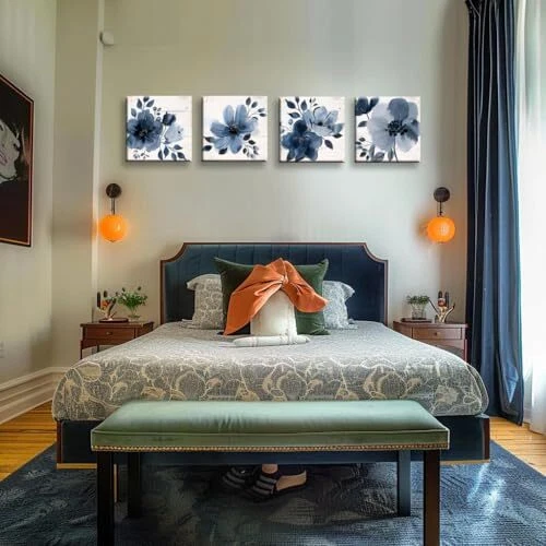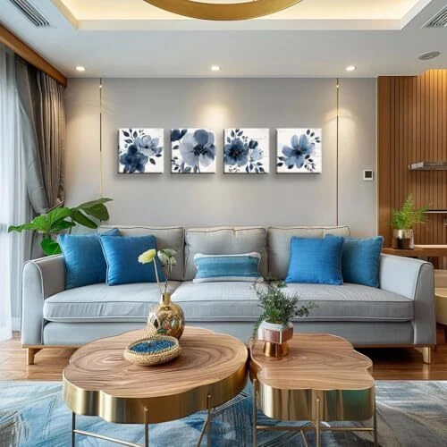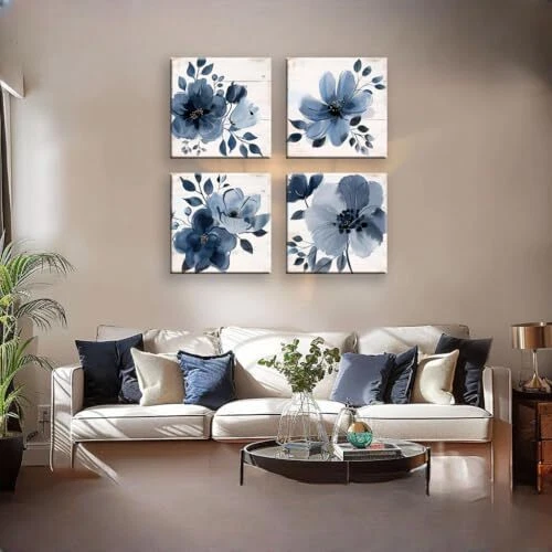 Return Policy Fast Delivery Trusted seller 4 piece Blue Floral Wall Art White Wood Artwork Canvas Prints Grey and Navy Flowers in The style of Watercolor Painting Vintage Floral Wall Decor Each 12 inches x 12 inches Product Description Decorative Wall Art: This set of 4 painted canvas prints wooden panels features a beautiful floral design, perfect for adding a touch of elegance to any room. Versatile Placement: Suitable for living rooms, bedrooms, dining areas, dens, nurseries, offices, kitchens, bathrooms, entryways, and hallways. Durable Construction: Crafted from high-quality wood, ensuring long-lasting beauty and durability. Easy Installation: Hang the panels individually or arrange them in a cohesive display for a stunning gallery wall. Dimensions: Each panel measures approximately 12 inches by 12 inches (30 cm by 30 cm). Shipping Returns Payment Shipping Shipping is FREE to all addresses other than APO/PO boxes in the lower 48 states. All our stock ships from US-based warehouses. Shipped via USPS or UPS (depending on location and package weight) Unless stated otherwise, all orders will ship within 24-72 hours of your payment being processed. Check our feedback to see the great reviews of FAST shipping we offer. Returns Seller does not accept returns Payment We currently accept payment via eBay managed payments only. Once payment is cleared, we will dispatch your shipment within 1-3 business days. Please refer to the "Shipping" tab for more information regarding shipping speed to your destination.