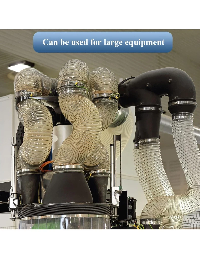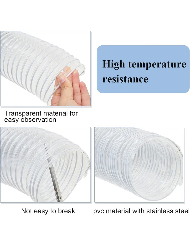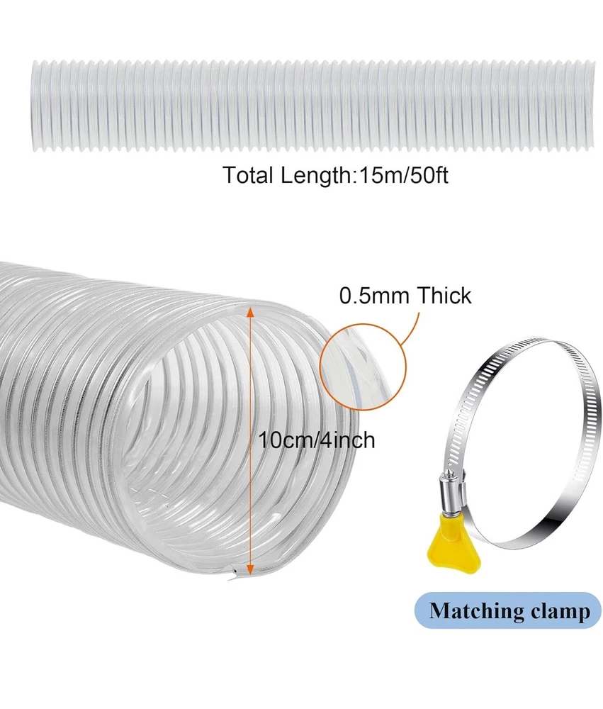 4'' x 50' Flexible PVC Dust Collection Hose with Stainless Steel Hose Clamps Clear Vacuum Hose Dust Collection Fittings Dust Collector Accessories for Woodworking