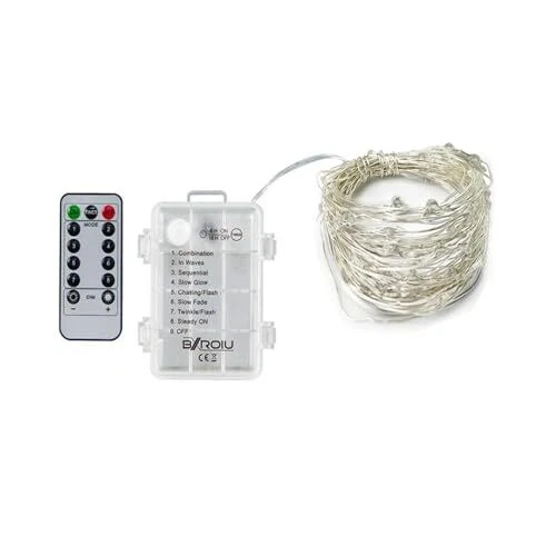 【Lighting 8 modals】 fairy lights battery with remote control of 8 modals with different light types: wave-type change, continuous change, change of flicker, single light gets brighter and darker, slow-flash change, dreamlike change, burst flash, always bright. 【Timer Mode】 Enjoy the convenience of our user-friendly timing function. Simply press the timer button, and the string lights will gently flicker once, indicating successful activation. The fairy lights will automatically illuminate for 6 hours and then gracefully turn off for 18 hours each day. Should you wish to deactivate this function, it can be easily suspended 【Battery Fairy Lights】 Elevate your decor with this set of 4 Silver Wire Fairy Lights. Each string extends 16.4Ft/5 meters and is adorned with 50 micro LEDs. These battery-powered lights are incredibly versatile and easy to hide, allowing you to effortlessly decorate any space. The battery case ensures a discreet power source. (Batteries not included; requires 3 AAA size batteries) 【Versatile Decoration】These string lights are perfect for both indoor and outdoor use, helping you craft a warm, romantic, and relaxing ambiance in various settings. Whether you're adorning your courtyard, garden, stairs, hallways, bedroom, or using them for special occasions like weddings, parties, Halloween, and Christmas, these lights are sure to enhance the atmosphere 【High-Quality Silver Wire】Crafted from thin and flexible silver wire, these fairy lights are incredibly versatile. They can be easily bent and twined around plants, handrails, scutcheons, furniture, and more, allowing you to bring your decorative ideas to life with ease
