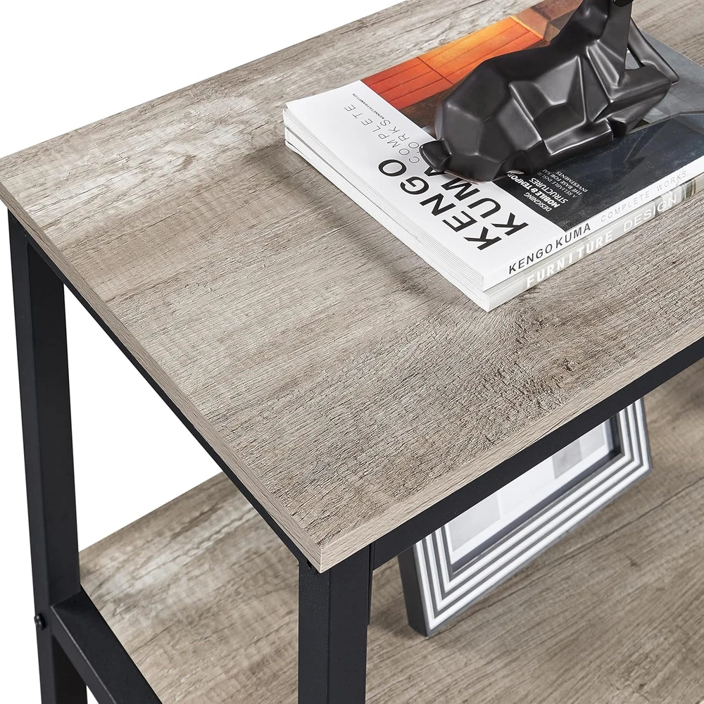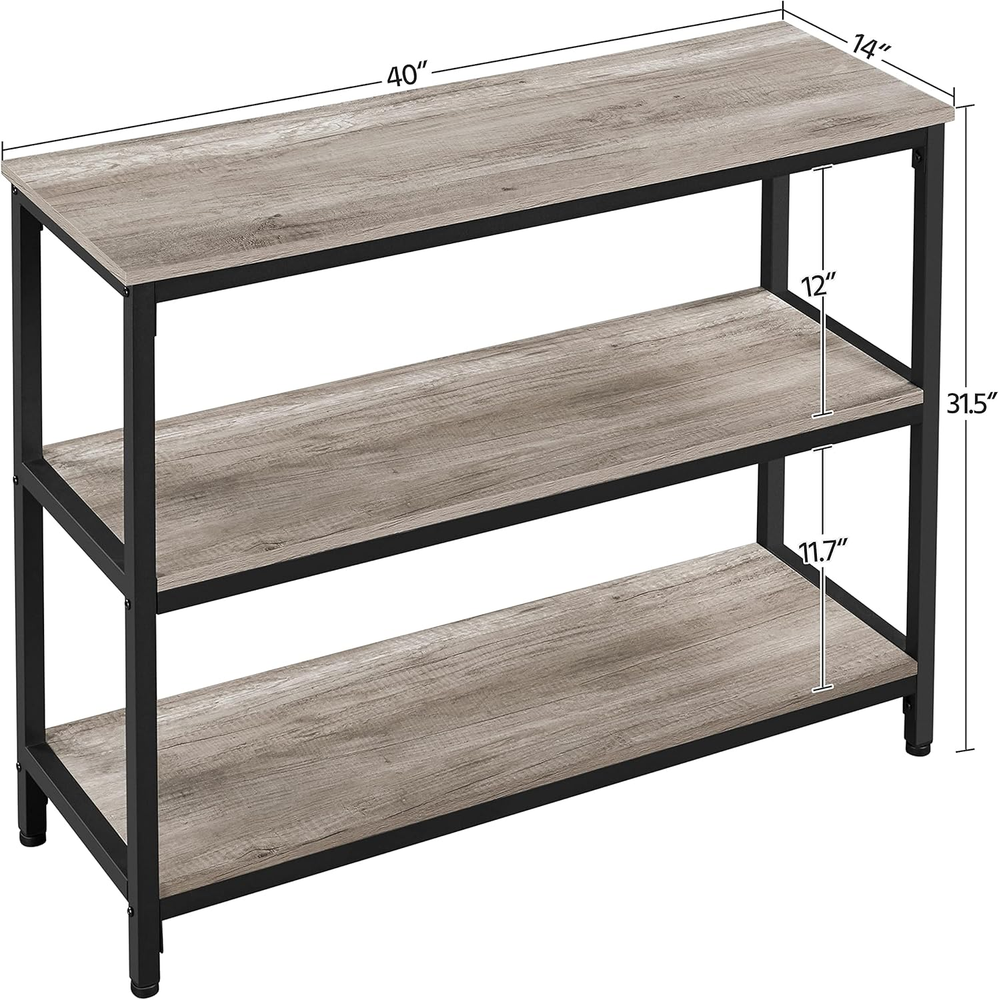 Ample Space: Our console table embraces 3 storage shelves, expanding limited space vertically and allowing you to separately store your different items. Measuring 40 inches L × 14 inches W × 31.5 inches H, it is perfect for limited space Multi-scenario Applicable: This console table is designed to serve different scenes, such as serving as a sofa side or back table in your living room, as a storage rack for tableware or coffee maker in your kitchen, an entryway table in the hallway, or as a staircase console at the head of the stair Selected Materials: This vintage console table is made of qualified iron and MDF material. Tables made from such materials have greater weight capacity and are more sturdy and durable to use. Besides, the surface is covered with lamination veneer, resistant to both water and scratches Adjustable Protective Feet: Under each of the feet provides an adjustable protective footpad, enabling this sofa table to better adapt to uneven ground and preventing it from slipping during usage or slight scratches during movement Stylish: This entryway table is designed in a simple but vintage style. It can easily match your room decor and serve as an elegant addition to your house Product Description This cost-effective vintage sofa table is made of high quality MDF and iron material, which ensures a long life span. This entryway table features 3 storage, which offers ample storage space to keep items orderly and organized. This console sofa entryway table is rustic and simplistic, which matches your home decor and highlight your taste. Its proper size makes it perfect for living room, study, kitchen and hallways as console table, sofa table, or entry table. It can easily match with your room decor and serve as an elegant addition to your house. Specifications: Material: MDF & Iron Color: Classic Grey Overall Dimension: 40 x 14 x 31.5’’ (L x W x H) Shelf Load Capacity: 66 lb Total Load Capacity: 198 lb Layer Spacing: 12’’ Ground Clearance: 3.5’’ G.W.: 42 lb N.W.: 37.3 lb Product Details The surface of this set is specially-treated that water and scratch are both unlikely to leave a mark. The rustic surface and simple structure create a charming industrial style. Ensure anti-slip and protect the floor from scratches. Ensures excellent structural stability and rust-resistance.