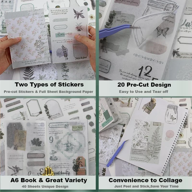 Menu 1. We require immediate payment. 2. We currently accept payment via eBay managed payments only. 3. Once payment is cleared, we will dispatch your shipment within 1-3 business days. Please refer to the "Shipping" tab for more information regarding shipping speed to your destination. 40 Sheets Nature Themed Washi Stickers Book for Adults, Botanical Plant Stickers with 180pcs Ephemera Stickers and 20 Adhesive Aesthetic Papers, Bullet Junk Journaling Scrapbook Supplies Product description WHAT YOU WILL GET: Our 40 sheets green themed botanical Sticker Book includes 20 sheets of a nice variety of pre-cut plant stickers ( stickers are about 180pcs) and 20 full sheets of scrapbook self-adhesive papers with different designs (paper size: 4.1'' × 5.7''). Besides, the package will come with a purple tweezer Washi Materials: Our stickers are made with washi paper materials. ADD the Sticker Book TO CHART now and Transport yourself to a bygone era with vintage flowers, retro letters, wax seals, frames, and inspiring quote stickers that evoke a sense of nostalgia and creativity Precut & Self-Adhesive: Enjoy the convenience of 20 sheets of precut design washi stickers and 20 sheets of self-adhesive background scrapbooking papers, offering limitless creative possibilities Save Space and Convenience Carry Out: The booklet compact design of our sticker book saves space, making it a great addition to your crafting supplies without taking up too much room. Besides, you can easily take the sticker book with you wver you go, without worrying about losing or damaging them Suitable for creative journaling enthusiasts, scrapbookers, and anyone who loves to add a personal touch to their projects. Whether you're making a junk journal, a photo album, or a planner, these stickers will add a special touch and make your projects stand out PLEASE MESSAGE US IF YOU HAVE ANY OTHER QUESTIONS, AND MANY THANKS FOR READING ALL OF THIS. Copyright ©#. All Rights Reserved.