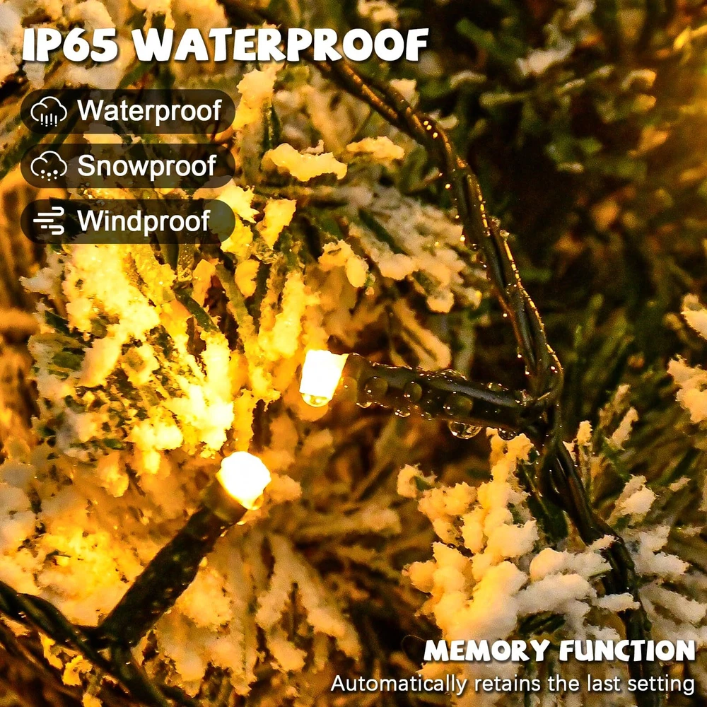 đăChristmas Tree Lightsă16 light strings, 400 light beads, specially designed for Christmas trees 3.3-6.6Ft high. The dark green line has good concealment, making it an ideal choice for decorating indoor and outdoor Christmas trees đăHow to UseăHang the disc on the top of the tree, then untie the string of lights one by one and hide them in the branches. The bright and warm lights can make the Christmas tree shine and move at night đăTimer Functionă6 hours on 18 hours off, automatically cycle the process, saving energy. Long press the button on the plug for 3 seconds until the button turns green, that is to start the timer mode đă8 ModesăOur Christmas tree lights come with 8 light modes: blinking, constant light and so on, short press the button on the plug to switch as you like đăIP44 WaterproofăWrapped in insulating material, rainproof, snowproof and windproof, excellent for outdoor use. Please note: The adapter is not waterproof, please keep it dry đăWhat You Getă400 LEDs Christmas tree lights x 1, US plug x 1, instructions manual x 1. If there is any problem, please leave a message to our backstage at the first time, we will give you a satisfactory solution