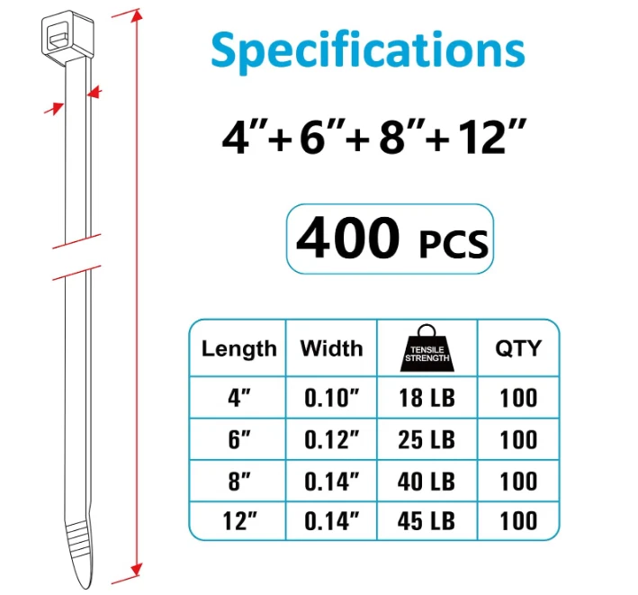 Free eBay listing template designed by dewiso.com 400 Pack Assorted Zip Ties (4", 6", 8", 12") - Black, UV Resistant Cable Ties Product Get ready to tackle all your organizing and securing needs with the ANOSON Zip Ties Assorted Sizes ! This 400-pack includes a variety of lengths—4", 6", 8", and 12"—perfect for any project, big or small. Made from durable, UV-resistant nylon, these heavy-duty ties can handle any indoor or outdoor application, from securing cables to crafting and gardening. With a tensile strength ranging from 18 lb to 45 lb, you can trust these ties to hold strong under pressure! Shipping We take pride in offering fast and reliable delivery for your orders! We are committed to getting your products to you as quickly as possible. Generally, we would like to inform you that all orders will be delivered to you within 1-3 business days after processing. However, in some cases, delivery times may vary depending on the buyer's location. Especially in remote or rural areas, the expected delivery time may be extended. In such situations, we do our best to ensure that your order reaches you as quickly as possible. If there are any delays, we will be happy to contact you to explain the situation. Our goal is to enhance your satisfaction with our fast delivery times. We work diligently to ensure that your order arrives safely. Trust us and enjoy our speedy delivery! Contact Have questions? We're here to help! Reach out anytime for support or additional information about your order. Your satisfaction is our priority, and we’re committed to providing excellent customer service. Features and Further Details Versatile Use: Ideal for home, office, garden, and workshop applications. High Strength: Each size offers a different tensile strength, ensuring you have the right tie for the job. Easy to Use: The self-locking design guarantees a secure hold every time. Additional Features: UV-resistant, halogen-free nylon construction designed to withstand extreme temperatures from -40℉ to 185℉. Details: Each pack includes 100 ties of each size (4", 6", 8", and 12"), ensuring you have plenty on hand for all your needs. Package Includes: 400 assorted zip ties in black, perfect for organizing and securing items efficiently. LuxeFusion