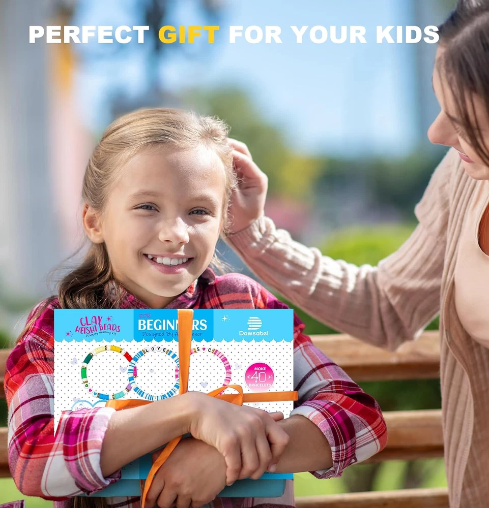 Perfect Bracelet Making Kit to Start - This clay bead kit includes basic thing for a beginner to start making beautiful bracelets and jewelry, including 3600 pcs flat polymer clay beads and about 400 pcs charms kit (2 types random letter beads, colored heart beads, white shells, gold flat pieces, gold flat flowers, slobster clasp set, etc),1 rolls of 10 meters stretchy strings. Let's start your new wonderful journey with the Dowsabel jewelry-making kit as the origin Be Friendly to Beginner and Kids - We have prepared instructions and step-by-step videos to teach you how to make bracelets, jewelry and earrings. In addition, we will also introduce you to the usage of charms accessories one by one, such as lobster clasp, binder, and so on. Whether you are a beginner or not, you could enjoy a relaxed and enjoyable experience from Dowsabel store Premium Quality, Safe to Use - All of our beads are made of healthy materials, light and durable, comfortable to the touch, not easy to fade, waterproof, and can be worn when bathing or swimming. The diameter of clay heishi beads is 6mm with a 2mm hole and thickness is 1mm. Recommended age 6+ years old Enjoy DIY, Endless Creativity - With thousands of clay beads in 18 colors and various charms accessories, the possibilities for creative expression are endless. It could exercise hands-on skills and immerse yourself in the joy of making friendship bracelets. Let your imagination run wild and create unique jewelry that reflect your style now! Wide Use & Meaningful Gift - Perfect kit for DIY crafts like jewelry making, bracelets, necklaces, earrings, anklets, keychains, and any ornaments. It’s an ideal gift for your daughter, granddaughter, sister, mother, besties. A meaningful and cheerful gift choice for Taylor's concert, birthdays, Valentine's Day, Mother's Day, Christmas, Thanksgiving Day, etc Product Description Step-by-step videos to teach you how to make bracelets. A good activity to accompany your kids, also exercise children’s abilities. Let the kids make friendship bracelets in the company of wonderful friendships. 1 Design for Beginners 2 Parent-Child Activity 3 Friendship Bracelet Kit The video showcases the product in use. The video guides you through product setup. The video compares multiple products. The video shows the product being unpacked. Do you think we only have 18 colors of clay beads? We still have more... Making Your Bracelets ! Ideal Gifts for Girls! Dowsabel Clay Beads for Bracelets 1 BOX 4000PCS BEADS 18 Colors Clay Beads for bracelet - Everything you need in one box. 1 BOX 5000PCS BEADS 20 Colors Clay Beads Kit - Most Popular Bracelet Making Kit. 2 BOXES 7500PCS BEADS 24 Colors 2 Box of Clay Beads - with letter beads and charms. BE FRIENDLY TO BEGINNER Teaching you how to get started from now! BE ClASSIC TO BEGINNER Vibrant colors of clay beads uniquely selected for girls. UNIQUE CUTE STYLE Meet your requirements of colorful DIY objects. Launched in 2024 Spring Launched in 2023 Spring Launched in 2023 Summer
