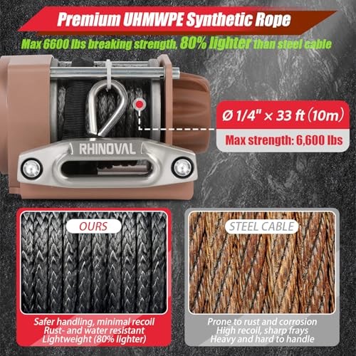 4000lb Waterproof Winch with Dual Wireless Remotes 12V Synthetic Rope 6600lb Breaking Strength for ATV UTV Trailer Flatbed Recovery 4000lb Waterproof Winch with Dual Wireless Remotes 12V Synthetic Rope 6600lb Breaking Strength for ATV UTV Trailer Flatbed Recovery Engineered for endurance and priced for value, backed by over a decade of design and manufacturing experience. Durable synthetic rope with enhanced shock absorption, reduced snapback risk, and resistance to rust and corrosion. Includes a 3-core integrated corded remote and two long-range wireless remotes for convenient and safe operation. Certified IP67 and engineered to meet IP68 standards for dust, waterproofing, and weather resistance in harsh conditions. Compact and sleek design offers versatile mounting options and space efficiency compared to bulkier alternatives.