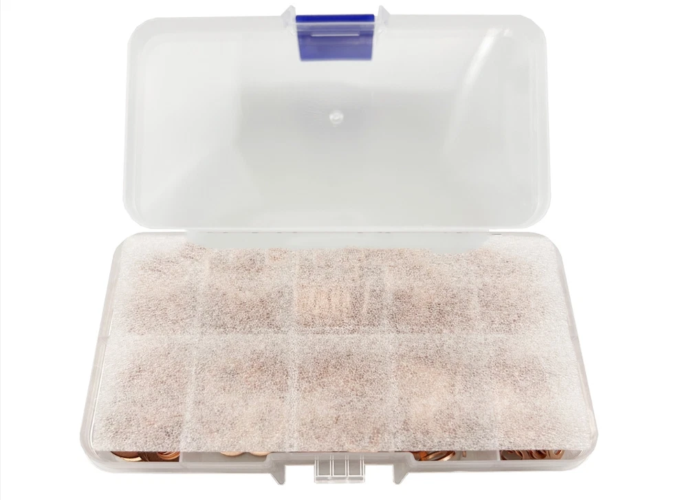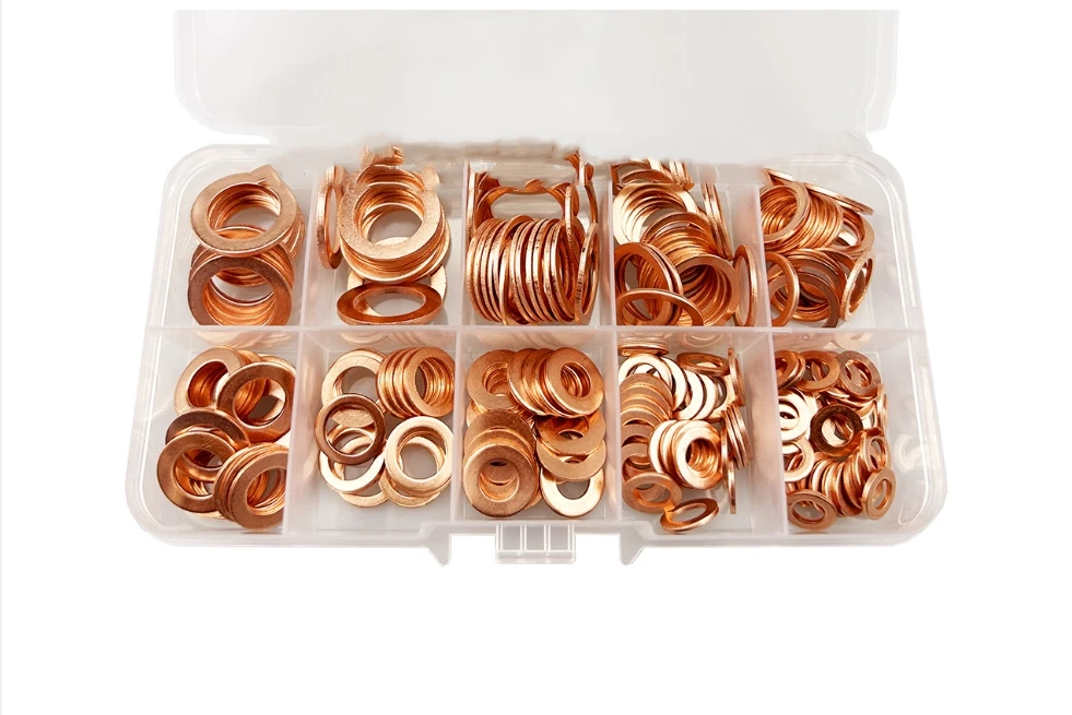 Brand new Material: copper Color: as picture shows Box size:approx.130x60x23mm Sizetypes:9(M5-M14) >Quantity:200pcsSize:(l/Dx0/DxDepth) M5*9*1 30pcs M6*10*1 30pCS M6*12*1 20pcS M8*12*1 20pcs M8*14*120pcs M10*14*120pcS M12*16*120pcS M12*18*1.5 20pcS M14*18*1 20pcs Package included: 200pcsxcopper washers 1pc x case Note: Pleaseallow1-2mmerrors due to manual measurementltem color displayed in photos may be showing slightly different onyour computer monitor since monitors are not calibrated same