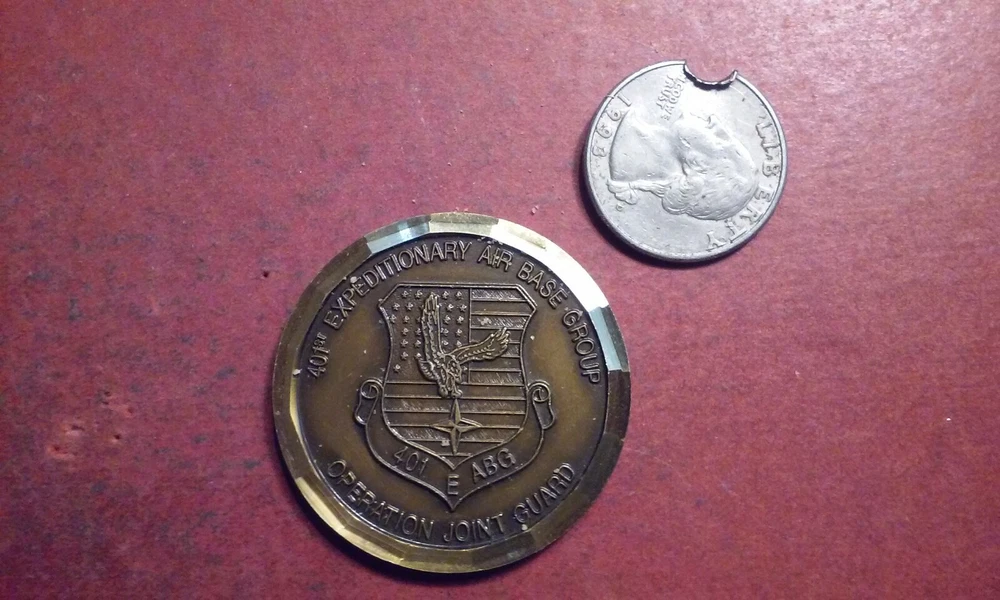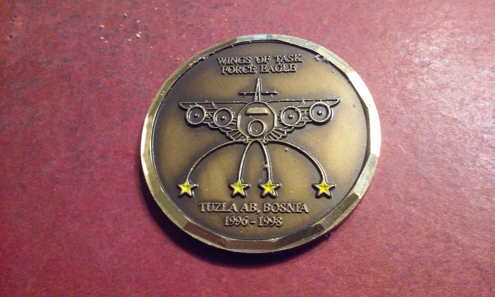 This is an AUTHENTIC 401ST EABG OPERATION JOINT GUARD TUZLA BOSNIA 1996 RARE CHALLENGE COIN . FREE SHIPPING!