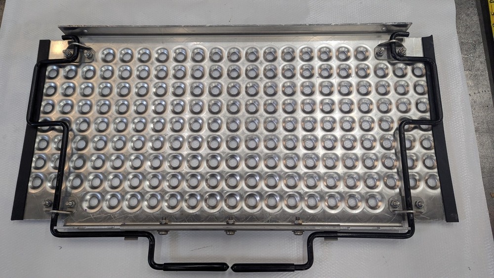 4067969C92 International Truck Deck Plate (15"x30") Quick Release Freightliner Peterbilt Kenworth Volvo Mack. This is a universal deck plate walking platform for behind the cab or bunk of your truck. Great frame access plate. Nice aluminum high traction and very good looking. Not a super high polish but a very nice finish. Quick Release / Install just pull the handles down and set on the frame move the handles back to their stowed position to clamp to the frame. The spring action design gives flexibility for different thicknesses of frame. Both handles are on the same side so you can put 2 together to form a 30 x 30 plate with no gap. New unused deck plate that have some light scratches from handling. They all have a few scuff marks from being boxed together without packaging in between. Quantity discounts helps with the freight cost of this oversized part. Free shipping