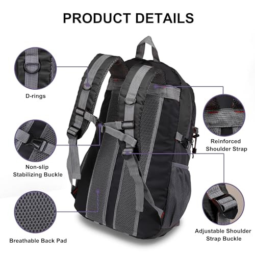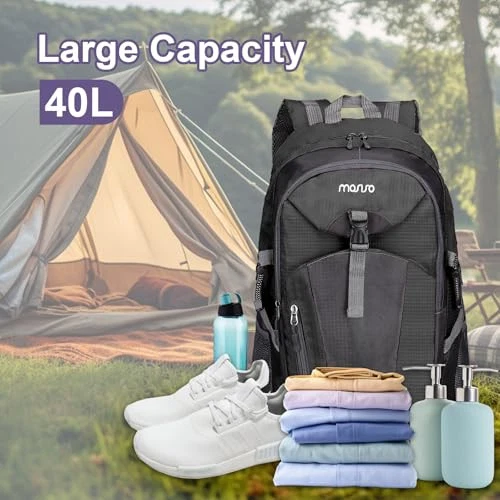 1. This hiking backpack is a game-changer! Super lightweight yet surprisingly spacious at 40L, perfect for day trips or weekend adventures. The waterproof material keeps my gear dry, and the comfortable straps make long hikes a breeze. Love the sleek design that works for both men and women—super versatile for camping, travel, or outdoor sports. Super quick shipping too! Highly recommend for anyone who loves the outdoors.