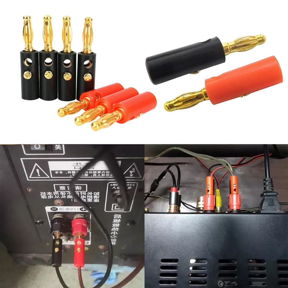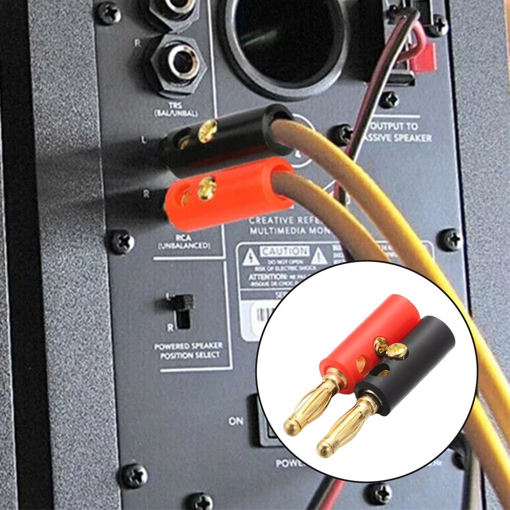 40PCS 4mm Gold Plated Banana Plugs Audio Jack Speaker Wire Cable Screw Connector Features 100% brand new and high-quality made. The 4mm diameter standard size pin fits most speakers worldwide. The plugs can be stacked with existing 4mm banana plugs. Compatible with up to 3mm diameter of speaker cables. Screw connector fitting - no soldering required. Specifications Dimension: 0.87 x 3.82 cm Material: Plastic and Metal Package Includes 20 PCS Red Banana Plugs 4mm 20 PCS Black Banana Plugs 4mm Payment Shipping Returns About Us Payment Shipping Returns About Us We accept PayPal, major credit cards, and other methods supported by eBay Managed Payments. We offer FREE shipping on all orders! Your order will be dispatched within 24 hours receiving payment and you should expect to receive it two to five days after dispatch. If you are not completely satisfied within 30-days of your purchase, you can return the product and get a full refund or replacement (your choice). Our return process is eBay managed and very easy to follow. We will be responsible for the return shipping cost of the damaged or wrong items. We are a family owned business located in the beautiful western Pennsylvania. We began as a wholesale jewelry and fashion importer. After successfully selling a few precison jewelry scales on a major online marketplace in 2009, we decided to transform into a professional weight scale distributor. Then soon expanded into other great product categories. See our other items Features ---100% brand new and high-quality made. ---The 4mm diameter standard size pin fits most speakers worldwide. ---The plugs can be stacked with existing 4mm banana plugs. ---Compatible with up to 3mm diameter of speaker cables. ---Screw connector fitting - no soldering required. Specifications ---Dimension: 0.87 x 3.82 cm ---Material: Plastic and Metal Package Includes ---20 PCS Red Banana Plugs 4mm ---20 PCS Black Banana Plugs 4mm 40PCS 4mm Gold Plated Banana Plugs Audio Jack Speaker Wire Cable Screw Connector Features 100% brand new and high-quality made. The 4mm diameter standard size pin fits most speakers worldwide. The plugs can be stacked with existing 4mm banana plugs. Compatible with up to 3mm diameter of speaker cables. Screw connector fitting - no soldering required. Specifications Dimension: 0.87 x 3.82 cm Material: Plastic and Metal Package Includes 20 PCS Red Banana Plugs 4mm 20 PCS Black Banana Plugs 4mm Payment We accept PayPal, major credit cards, and other methods supported by eBay Managed Payments. Shipping We offer FREE shipping on all orders! Your order will be dispatched within 24 hours receiving payment and you should expect to receive it two to five days after dispatch. Returns If you are not completely satisfied within 30-days of your purchase, you can return the product and get a full refund or replacement (your choice). Our return process is eBay managed and very easy to follow. We will be responsible for the return shipping cost of the damaged or wrong items. About Us We are a family owned business located in the beautiful western Pennsylvania. We began as a wholesale jewelry and fashion importer. After successfully selling a few precison jewelry scales on a major online marketplace in 2009, we decided to transform into a professional weight scale distributor. Then soon expanded into other great product categories. See our other items Features 100% brand new and high-quality made. The 4mm diameter standard size pin fits most speakers worldwide. The plugs can be stacked with existing 4mm banana plugs. Compatible with up to 3mm diameter of speaker cables. Screw connector fitting - no soldering required. Specifications Dimension: 0.87 x 3.82 cm Material: Plastic and Metal Package Includes 20 PCS Red Banana Plugs 4mm 20 PCS Black Banana Plugs 4mm