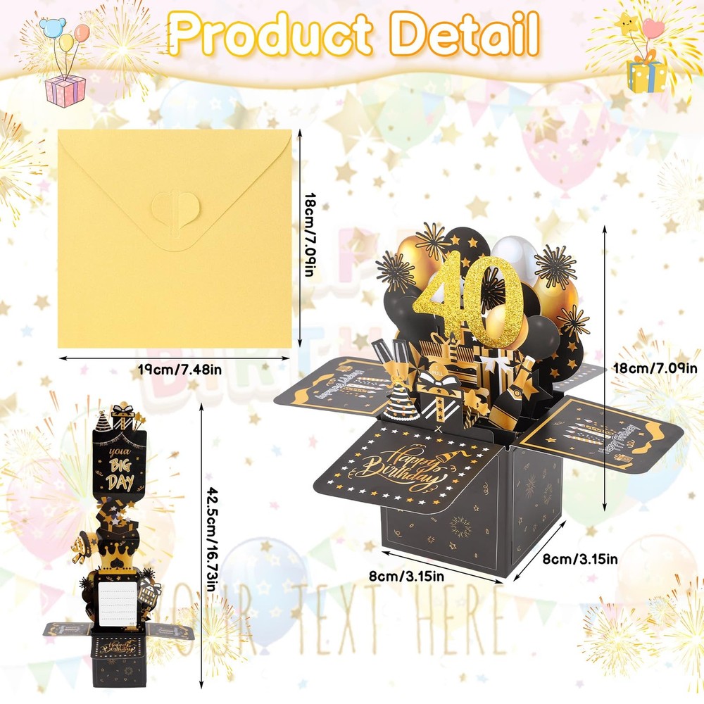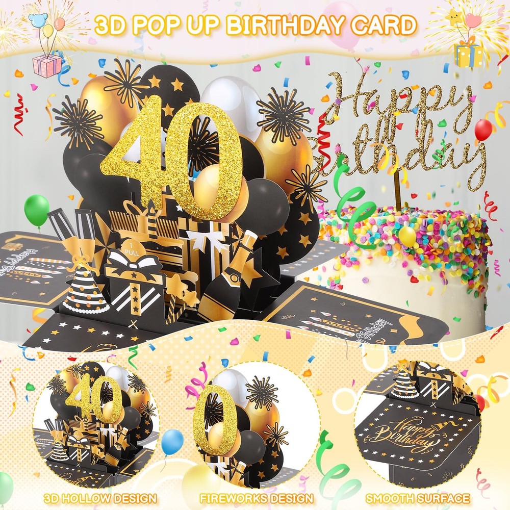 40Th Birthday Card, 40Th Birthday Pop-Up Greeting Card for Women Pop up Greet UNIQUE DESIGN - 40th birthday card is beautifully designed, simple and stylish. When you open the birthday card, the exquisite 40th birthday logo will automatically appear. 40th birthday gifts are matched with balloons of different colors and gorgeous fireworks decorations, bringing huge surprises to the protagonists of the birthday party MATERIAL - 40th birthday card women uses paper, fine workmanship, excellent quality, very good quality, the pop-up birthday card surface is smooth and comfortable, quite thick, no smell, durable, your family or friends can keep this for a long time card SPECIAL GIFT - pop-up greeting cards with special meaning, symbolizing love, companionship, hope and the good things in life. When the recipient opens the card, they will be surprised as the stunning sculpture jumps out of the paper, creating a special heartwarming moment. This card is unforgettable HANDWRITTEN WISHES - When you open the envelope, you'll find a 40th birthday card and a card to write your wishes on. When preparing birthday gifts for family or friends, including a sweet 40th birthday gift with handwritten wishes will be a very touching moment SET INCLUDES - The pop-up greeting card set includes an envelope, 40th pop-up card, and a blank message label to meet your writing, packaging, and gift-giving needs. With this birthday card, you can share your love, care and gratitude with the recipient Product Features: 40th Birthday Pop Up Anniversary Card, This pop up anniversary card is for celebrating birthdays, Valentine's Day, husband, wife, kids, boyfriends and girlfriends of everyone you truly love. Specification Color: As the picture shows Packing size: 20.00*19.50*1.10cm Weight: 55g Material: paper Applicable people: 40th birthday Package includes: 1 X 40th Birthday Card Warm note: 1. Manual measurement, please allow slight error in size. 2. Colors may have slight differences due to different screens. Shipping We offer FREE shipping on all orders! We ship within Three business days of payment, usually sooner. We use a selection of shipping services such as UPS, FedEx, USPS etc. We only ship to the lower 48 states, no APO/FPO addresses or PO Boxes allowed. Local pickups and combined shipping options are not provided at this time. Return You can return a product for up to 30 days from the date you purchased it. Any product you return must be in the same condition you received it and in the original packaging. Please keep the receipt. Payment We accept payment by any of the following methods: PayPal Please pay as soon as possible after winning an auction, as that will allow us to post your item to you sooner! Feedback Customer satisfaction is very important to us. If you have any problem with your order, please contact us and we will do our best to make you satisfied. Contact Us If you have any queries, please contact us via ebay. We usually respond within 24 hours on weekdays. Please visit our eBay store to check out other items for sale! Thank you for shopping at our store.