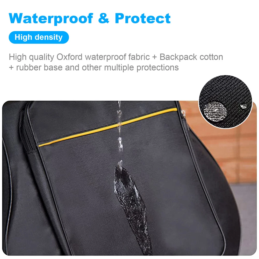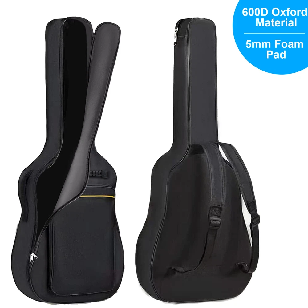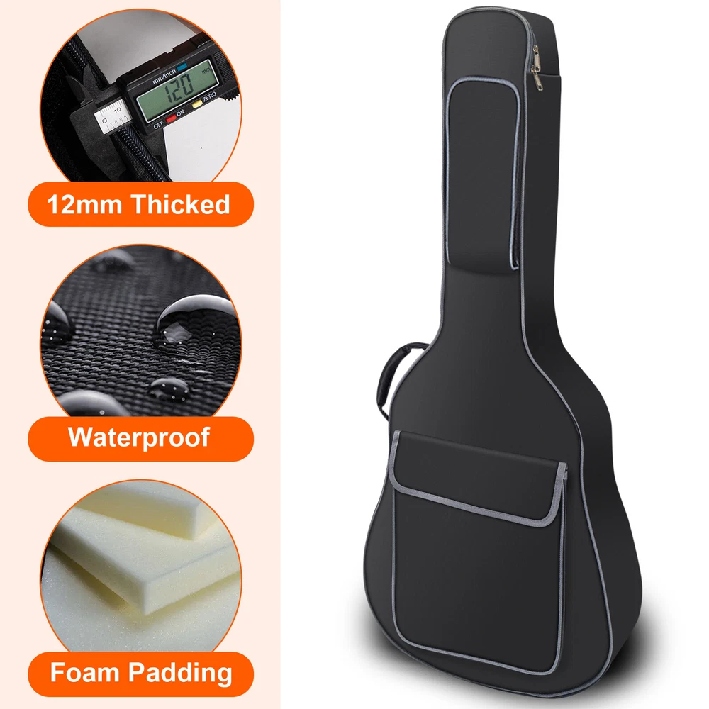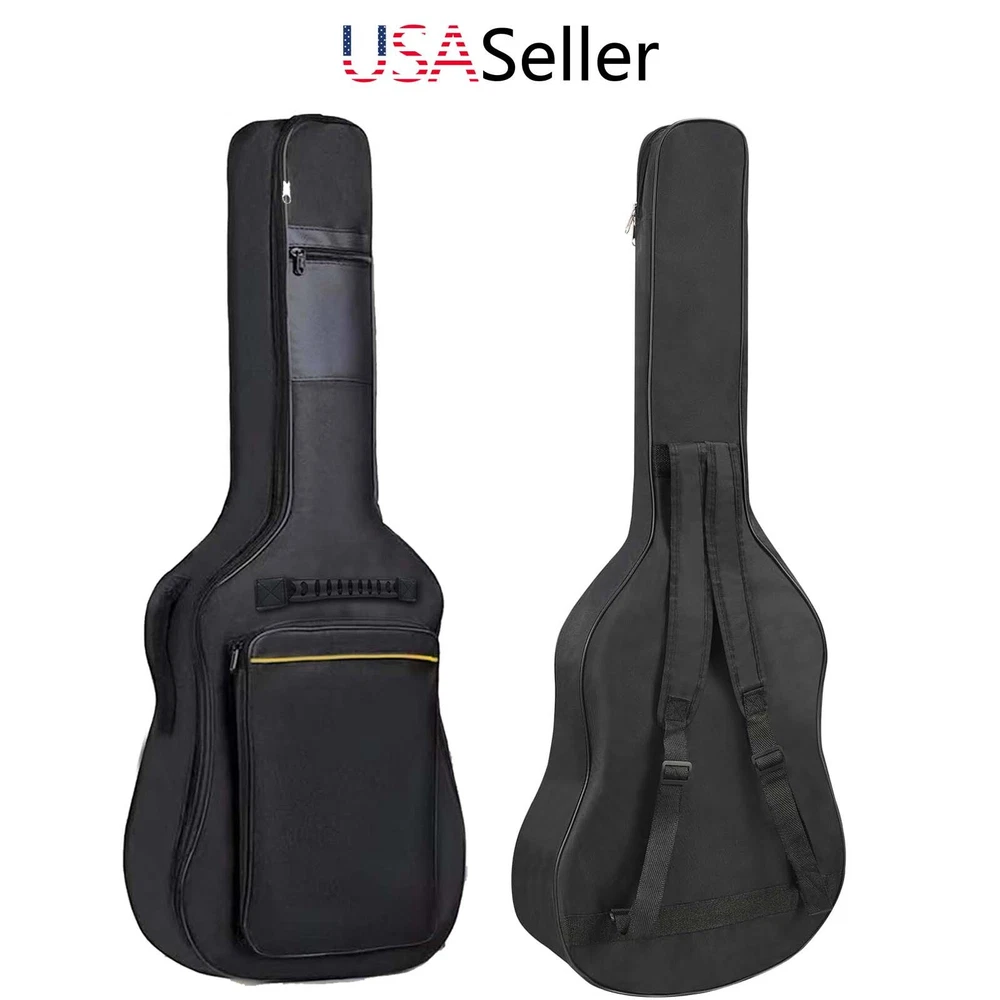 41" Guitar Bag Acoustic 5mm Thickened Foam Guitar Gig Case Waterproof Description Thick ened Upgrade Sponge : Padded guitar bag made of waterproof and durable Oxford cloth with upgrade 5mm thickened sponge to protect your guitar in all directions. Outer Pocket : Guitar case with different pockets organizer to store your guitar accessories. Different Ways for Carrying : Guitar Gig Bag with dual shoulder strap, providing multiple ways of carrying. Hard Rubber Bottom : Duty rubberized base to protect your guitar from unexpected bumps in transport Premium Zipper : This guitar gig bag features a two-way metal zipper for easy opening and closing of the guitar case. Shockproof bottom provides greater protection. Features 1. Made of high quality material. 2. Zippered accessory pocket. 3. Dual adjustable shoulder strap. 4. Protection against scratch and shock for your guitar. 5. Triple gusseted storage pockets. 6. Traditional and back-pack style transport. Specifications: 41 inch guitar bag product size: 42x 15.7x 5.5 inch Compatible guitar models tested by our customers: Martin D-35, Martin X, Cordoba C5 Classical, ES 335 Semi-hollowbody, Fender CC-60S, Fender Sororan SCE, Franciscan CS-9 dreadnought, Full-size Epiphone PRO-1 Classic, Dreadnought type 000, Ibanez Gio, Ibanez j50, Jasmine S-35, EKO 12 strings, Eko Ranger 6, Yamaha Dreadnought, Yamaha FG800, Yamaha XG 800C, Jasmine S34C, Full Size Jazz Guitar. Package Included: 1*5mm/12mm Thickened form Guitar Bag Notes 1.Please allow 0-0.5inch errors due to manual measurement. 2.Due to different monitors, the color might be a little different. 3.Please check the car model and size before purchase. Return&Warranty We offer 30 days refund satisfaction guarantee and 360 days product warranty. You can get your refund in full within 30 days from delivery date, if your are not satisfied with it. Besides, all products have 360 Days warranty. If you have any questions about our product, please contact our friendly, helpful, and knowledgeable customer service representatives, we will be glad to address any questions or concerns promptly Payment Shipping Delivery details Return About us Payment 1.We accept PayPal only. 2.All payments must be received within 10 days after auction won. 3.Non-pay bidder will get a negative feedback and an unpaid alert from eBay. 4.E-checks via PayPal will be hold until it is cleared. Shipping Free Shipping within the 48 States. We ship within the United States only. The delivery destination EXCLUDES the states of Alaska, Hawaii and all off-shore U.S. territories and possessions such as Puerto Rico, Guam and Virgin Islands . We DO NOT ship to APO and FPO . Delivery details Standard Order Processing time: All products will be shipped within 24 hours (Monday - Friday). If the payment cleared/received on Friday, we will ship the products on the next business day(Monday or Tuesday). Delivery information is provided by delivery companies ( NO update on weekends or holidays). Please NOTE : Due to peak periods and weather conditions, the delivery time may delay 1-2 working days. Delivery Time: 3-8 working days (Varies by Destination) Delivery companies are responsible for the delivery time. If you have any questions or problems with delivery, please contact delivery companies directly. All Rights Reserved. Designated trademarks and brands are the property of their respective owners. Return 30 Days Money Back Satisfaction Guarantee&360 days Product Warrant y Returns are permitted and must be initiated by the buyer within 30 days from the delivery date. You need to contact us us to request a RMA number(Return Merchandise Authorization Number) to return the item. Return packages without a valid RMA number will NOT be accepted. All products have 360 Days warranty. If you find any defect, please contact us to repair or replace the item. About us We appreciate your support and purchase very much. We will do our best to provide excellent products and services. If you have any problems or questions, please contact us by eBay messaging system. Messages will be replied during working hours: 9 a.m.-6 p.m .(Pacific Time), Monday to Friday only (except Holidays). Messages after work will be replied on the next business day.