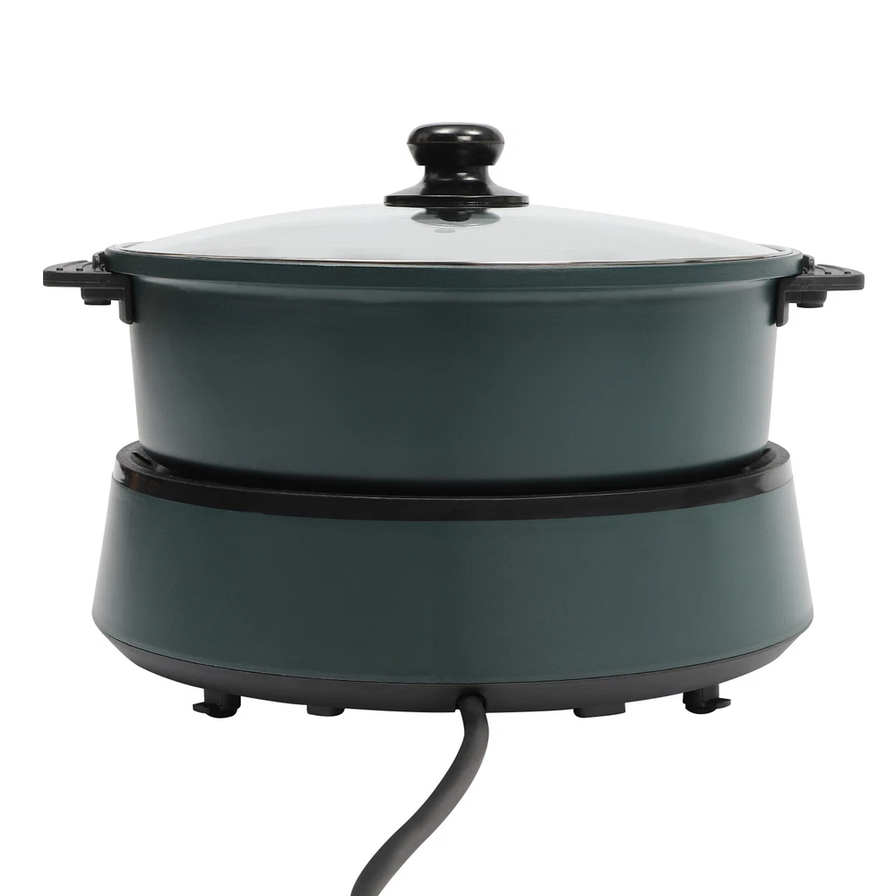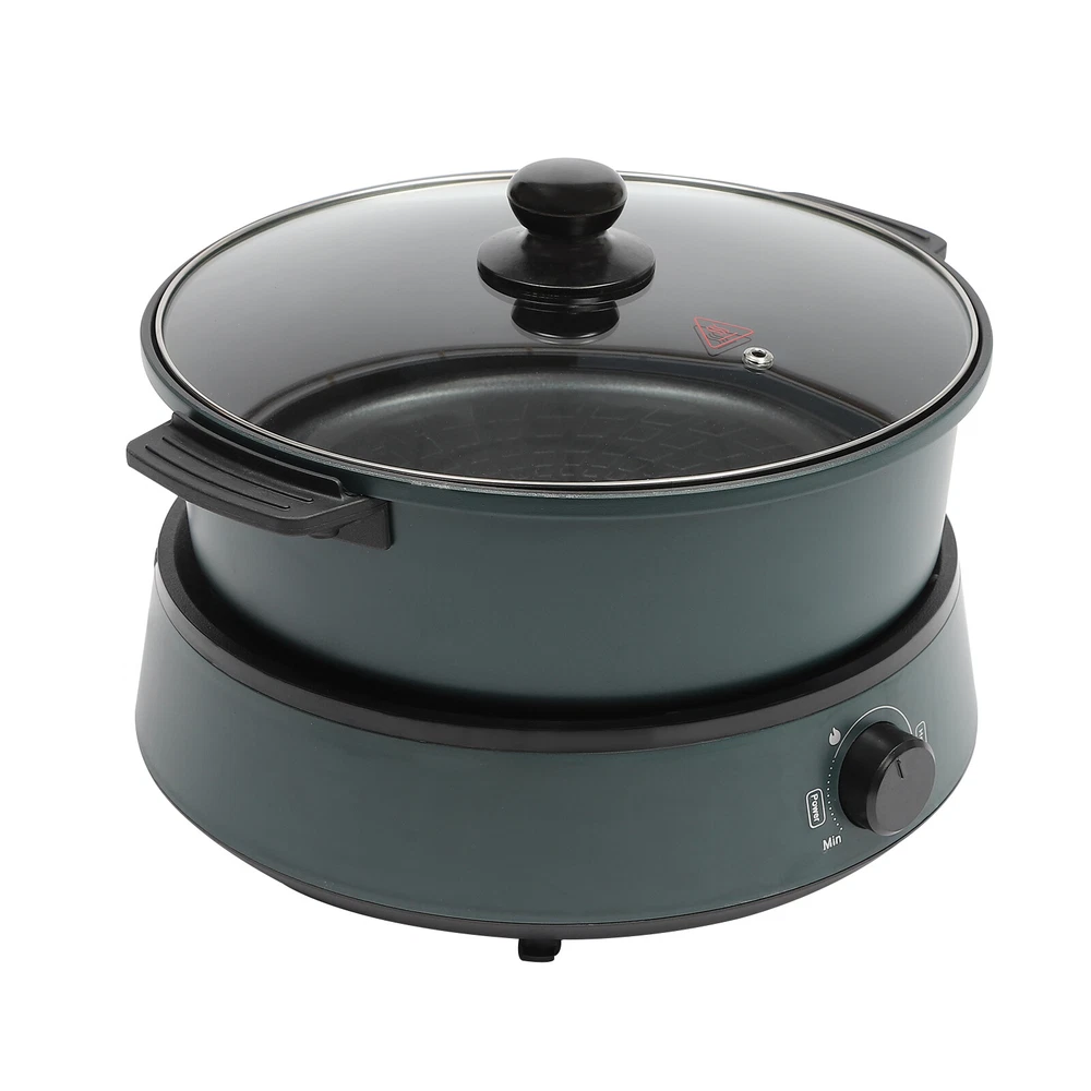 Enjoying a Steaming Hot Pot at Home with Friends and Family on a Cold Winter Day Is a Great Pleasure and Happiness. This High-powered and Easy-to-clean Non-stick Electric Hot Pot Is an Excellent Choice for Family/Friends Gatherings, Adding More Fun to Your Leisure Time. It Has Functions of Frying, Boiling, Steaming, Stewing, Baking, Hot Pot, and More, Which Is Also Your Right Hand to Complete Various Cuisines. Large Capacity 4.2QT Multi-Cooke Split Electric Hot Pot Non Stick Fry Soup Stew Description Enjoying a Steaming Hot Pot at Home with Friends and Family on a Cold Winter Day Is a Great Pleasure and Happiness. This High-powered and Easy-to-clean Non-stick Electric Hot Pot Is an Excellent Choice for Family/Friends Gatherings, Adding More Fun to Your Leisure Time. It Has Functions of Frying, Boiling, Steaming, Stewing, Baking, Hot Pot, and More, Which Is Also Your Right Hand to Complete Various Cuisines. Key Features Non-stick Coating : the Non-stick Coating on the Surface of the Cooking Pot and Grill Pan Reduces Food Stickiness , Thus Allowing the Food to Maintain Better Flavor While Reducing Grease and Smoke, Which Is Environmental-friendly and Healthy. and the Smooth Non-stick Coating Is Easy to Clean, Bringing You an Easy-to-use Experience. Spilt Design: with a Split Design, This Product Be Used As a Barbecue Pot, Saucepan, Stockpot, Milk Pot, Steamer, Etc., Which Is Convenient to Meet Different Needs and Easy to Clean/Store. It Is Also the Ideal Choice for Business and Travel. Infinite Temperature Control : Simulating the Regulation of Traditional Gas Stoves, This Product Allows You to Infinite ly Adjust the Temperature from 356-5 36℉ Through the Control Knob to Help You Easily Grasp the Right Temperature and Improve the Taste of Food. Efficient and Even Heating : the Large 1350w Power, Upgraded Iron Heating Tube , and Ring-shaped Aluminum Heating Plate Can Realize Efficient and Uniform Heating, Making Delicious Food for You in a Short Time and Enhancing the Overall Taste and Flavor of the Food. Large Capacity : the 10.79 " Widened Cooking Pot and 10.63*1.18 Inches Grill Pan Give You 4.2qt Capacity to Cook More Food for 1 to 5 People , so Everybody Has an Opportunity to Try out Various Ingredients, As Well As Enjoy Their Favorites . Excellent Heat Dissipation : This Product Adopts Self-circulating Air Ducts on the Bottom to Enhance Internal Heat Dissipation, Thus Reducing the Internal Temperature to Extend the Service Life. Details Anti-scalding Handles : the Anti-scalding Handles on the Cooking Pot, Grill Pan, and Lid Make It Easier for You to Hold and Move, and Also Protect Your Hands. Clear Lid: the Clear Explosion-proof Tempered Glass Lid Is Convenient for You to Check the Food Situation and Make Adjustments in Time to Reduce Food Burning. Its Steam Hole Can Timely Eliminate Excess Steam and Heat, Prevent Spilling, and Maintain Balanced Air Pressure Inside the Pot to Effectively Guarantee Safety During Use Non-slip Feet : the Non-slip Feet at the Bottom Can Avoid Slipping and Scratching the Tabletop. Plug Organizer : the Plug Organizer on the Bottom Effectively Protects the Plug While Convenient Storage. Hidden Dual-display Indicator: the Two Hidden Indicator Lights Allow for an Independent Display of Power and Heating Status, so You Can Get a Clear Indication at a Glance. Round Corners: Compared with Traditional Square Corners, an Arc Design Can Better Take Care of Your Skin. Application It Is Suitable for 1-5 People. It Can Be Widely Used in Families, Parties, Dormitories, Offices, Apartments, Barbecues, Camping, Travel, Business Trips, Snack Bars, Roadside Stalls, Hotels, Shops, Restaurants, Cooking Schools, Etc. to Make Porridge, Pancakes, Grilling Meats, Fried Rice, Vegetables, Simmer, Soup, Cooking, Sauté Steak, Chicken, Noodles, Oatmeals, Eggs, Dumplings, Fishes, Hot Pot, Etc. Specification Model: Tkm-001 Color: Green Material: Abs, Aluminum, Iron, Tempered Glass Surface Treatment: Die-casting, Non-stick Coating Shape: Round Style: Modern Number of Items: 1 Applicable People: 1-5 People Assembly Required: No Mounting Type: Countertop Product Care Instructions: Hand Wash Control Method: Knob Power Source: Corded Electric Plug Standard: Us Standard Voltage: 110v Frequency: 60hz Power: 1350w Capacity: 4l/4.2qt Temperature Range: 180-280℃/356-5 36℉ Power Cord Length: 1m/ 3.28 ft The Total Height of the Cooking Pot and Lid: 12.9cm/5.08inch Cooking Pot Diameter: 27.4cm/10.79inch Grilled Pan Size(D*H): 27*3cm/10.63*1.18inch Product Size: 32.5*22*29cm/12.8*8.66*11.42 Inch Package Size: 34*22*36cm/13.39*8.66*14.17 Inch Net Weight: 3.3kg/7.28 Lbs Gross Weight: 3.7kg/8.16 Lbs Package Included 1* Base with Power Cord 1* Cooking Pot 1* Grill Pan 1* Clear Lid 1* English Manual Other Accessories for Assembly Notes Please Note That the Package Does Not Include Food. Please Note That the Insulation Time Will Vary According to the Climate of Different Regions and the Temperature of Foods. The Heating Plate Is Still Very Hot After Use, Do Not Touch It Before Cooling. and Keep It Away from Children to Prevent Combustion Accidents. Please Do Not Heat the Pan for a Long Time Without Water, Otherwise, It Will Be Damaged. Please Do Not Touch or Move the Product While Working. When the Product Is Working, Sometimes It Is Normal for the Indicator Light to Turn off Because the Dynamic Adjustment of the Temperature Controller Is Triggered. at This Point, the Product Is Exerting Its Insulation Function. Please Wait for 1-3 Minutes, or Rotate the Knob to a Higher Power to Allow the Product to Start Heating Again and the Light Will Light up. In the Initial Few Uses, It Is Normal to Generate Smoke or a Burning Odor on the Heating Plate at High Temperatures, Which Is Caused by the Protective Oil Left on the Spare Parts and Screws. After Several Uses, the Odor Will Gradually Disappear. Please Clean This Product Before First Use. Please Unplug the Power Cord First and Ensure That the Cooking Pot a