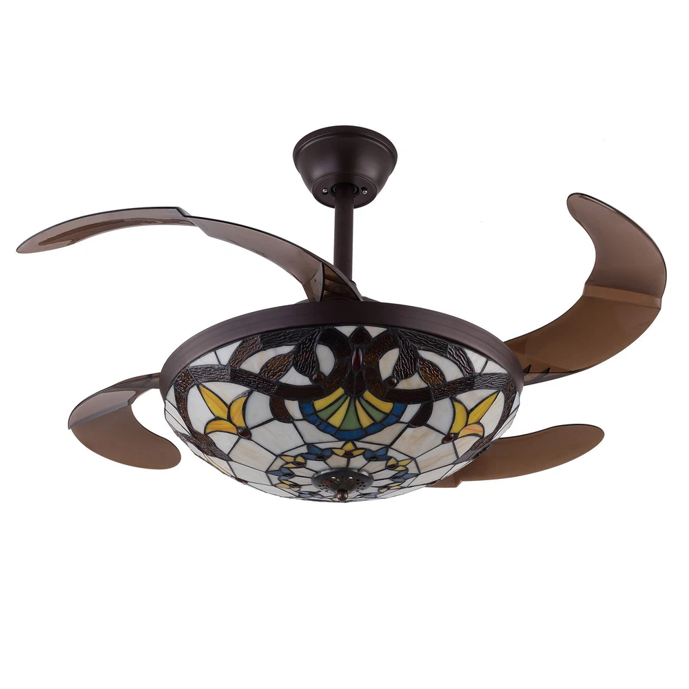 Specification Color temperature: CCT 3 light cycles Light source type: LED(Light Kit Included) Control: Remote Control Included Dimensions: 42 Inch, 4 Retractable Blades Light Wattage: 36W-48W Motor Wattage: 56W Speed: 6 Voltage: DC 110 -240V Average Service Life: 5~10 Years Suitable for rooms of 15-25 square meters. Installation Instructions ♥Please check the dimensions before ordering, just to ensure it is suitable for your room. ♥Ceiling Chandelier Suitable for Flat Roof Concrete Ceiling House, for Gypsum Board and Wood Ceiling, You Need to Buy a Remodeling Bracket; Identify and Connect Electrical Wires; Ceiling height is greater than 110", Lift 110 Pounds. 42"Stained Glass Ceiling Fan Light Tiffany Style Chandelier Fan Lamp w/Remote 🔥 42'' Tiffany Invisible Ceiling Fan w/LED Light Retro Stained Glass LED Chandelier HG-HCX7016-871US Product description ▶ Modern Invisible Fan Chandelier Fan and chandelier combined into one with remote control, automatic telescopic fan blade, LED lamp beads ▶ Modern Fan Light Chandelier 42 inches when the fan is extended, and 19 inches when the fan blade is retracted. Includes two lower bars, one for 4.8inches and the other for 9.8inches, you can choose one to install. ▶ Bedroom Ceiling Fans Material Metal body +Glass lamp cover + ABS retractable blades + pure copper motor(providing powerful air flow, quiet and durable. With vents, it can reduce the internal temperature of the main unit and extend the life of the motor. ▶ Pure Copper Mute Motor Quiet motor, create a comfortable space. Safe and Energy saving, long used life, strong power, Unique design Modern style. ▶ Energy Saving and Durable A combination of classic and innovative technology, new LED light source, life expectancy up to 50,000 hours, replaceable LED driver for convenient and durable use. ▶ Multi-Function Setting All operations can be controlled by the remote control, adjust the lighting switch of the ceiling fan (white light - warm light - yellow light), wind speed (low - medium - high), The fan or illumination can be turned on separately. ▶ Fandeliers with Remote The ceiling fan has 6 variable speeds and natural wind function. Two Fans Modes: Forward and reverse mode. Freely change the direction from downdraft mode during the summer to updraft mode during the winter. This retractable fan will keep you to stay comfortable throughout the year. ▶ Wide Application Mount Ceiling Fan with Light is perfect for cafes, restaurants, bedrooms, living rooms, children's rooms, kitchens, hotels, apartments, offices, corridors, shops, etc. Color temperature: CCT 3 light cycles Light source type: LED(Light Kit Included) Control: Remote Control Included Dimensions: 42 Inch, 4 Retractable Blades Light Wattage: 36W-48W Motor Wattage: 56W Speed: 6 Voltage: DC 110 -240V Average Service Life: 5~10 Years Suitable for rooms of 15-25 square meters. Installation Instructions ♥ Please check the dimensions before ordering, just to ensure it is suitable for your room. ♥ Ceiling Chandelier Suitable for Flat Roof Concrete Ceiling House, for Gypsum Board and Wood Ceiling, You Need to Buy a Remodeling Bracket; Identify and Connect Electrical Wires; Ceiling height is greater than 110", Lift 110 Pounds. What you get Ceiling fan x 1 Screws sets x 1 Down rods x 2 (12CM & 25CM) Remote control x 1 Instruction Manual x 1 Suggestion Note: The Fan is Reversible. 1️⃣For a safe and secure installation, please ensure that the electrical box to which this fixture will be mounted is properly attached to a structural member of the building. 2️⃣All wires are connected. When unpacking, be careful not to pull with wires as a bad connection may result. 3️⃣Do not connect electricity until your fixture is fully assembled. Payment Delivery details Terms of sales About us Contact us Payment We accept ebay payment 。 Fees such as import duties, taxes are not included in the item price or shipping costs. These charges are the buyer's responsibility. Delivery details Shipping: 2-9 working days to: USA Terms of sales We maintain high standards of excellence and strive for hundred percent customer satisfaction. Feedback is very important to us. We hope that you contact us immediately before you give neutral or negative feedback, so that we can address your concerns. It is impossible to address issues if we do not know about them! About us Your satis faction is our ultimate goal. We work hard to earn your trust and future business. Our certified technicians have tested each item before shipping. The unit comes with 1 year limited warranty on all manufacturing defects. a) If you receive a defective item, you may return it or ask for a discount. Please contact us within 14 days after you receive the package. b) What you returned must be intact and in its original packaging as re? u. Customer is responsible for shipping costs of the returned item. c) We will cover the cost of shipping back t with the shipping rate indicated in the registration page. We will send you a new unit or refund the full payment you paid. Thank you. Contact us Business Hour Business Hour: Monday To Friday: 8:30 AM to 5:00 PM (Beijing China time) Due to time zones, our reply to your questions may not be immediately. But within above working time, we will reply your email within 24 hours. If it's non-workdays, please kindly be patient and wait till Monday. Please contact us with ebay message. Please feel free to contact us if you have any questions. Monday To Friday: 8:30 AM to 5:00 PM (Beijing China time) Due to time zones, our reply to your questions may not be immediately. But within above working time, we will reply your email within 24 hours. If it's non-workdays, please kindly be patient and wait till Monday. Please contact us with ebay message. Please feel free to contact us if you have any questions. Type Chandelier Features Dimmable Feature 1 Easy installation, Convenient Use, Easy Operation Feature 2 Creative Design, Durable Ma
