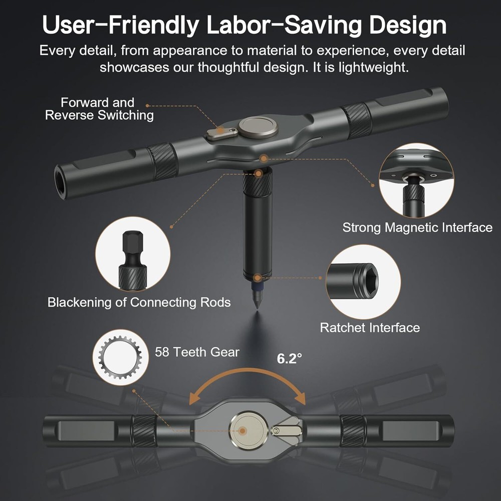 42 in 1 Magnetic Screwdriver Set, DIY Ratchet Screwdriver Set, Multi Bit Magneti Flexible Ratchet Handle Design - The handle features a detachable structure, allowing for various combinations and multifunctional adjustments to fit different situations, like using in narrow spaces. The ergonomic aluminum handle design is lightweight yet rugged, crafted from hot-forged aluminum alloy with high-precision CNC molding for durability and oxidation resistance. Its lightweight construction ensures ease of handling, making it perfect for extended use without fatigue. Effortless Ratcheting Mechanism - Equipped with a 6.2-degree ratchet and 58-tooth forward-reverse ratchet mechanism, offering 80% effort savings. With a 50N.m torque, Bomivoi ratcheting screwdriver set tool makes it simple to tighten or loosen screws without wrist adjustments, saving time and effort in every repair job. 42-in-1 Screwdriver Set - Bomivoi handy screwdriver set includes 40PCS S2 magnetic chromium-molybdenum alloy steel bits, featuring a 6.35mm (1/4") diameter, one handle, and a magnetic slot. the bit driver set comprises 32 short bits (25mm) and 8 long bits (45mm), including various types like PH, SL, Torx, Hex, PZ, and U-shape. Ideal for home, work, DIY projects, professional task, and repairs, providing the right tool for any task. Strong Magnetic & Easy Identification - Features a magnetic handle for secure bit placement and a convenient magnetic slot within the case to recharge the bits’ magnetism as needed. Color-coded bit rings ensure quick and easy identification, improving work efficiency and simplifying organization. This magnetic screwdriver set effectively tackles various tasks, including home appliance repairs, home furniture repairs, and automotive maintenance. Compact Case, Perfect Gift Choice - Housed in a sturdy, compact storage case (6.6 x 3.7 x 1.6 inches, 15.6 oz), this mini screwdriver set is an excellent gift for professionals and DIY enthusiasts alike. Whether for furniture, electronics, Shipping We offer FREE shipping on all orders! We ship within Three business days of payment, usually sooner. We use a selection of shipping services such as UPS, FedEx, USPS etc. We only ship to the lower 48 states, no APO/FPO addresses or PO Boxes allowed. Local pickups and combined shipping options are not provided at this time. Return You can return a product for up to 30 days from the date you purchased it. Any product you return must be in the same condition you received it and in the original packaging. Please keep the receipt. Customer satisfaction is very important to us. If you have any problem with your order, please contact us and we will do our best to make you satisfied. Contact Us If you have any queries, please contact us via ebay. We usually respond within 24 hours on weekdays. Please visit our eBay store to check out other items for sale! Thank you for shopping at our store.